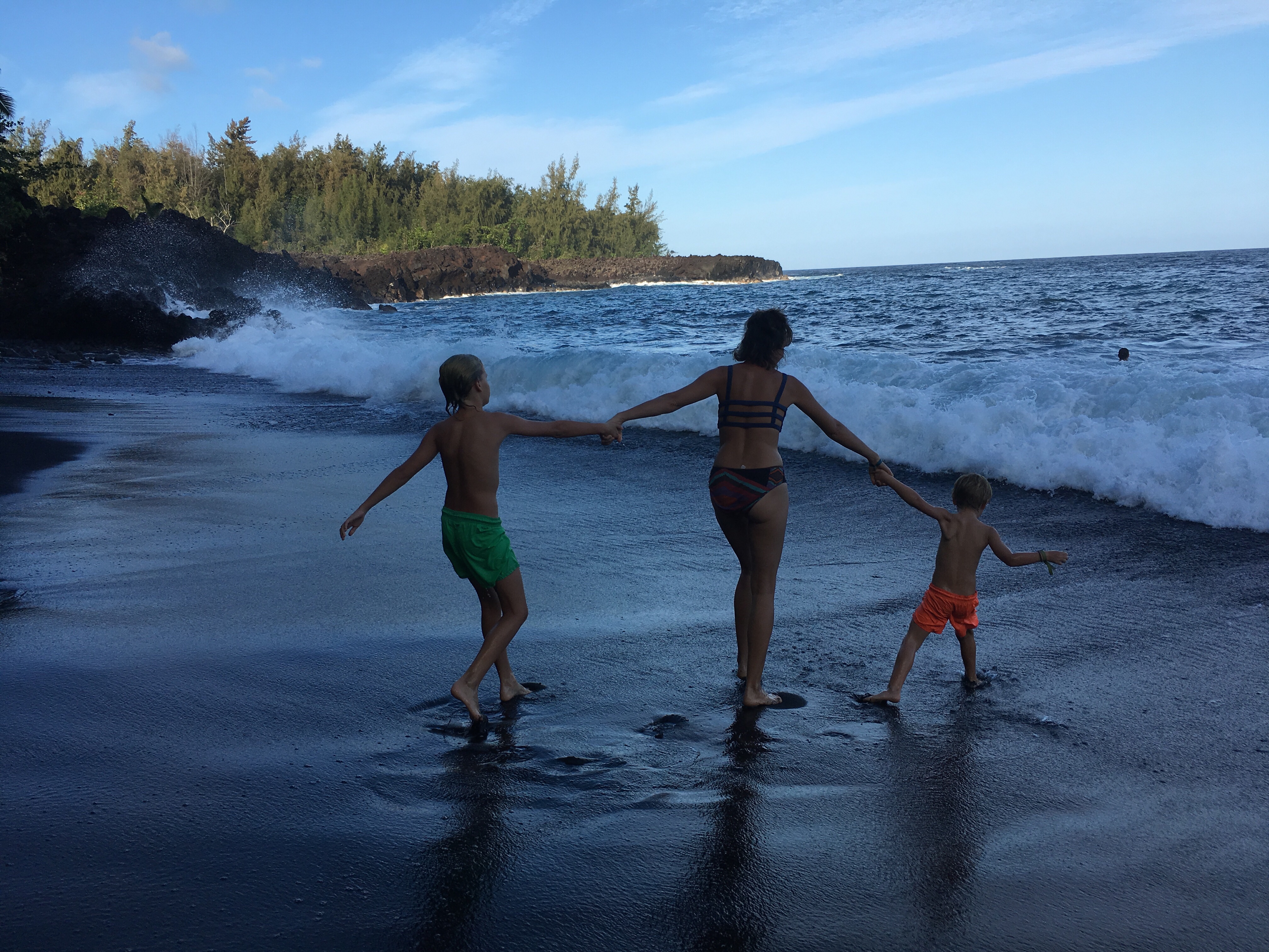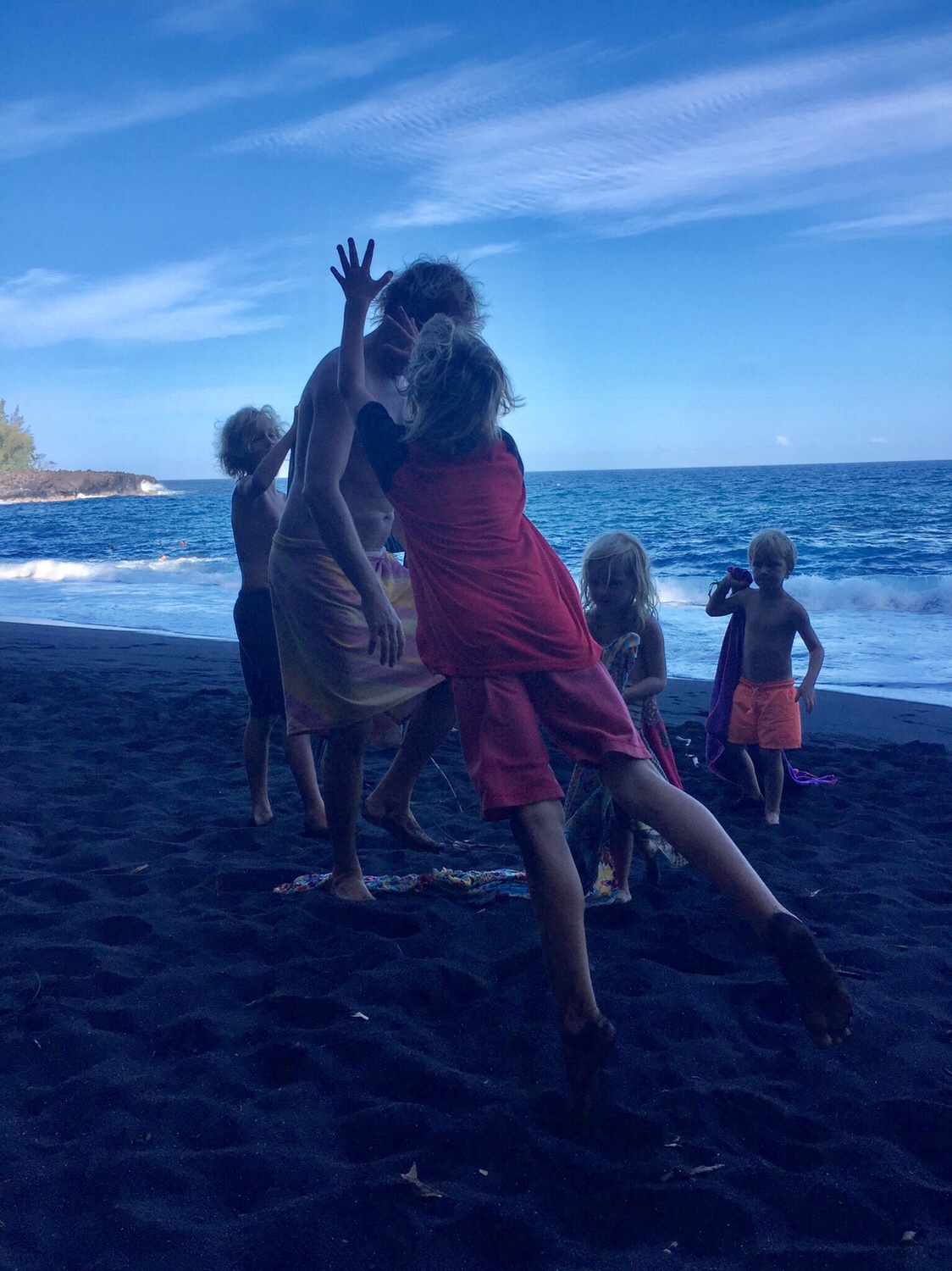 Hapuna Beach war nicht untouristisch, aber die Kinder fanden die sanften Wellen und den tollen weißen Sand großartig und der kritische Lysander gab dem Strand 9 auf seiner Skala von 1 bis 10. Ich setzte nur einmal die Taucherbrille auf und schwamm etwas hinaus, zu dem kleinen Riff um das sich einige Schnorchler gruppiert hatten.