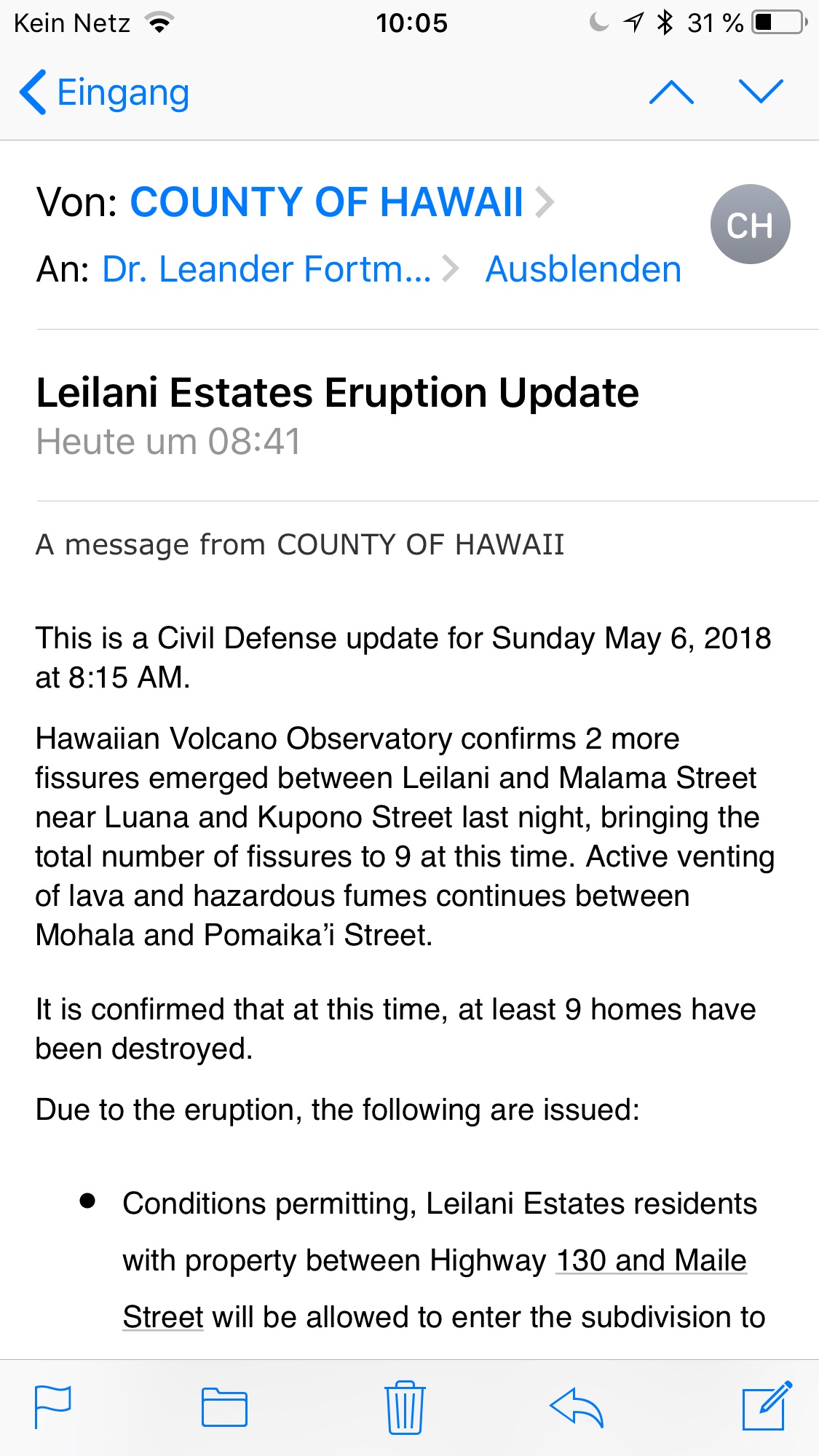 Heute morgen das Civil Defense Update: