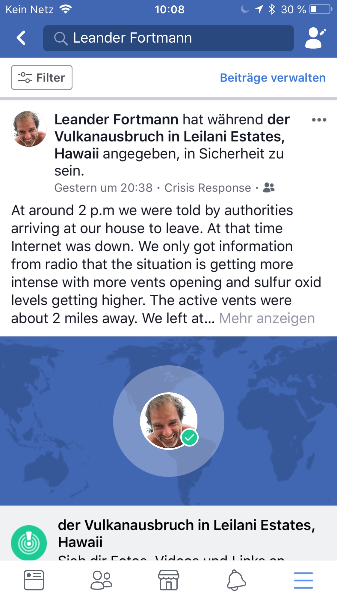 Ich nutze auch das erste Mal den Facebook Crisis Response: