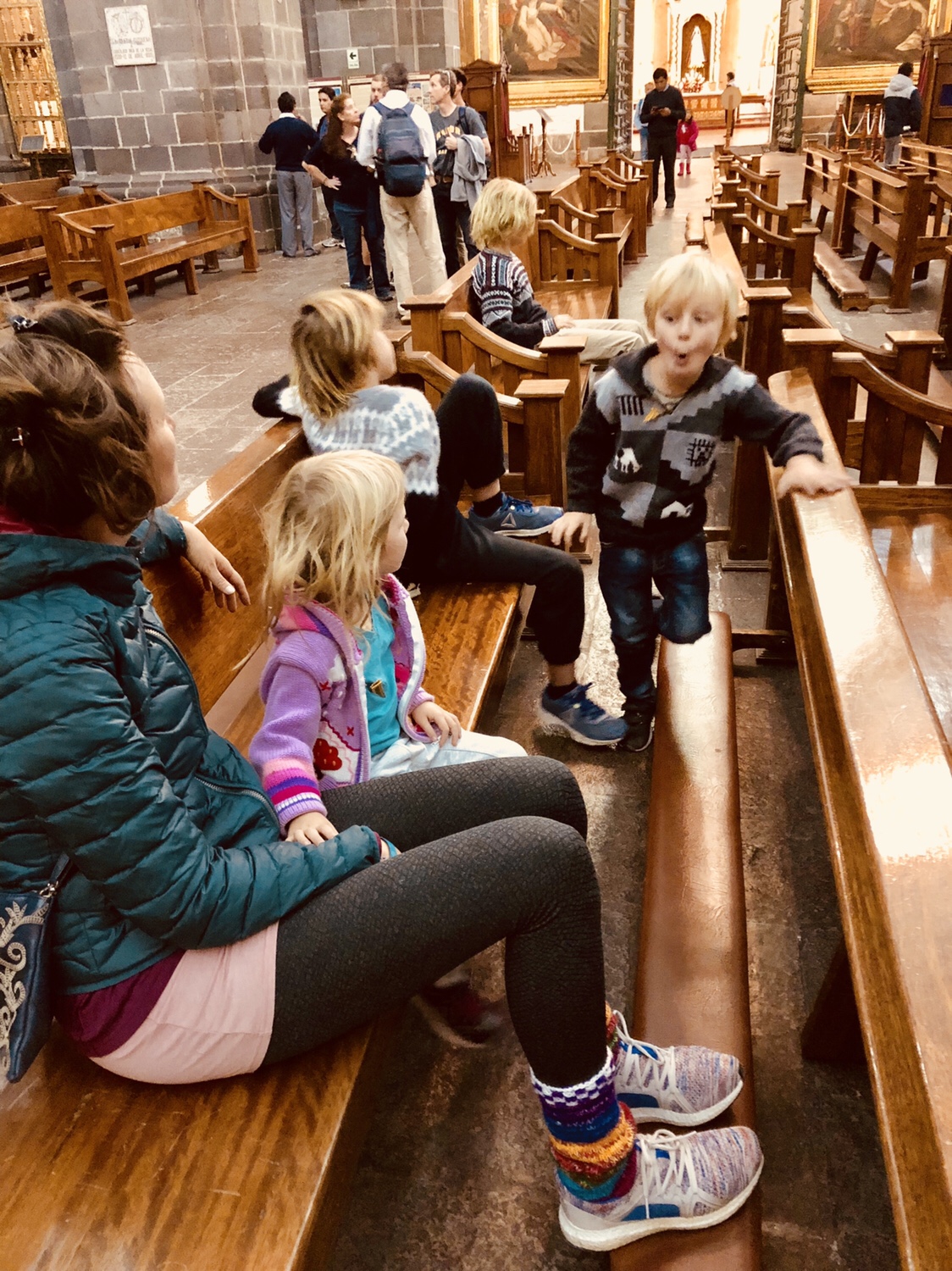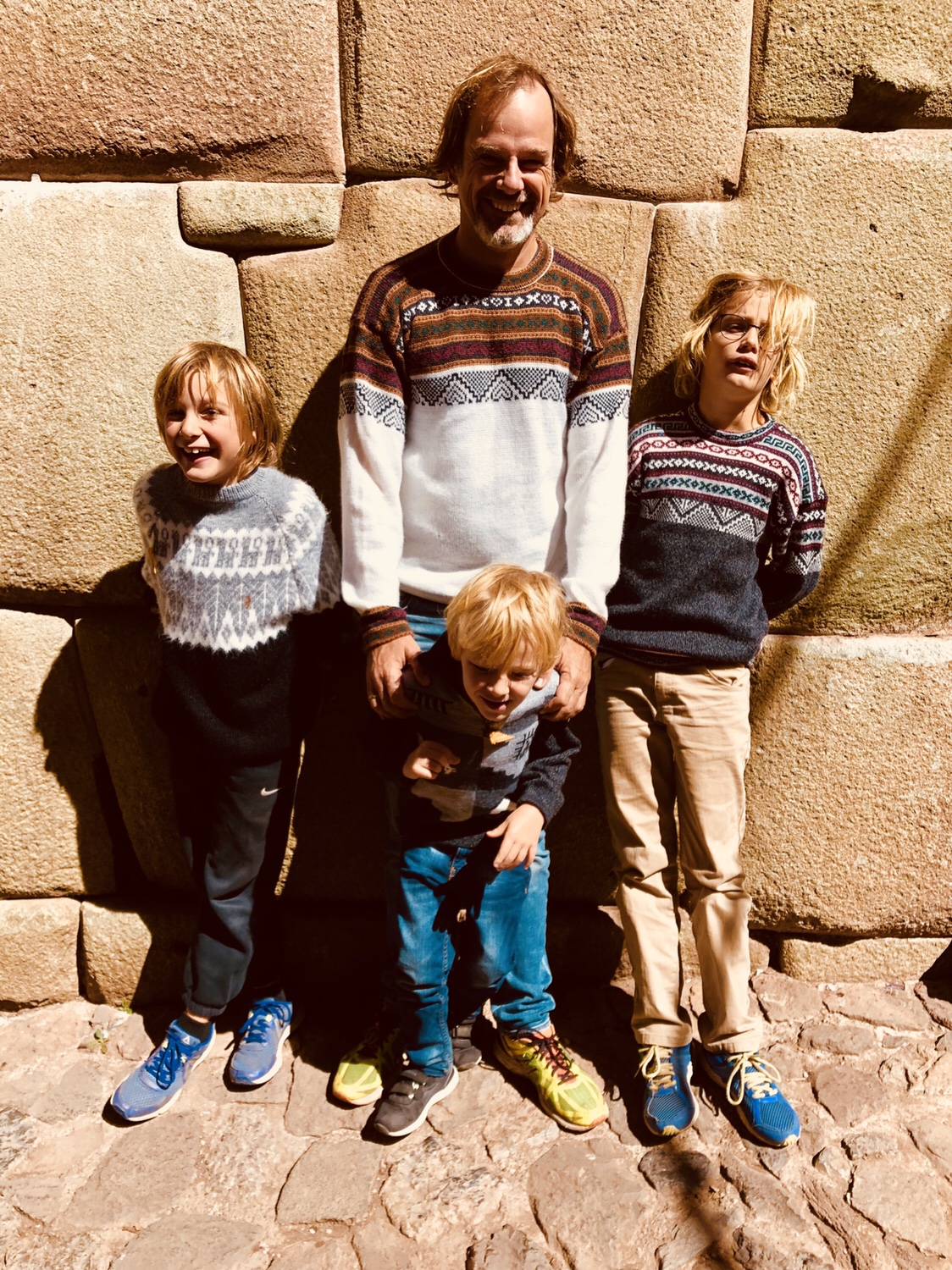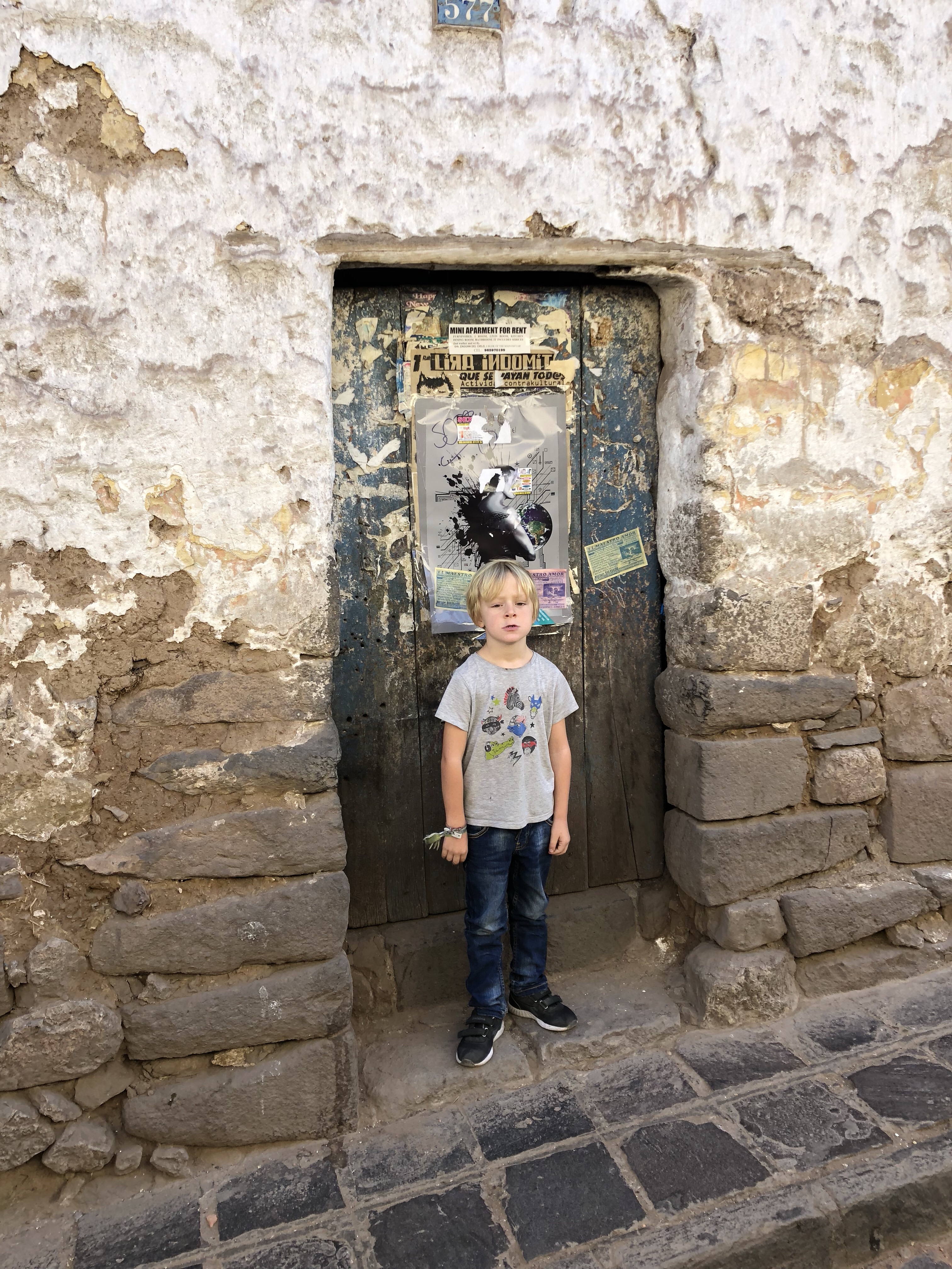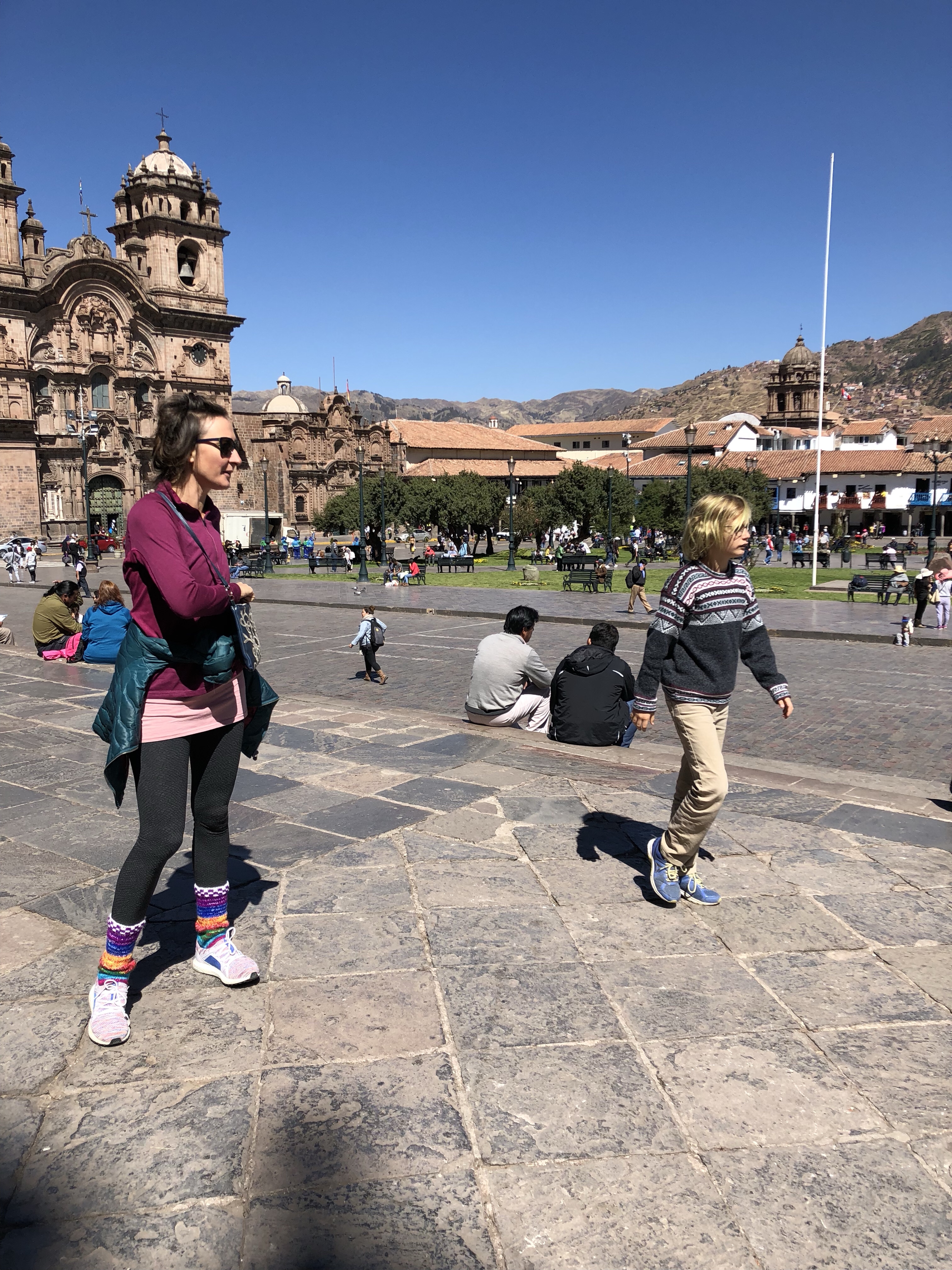 Wir haben wieder eine Wohnung genommen, in Fußnähe zum Zentrum. Am ersten Tag waren wir gleich an der schönen Mauer mit dem 12zackigem Stein, in der eindrucksvollen großen Kathedrale von Cuzco und abends auf einem Spielplatz, wo die Jungs eifrig mit den Peruanern Fußball gespielt haben.