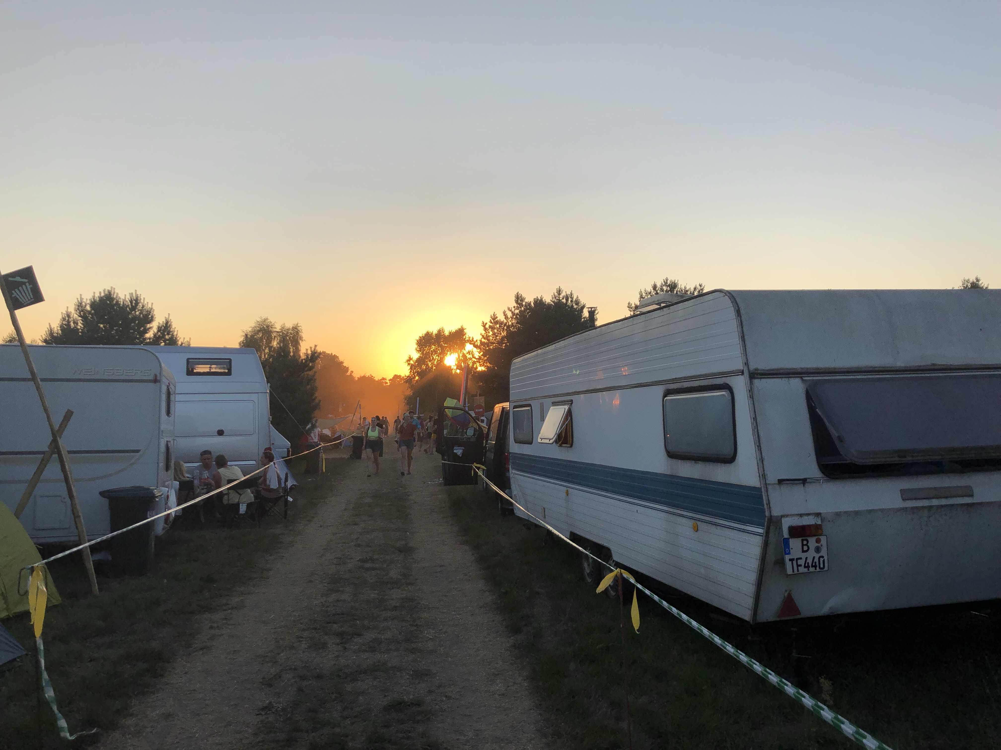 Und so führte mich die Bewegung der Rückkehr zurück nach Deutschland, gleich wieder im Chaos der Wohnung zwei Tage an den Laptop um bis zur Deadline meinen Arbeitsanteil fertig zu stellen und dann direkt loszufahren- den 40 Jahre alten Wohnwagen nach einem Jahr unter Bäumen mit Hilfe eines Freundes wieder anzuhängen und gegen Mitternacht in Polen wieder auf dem kleinen feinen Festival zu landen, dessen Bändchen ich ein Jahr am linken Arm um die Welt getragen habe. Darauf steht: Alles ist gut.