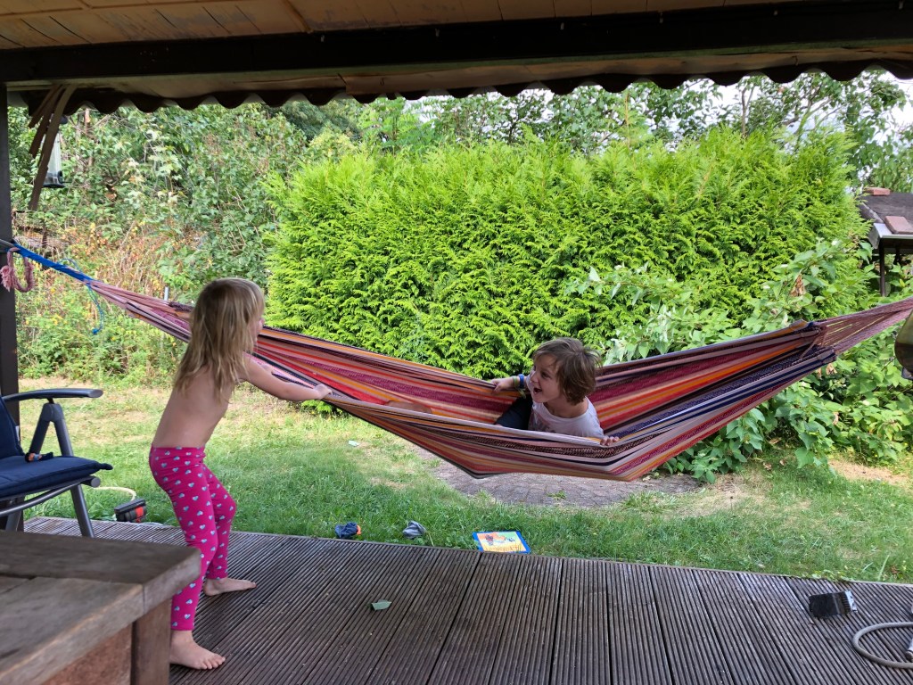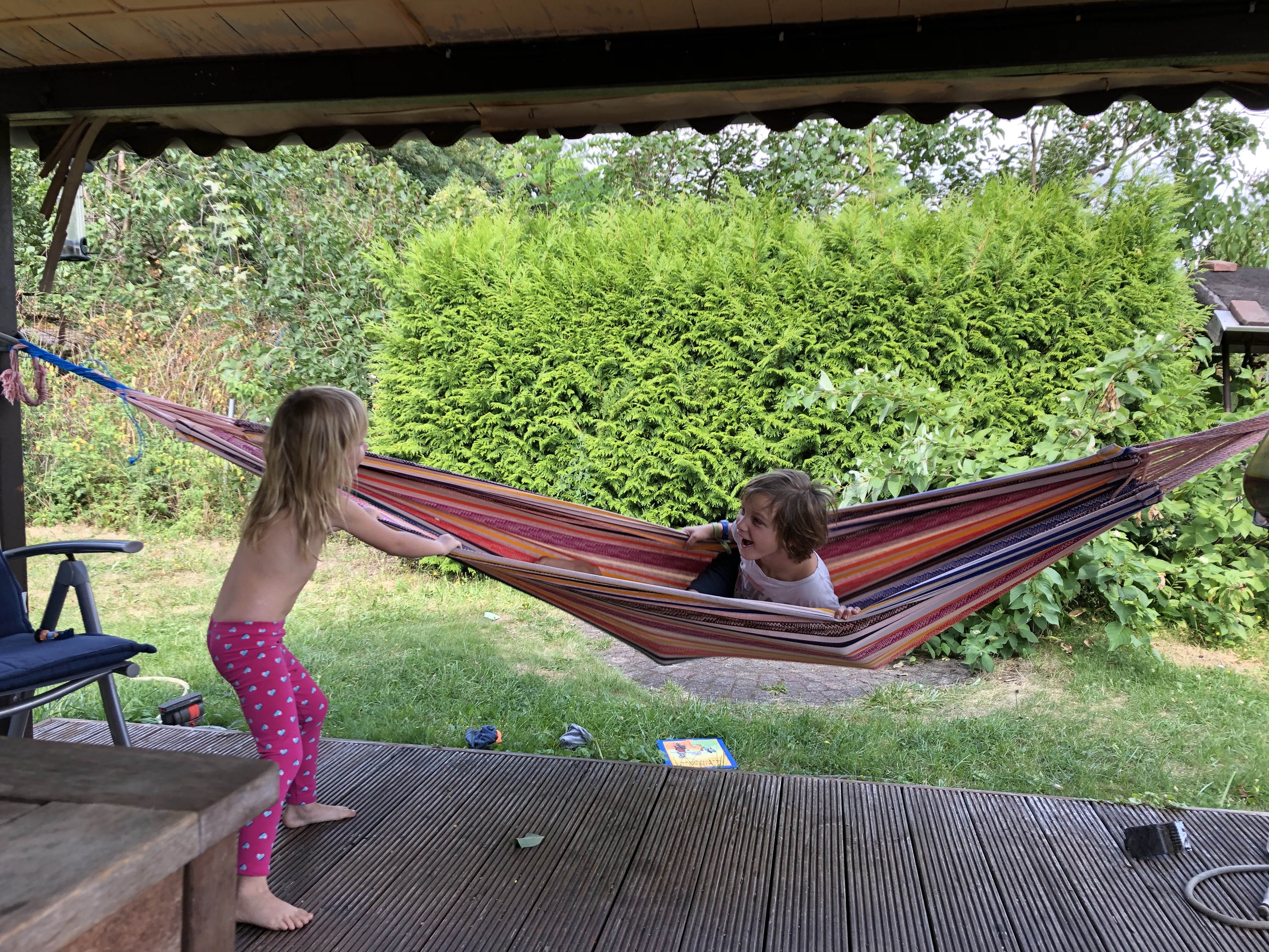 Wir haben uns die freie Zeit geteilt: ich die ersten beiden Nächte, Nadine die zweiten. Und so war ich heute um 14.00 wieder in Berlin, übernahm die Kinder, und Nadine fuhr wieder los. Und ich brach direkt mit den Kindern in den Garten auf. Auch da noch mal viel Bewegung, zu fünft auf dem Trampolin: Kinder brauchen nicht darüber nachdenken, dass Bewegung Lebensfreude ist. Jetzt schlafen alle im Gartenhäuschen und ich gleich auch. (23.52)