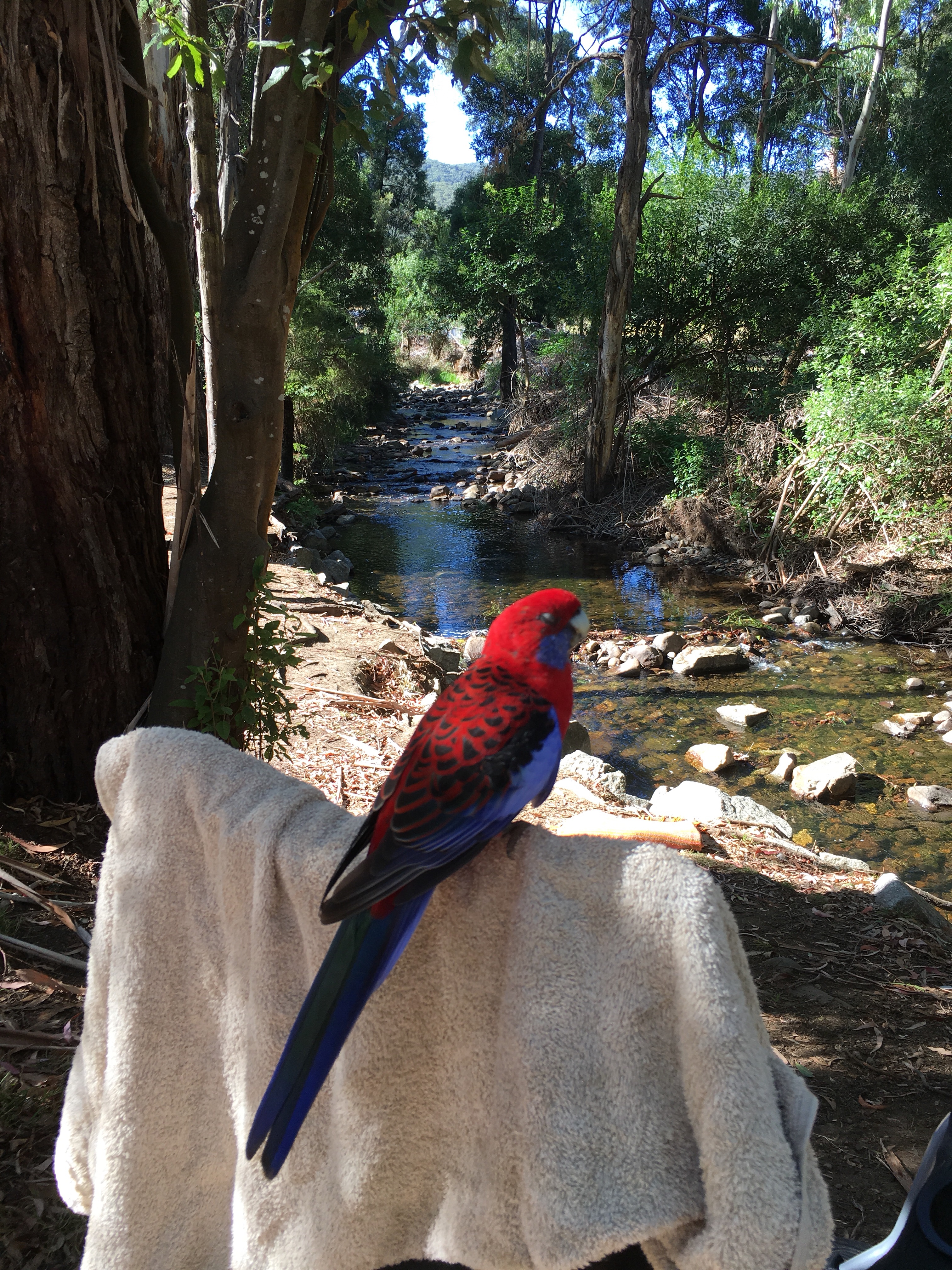 Ein rauschender Bach neben einem, ein sternenklarer Himmel und Morgens Papagein vor der Tür. Und die riesigen Eukalyptusbäume. Herrlich.