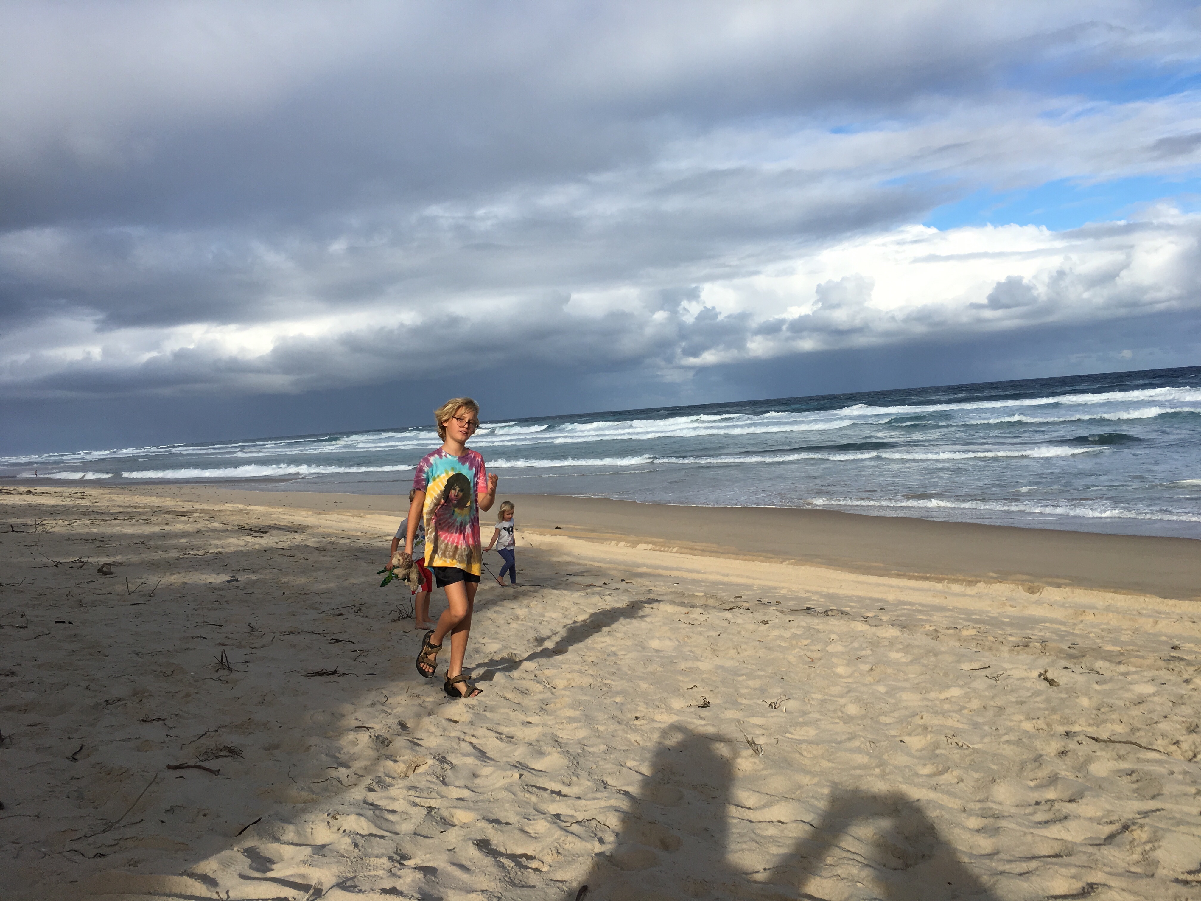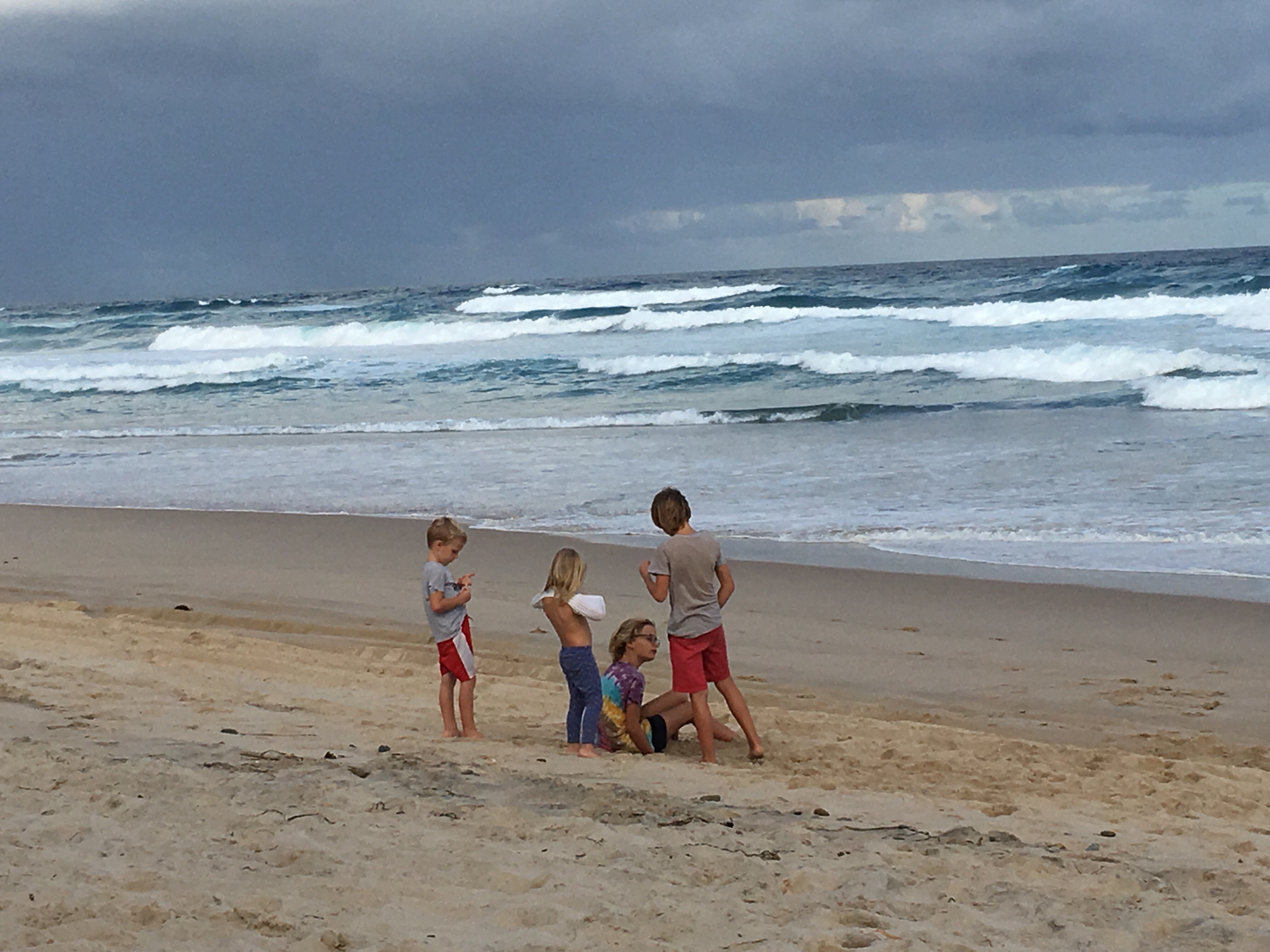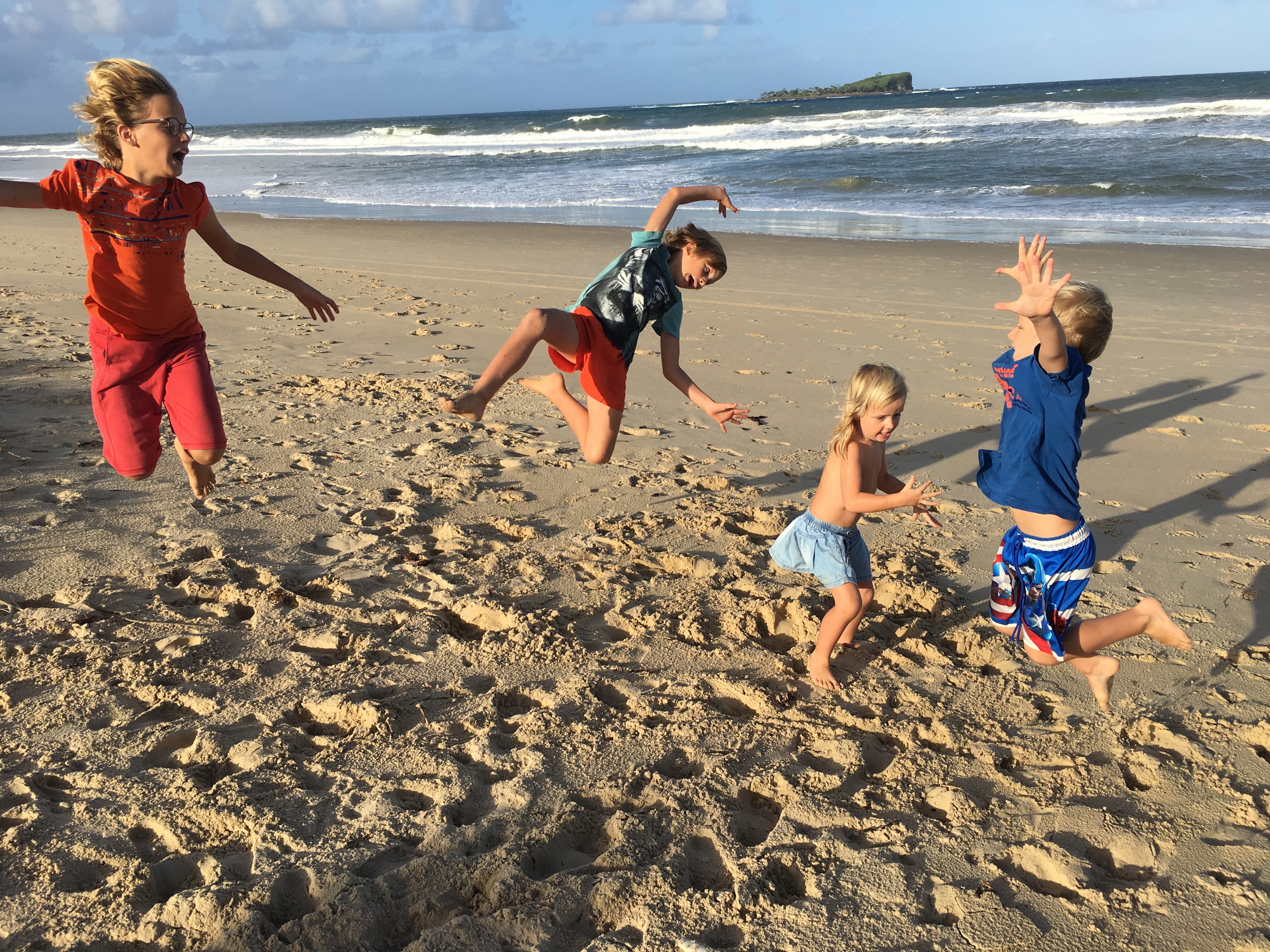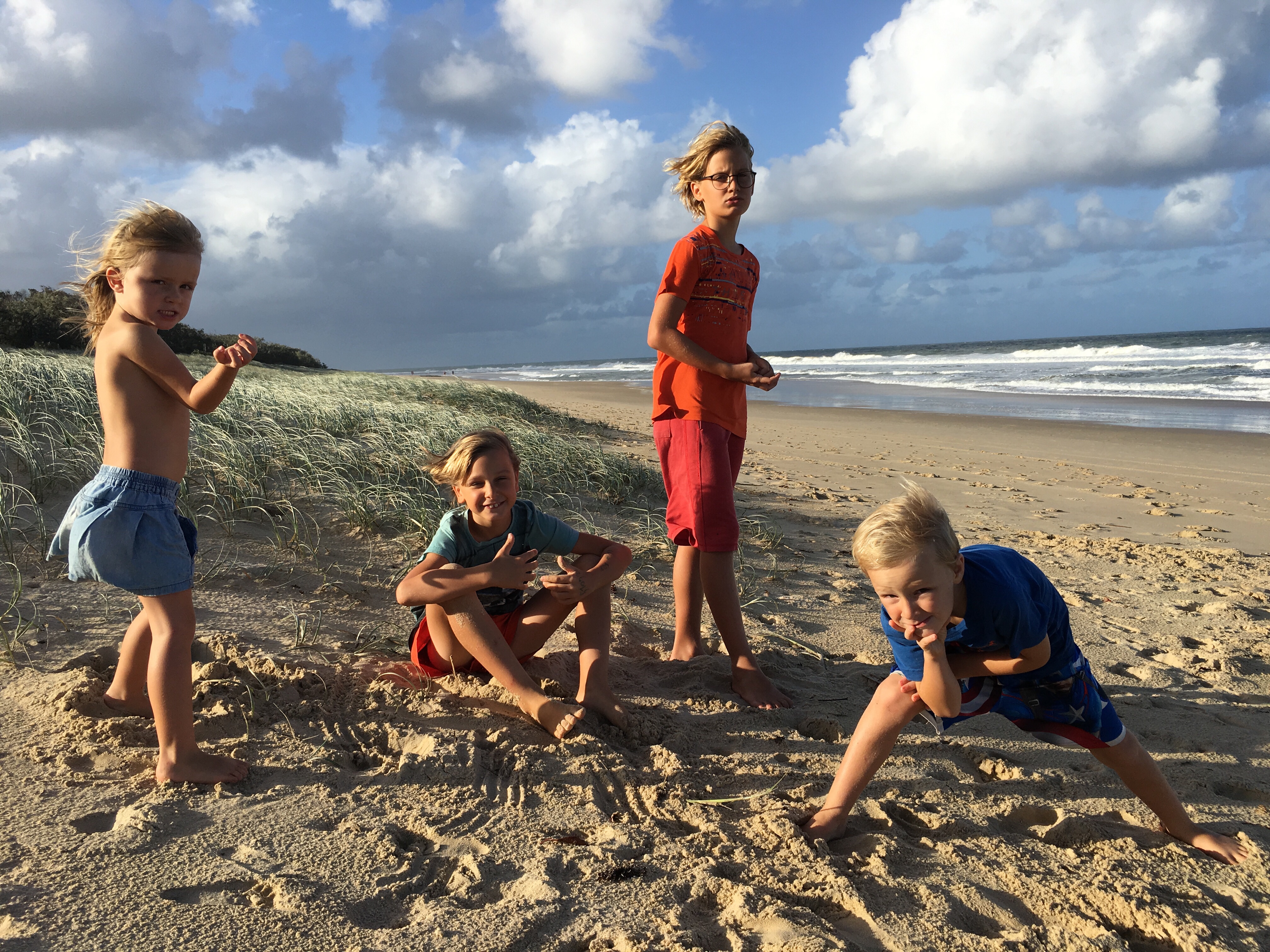 Wir sind jetzt seit langem das erste mal wieder auf einem richtigen Campingplatz. Wenig Leute hier, 40 Dollar die Nacht. Heiß Duschen, Wäsche waschen, im Swimmingpool schwimmen, am Strand morgens Muscheln sammeln und abends den Kindern beim Spielen zuschauen. Ein Tag Pause vom Fahren. Gestern früh Aufbruch von Sydney, einkaufen bei Aldi, Mittag essen an parkgroßen Rastplätzen. Blinkist hören, über Deutschland, das begeistert die Jungs. Weiter durch malerisch grüne Landschaften.