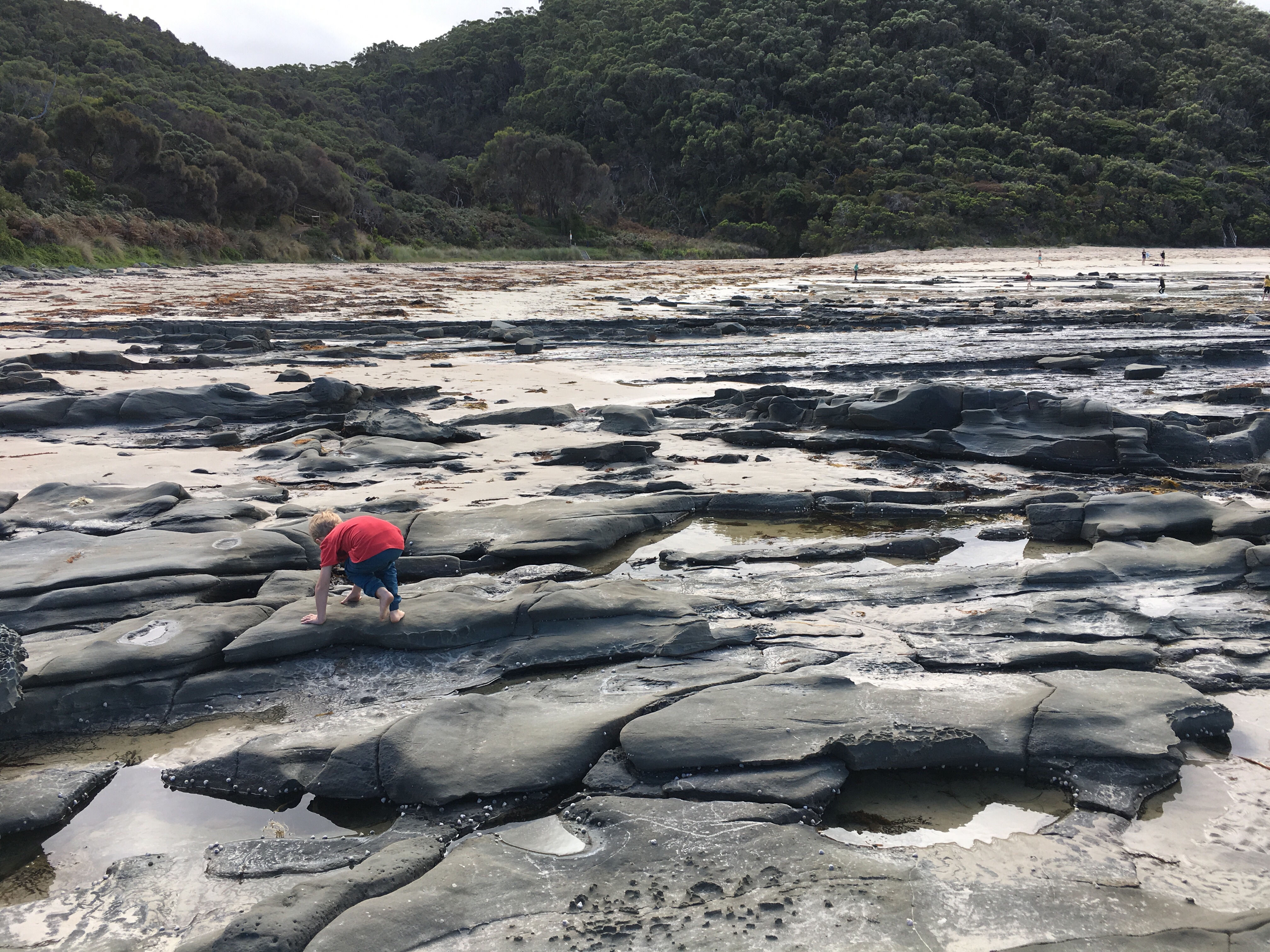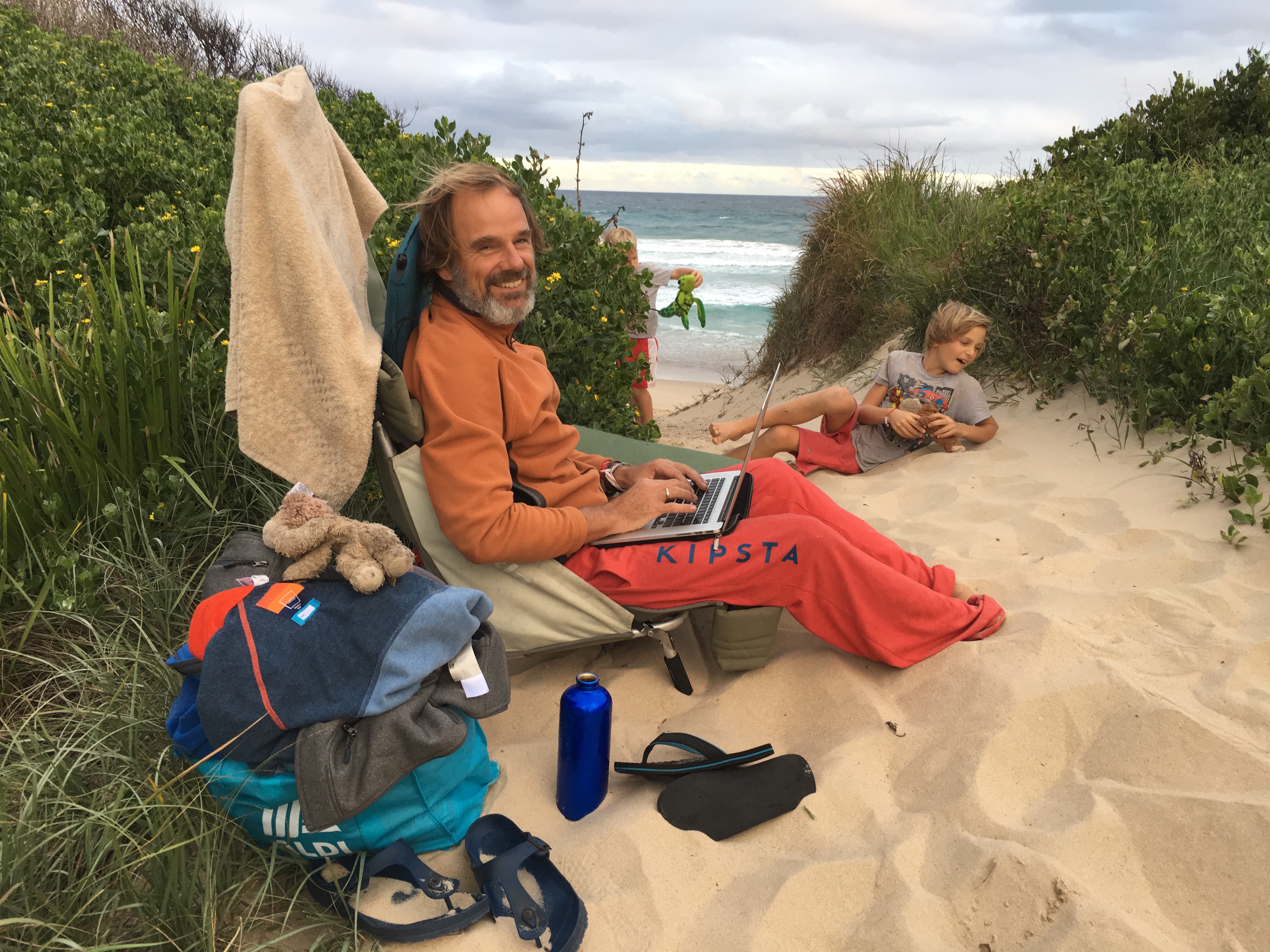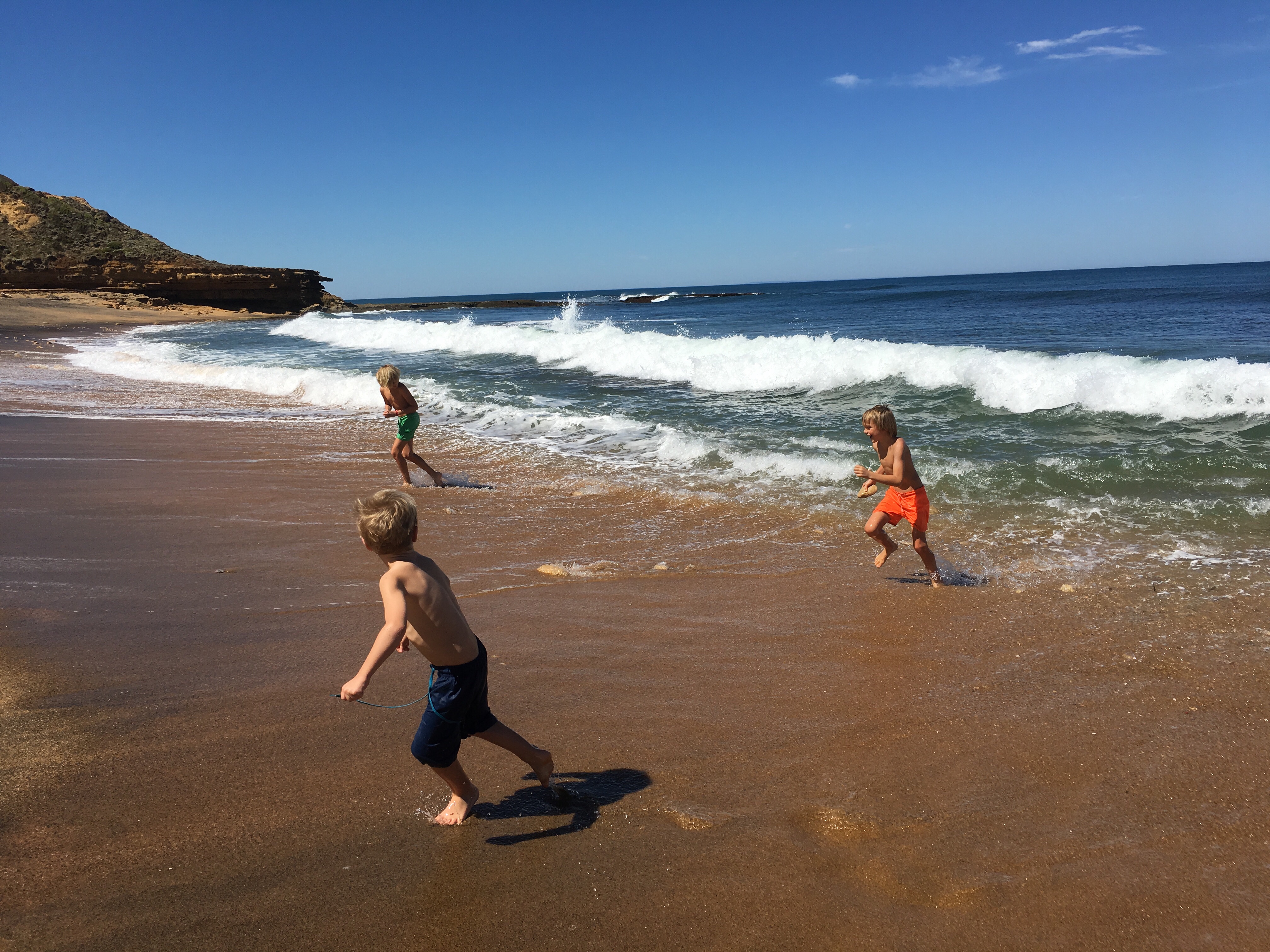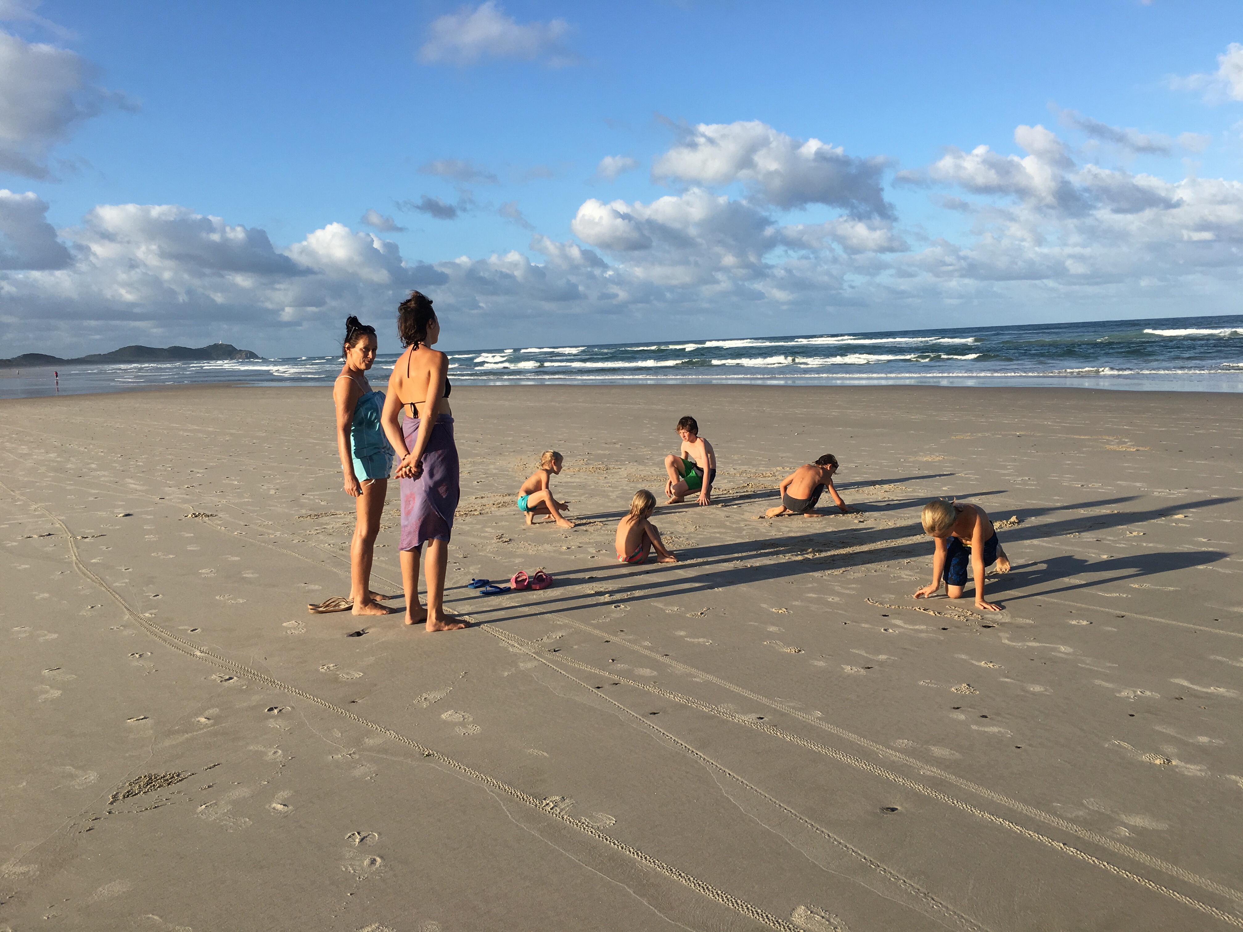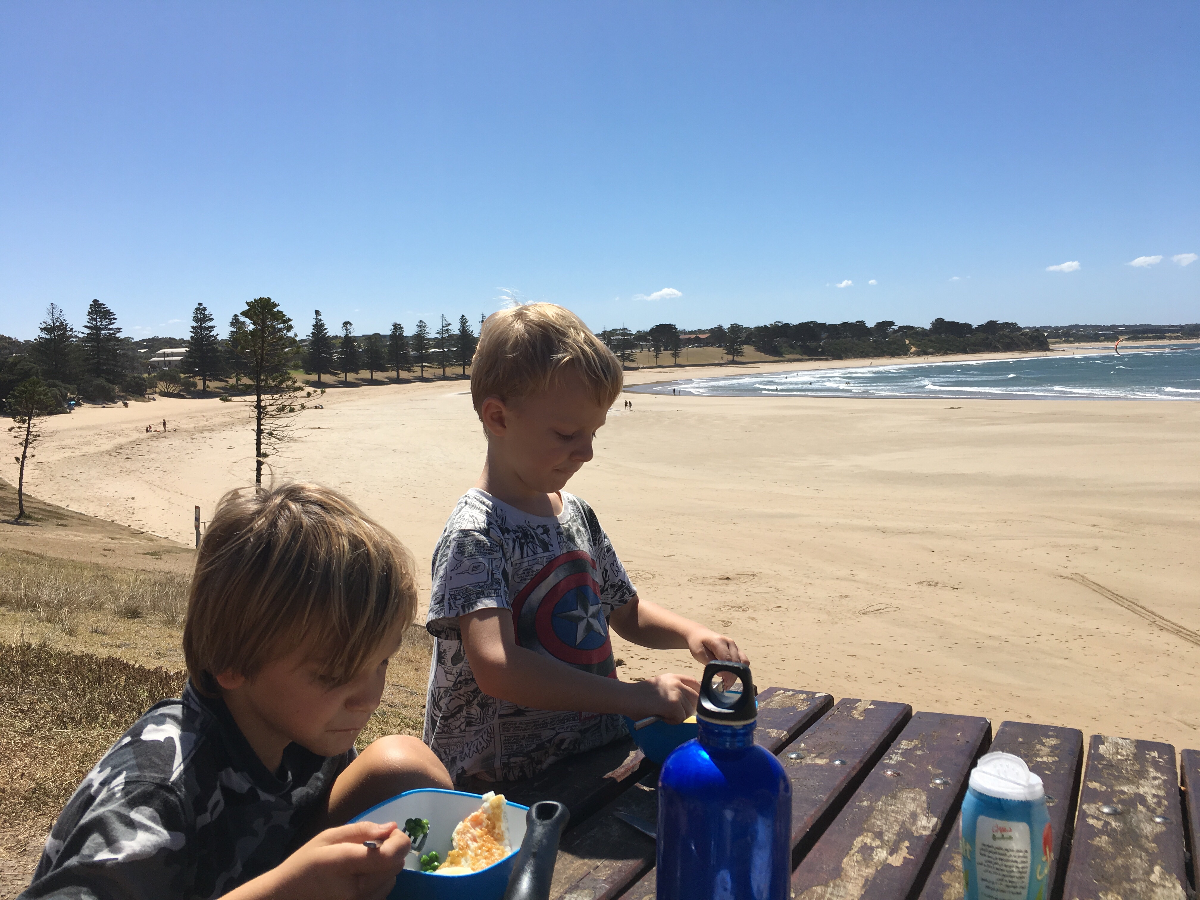 Wir sind jetzt seit langem das erste mal wieder auf einem richtigen Campingplatz. Wenig Leute hier, 40 Dollar die Nacht. Heiß Duschen, Wäsche waschen, im Swimmingpool schwimmen, am Strand morgens Muscheln sammeln und abends den Kindern beim Spielen zuschauen. Ein Tag Pause vom Fahren. Gestern früh Aufbruch von Sydney, einkaufen bei Aldi, Mittag essen an parkgroßen Rastplätzen. Blinkist hören, über Deutschland, das begeistert die Jungs. Weiter durch malerisch grüne Landschaften.