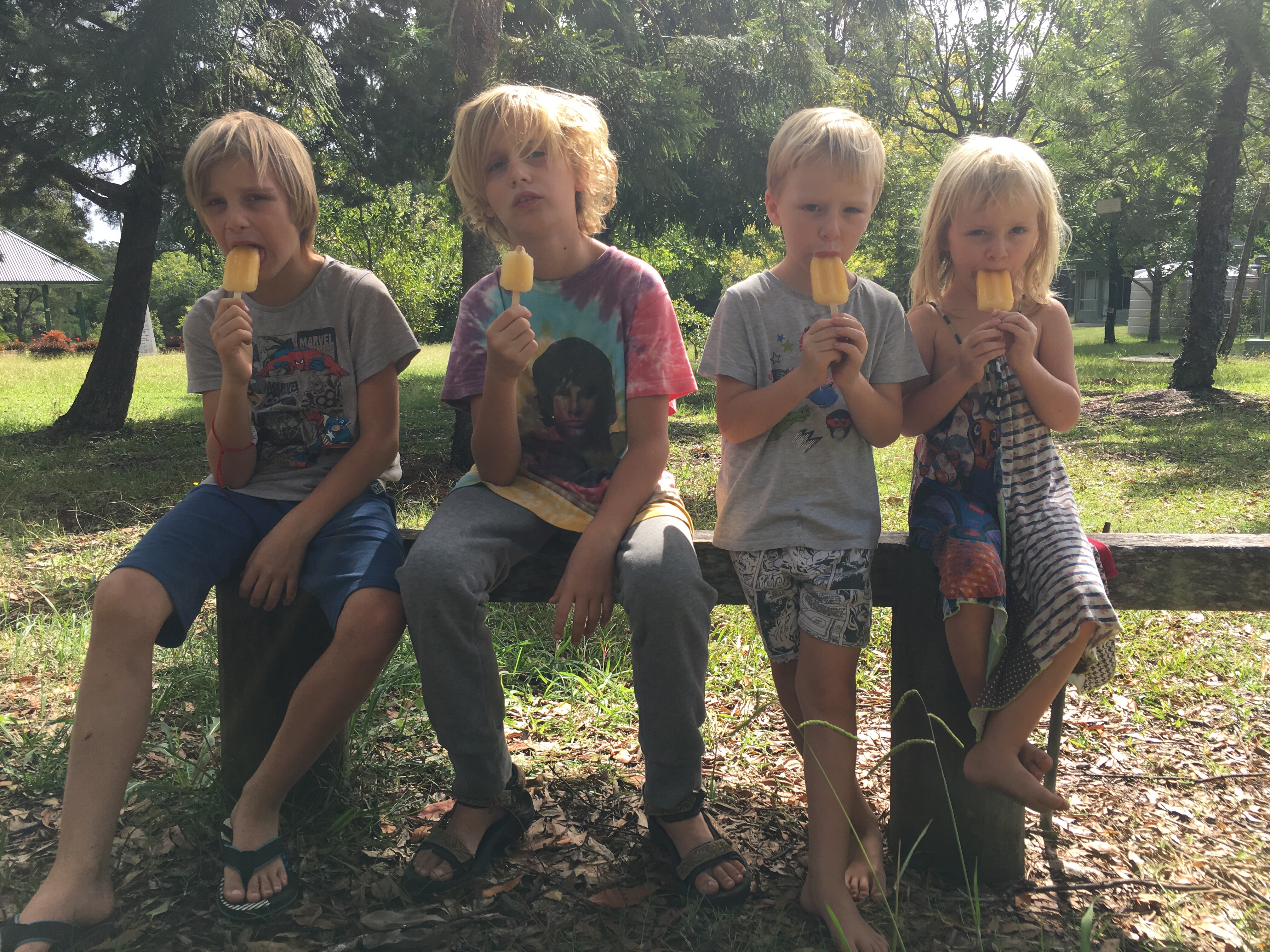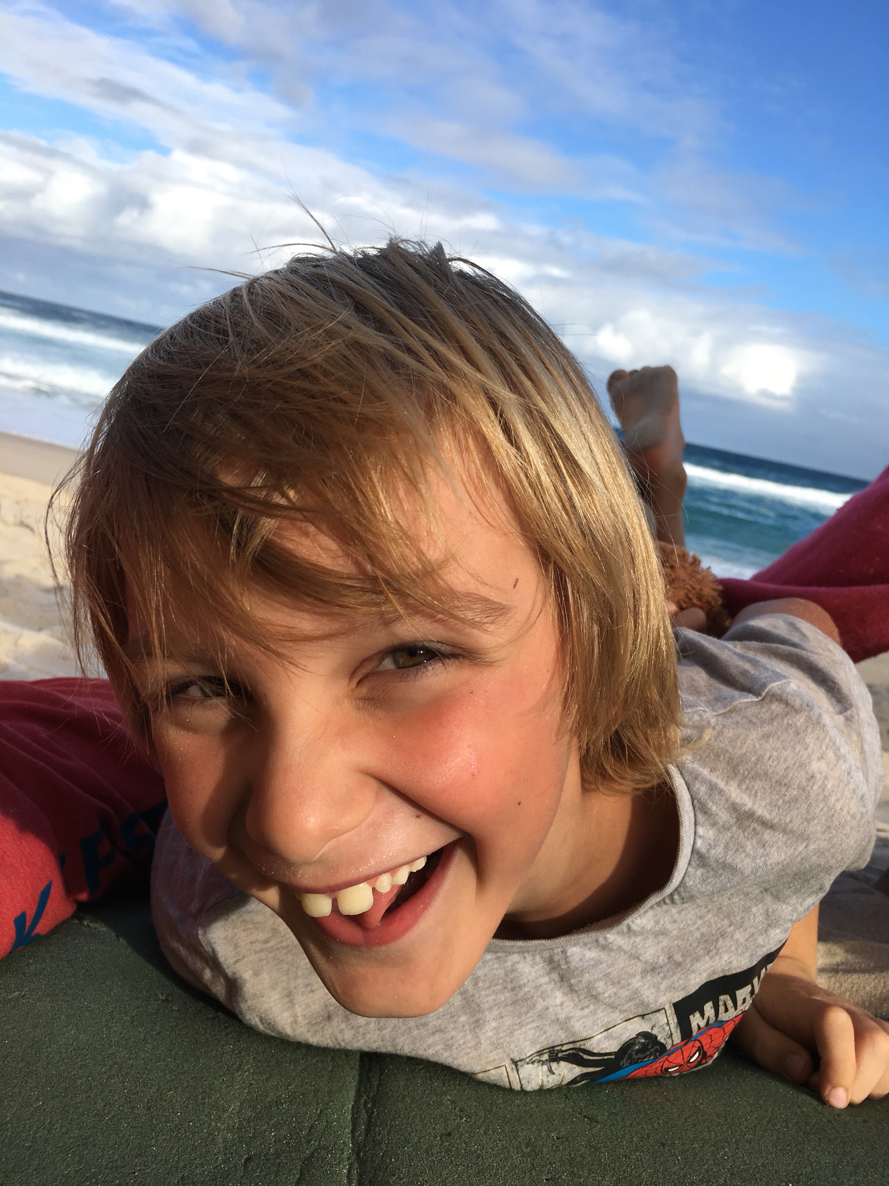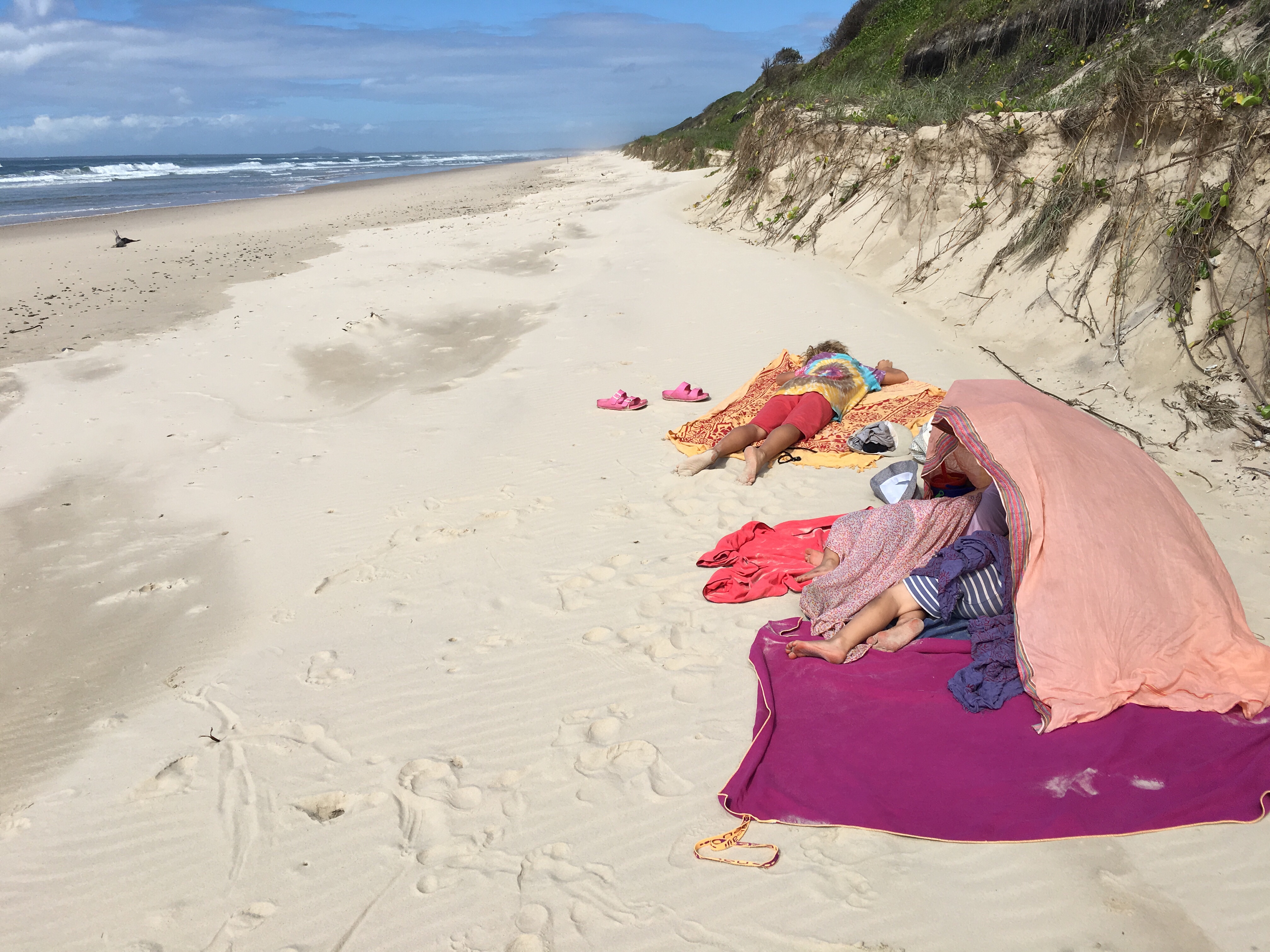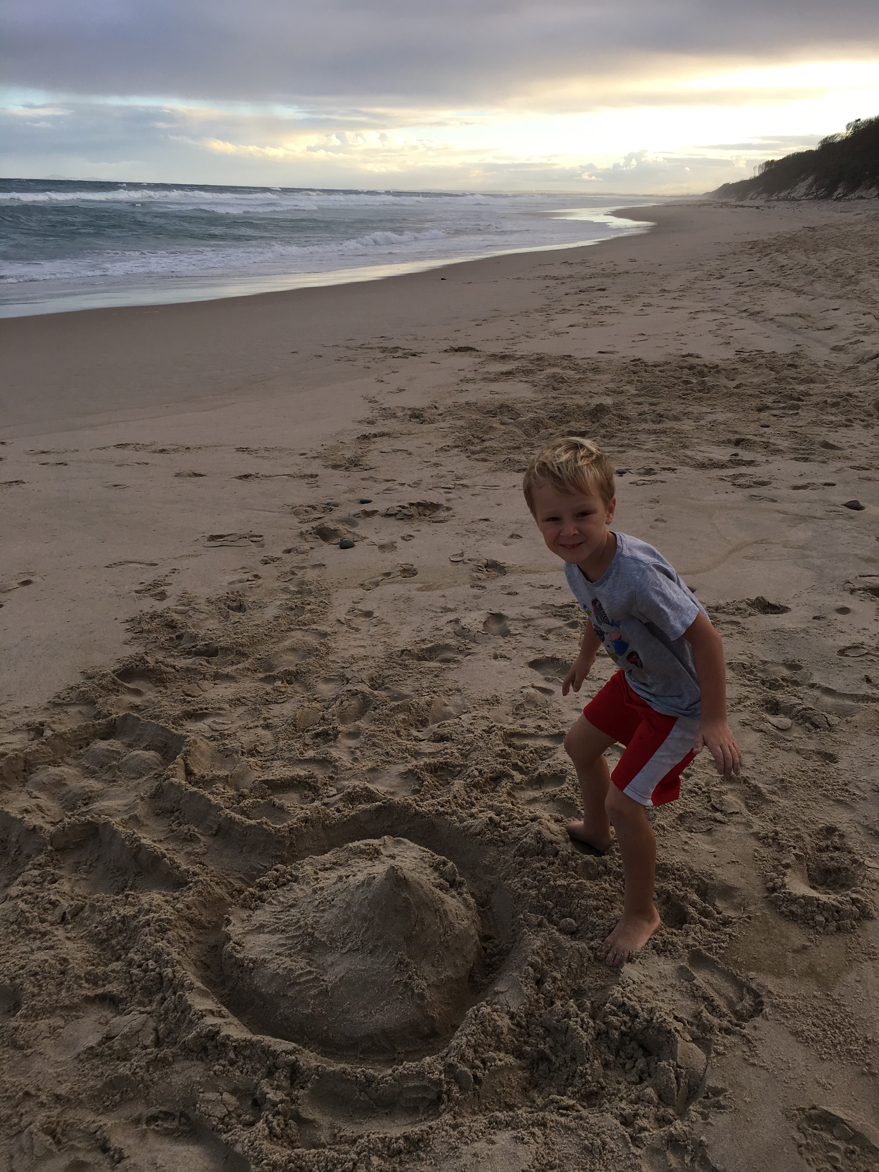 Wir sind jetzt seit langem das erste mal wieder auf einem richtigen Campingplatz. Wenig Leute hier, 40 Dollar die Nacht. Heiß Duschen, Wäsche waschen, im Swimmingpool schwimmen, am Strand morgens Muscheln sammeln und abends den Kindern beim Spielen zuschauen. Ein Tag Pause vom Fahren. Gestern früh Aufbruch von Sydney, einkaufen bei Aldi, Mittag essen an parkgroßen Rastplätzen. Blinkist hören, über Deutschland, das begeistert die Jungs. Weiter durch malerisch grüne Landschaften.