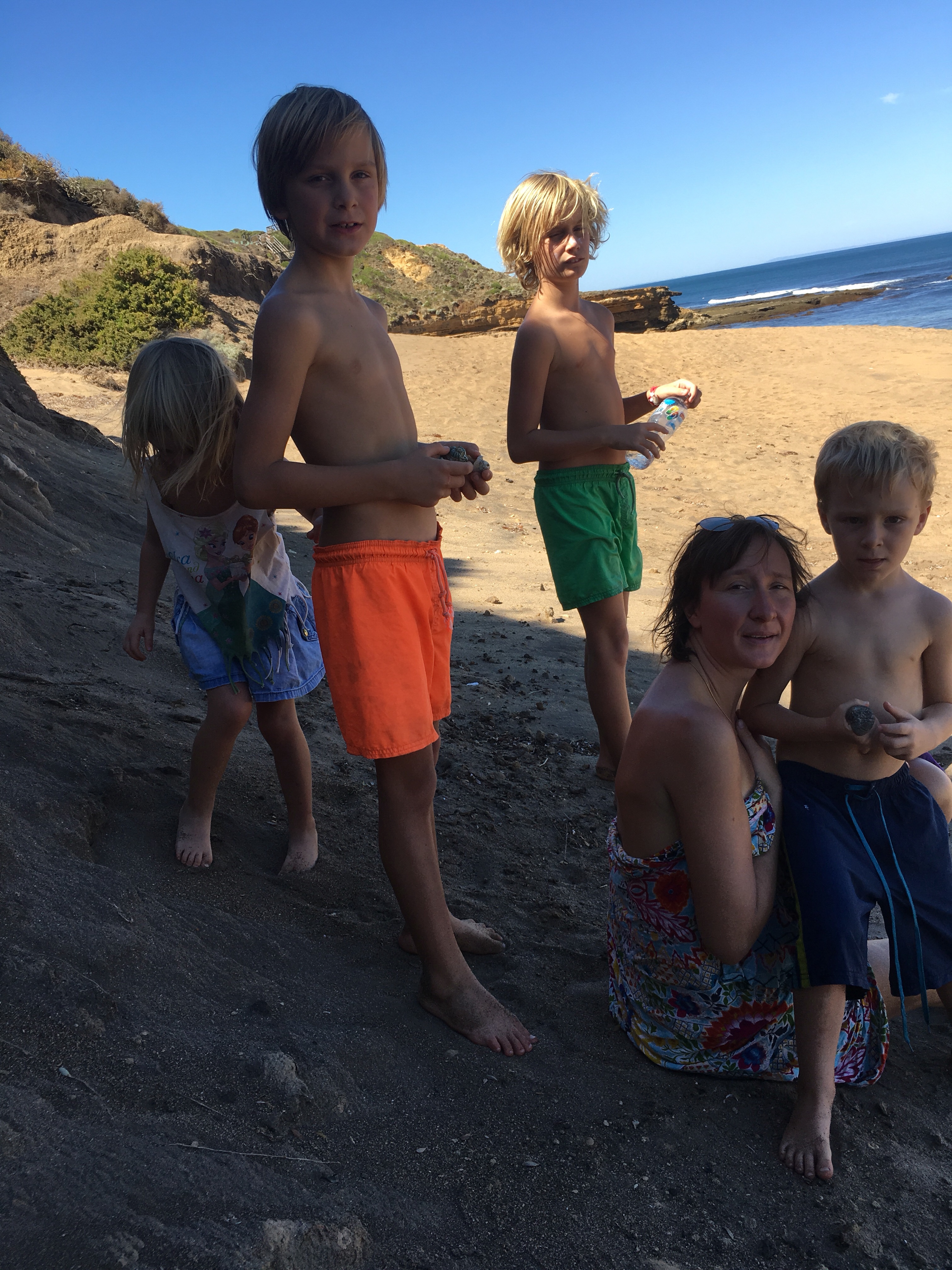 Es kommt einem immer wieder unwirklich, wie in einen Traum vor dass wir hier alle zusammen sein können und diese Schönheit zusammen entdecken können. Die Jungs finden grüne Muscheln und wieder sehen wir die roten Papageien im Wald. Die Straße vom Meer hoch kommt mir im malerischen Wald ein VW Variant entgegen, das Auto meiner frühen Kindheit. Mal sehen, wo wir Morgen landen..