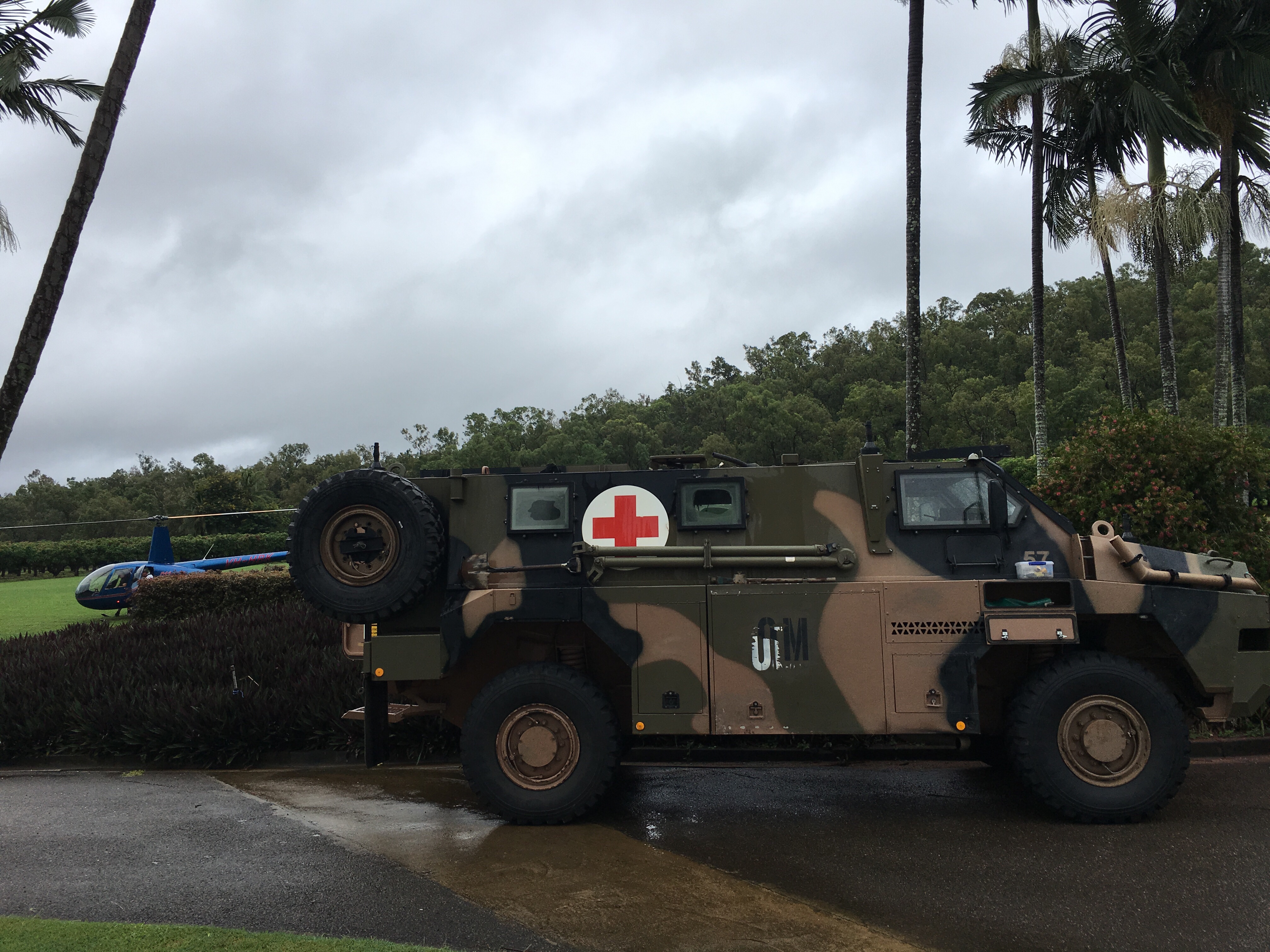 Seit dem wir den Wendekreis des Steinbocks wieder überquert haben und in die Tropen zurückgekehrt sind hat es viel geregnet. Zu viel auch für Queensland. Und so waren schon vorgestern über 100 Straßen gesperrt. Auch unsere Straßen nach Cairns. An Hubschraubern und Armeefahrzeugen sah man, dass es ernst gemeint war. Es kann Tage dauern, hieß es.