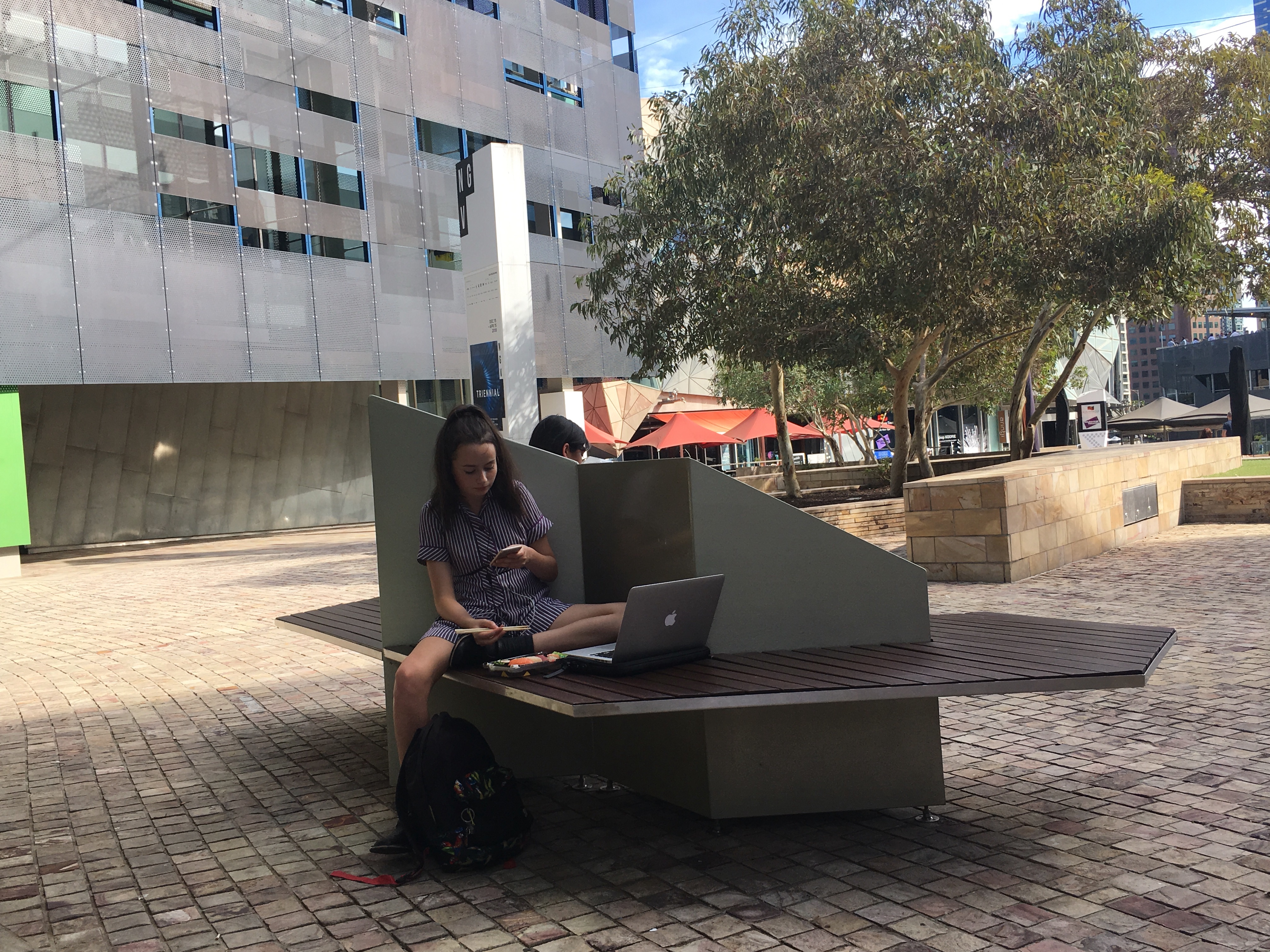 Alle hat es ungeheuer entspannt, an öffentlichen Plätzen einfach so ungestört abhängen zu können, wir sahen Eiskunstlauf bei den olympischen Spielen auf der großen Leinwand am Federation Square.