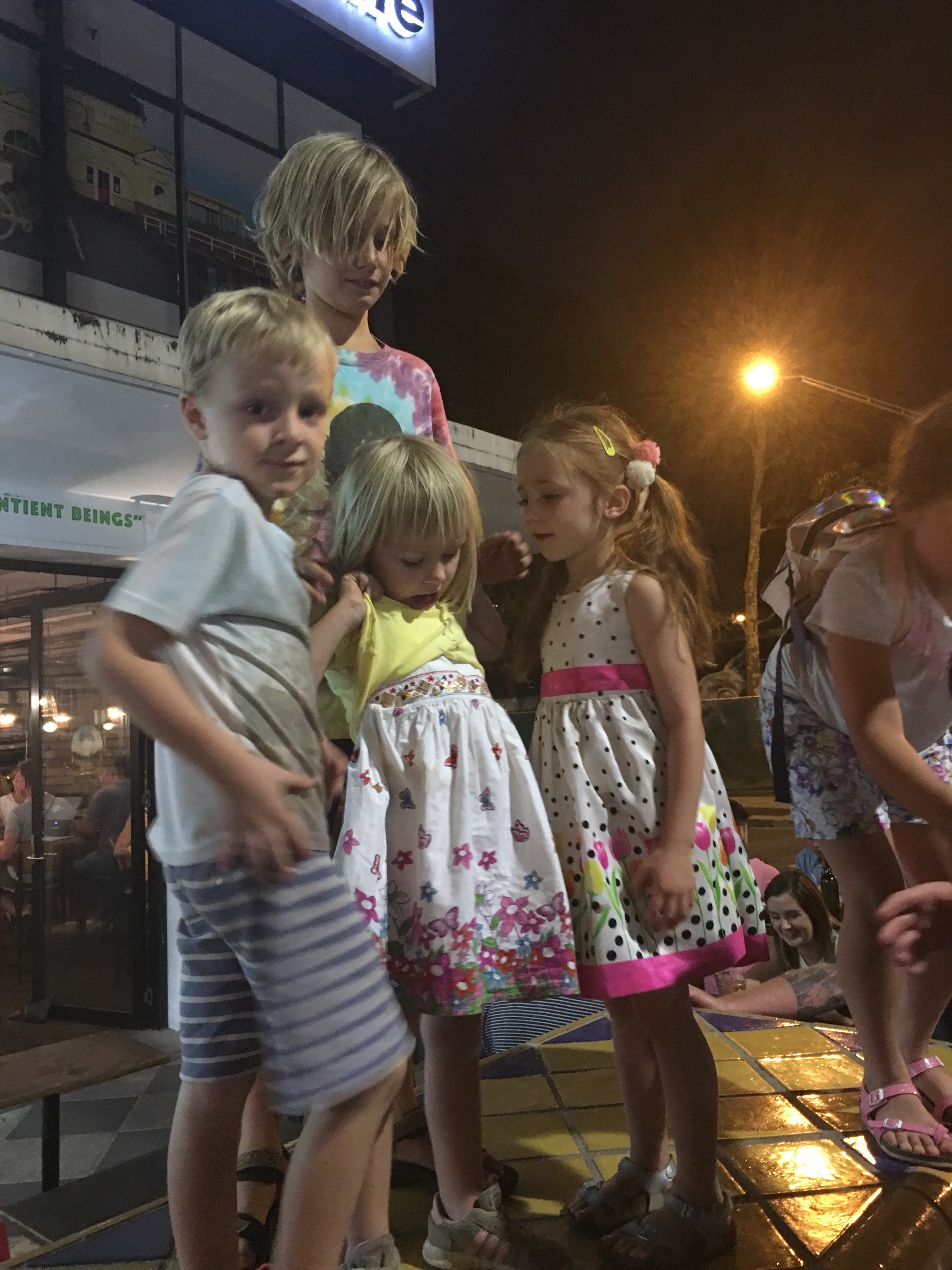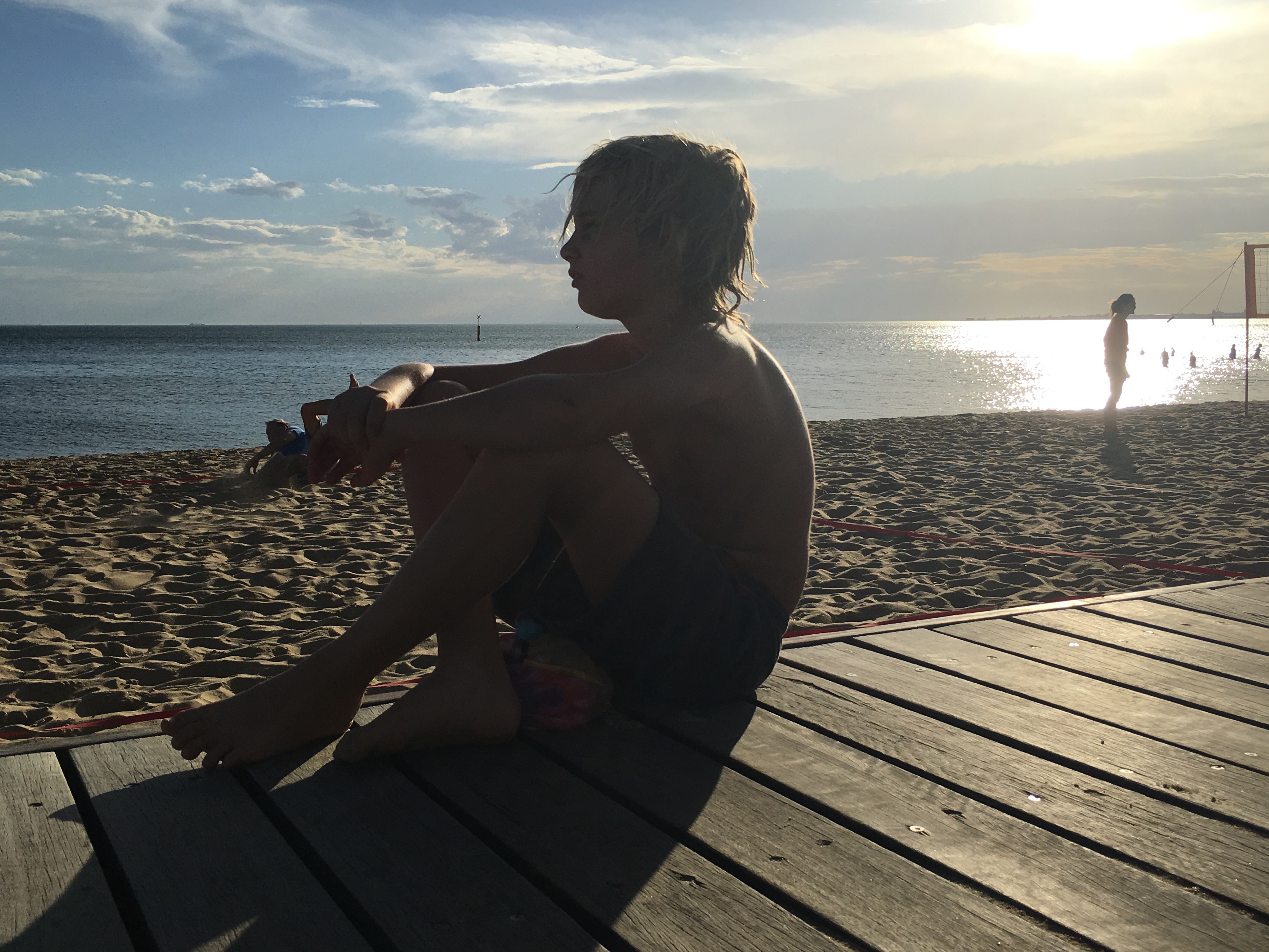 Abends noch mal in St.Kilda schwimmen im Pazifik, noch erstaunlich warm um 19.00 Uhr und danach essen, Bier und mit den Kindern Eisessen und in einen Vergnügungspark. Ein sehr schöner Tag. Melbourne ist faszinierend!