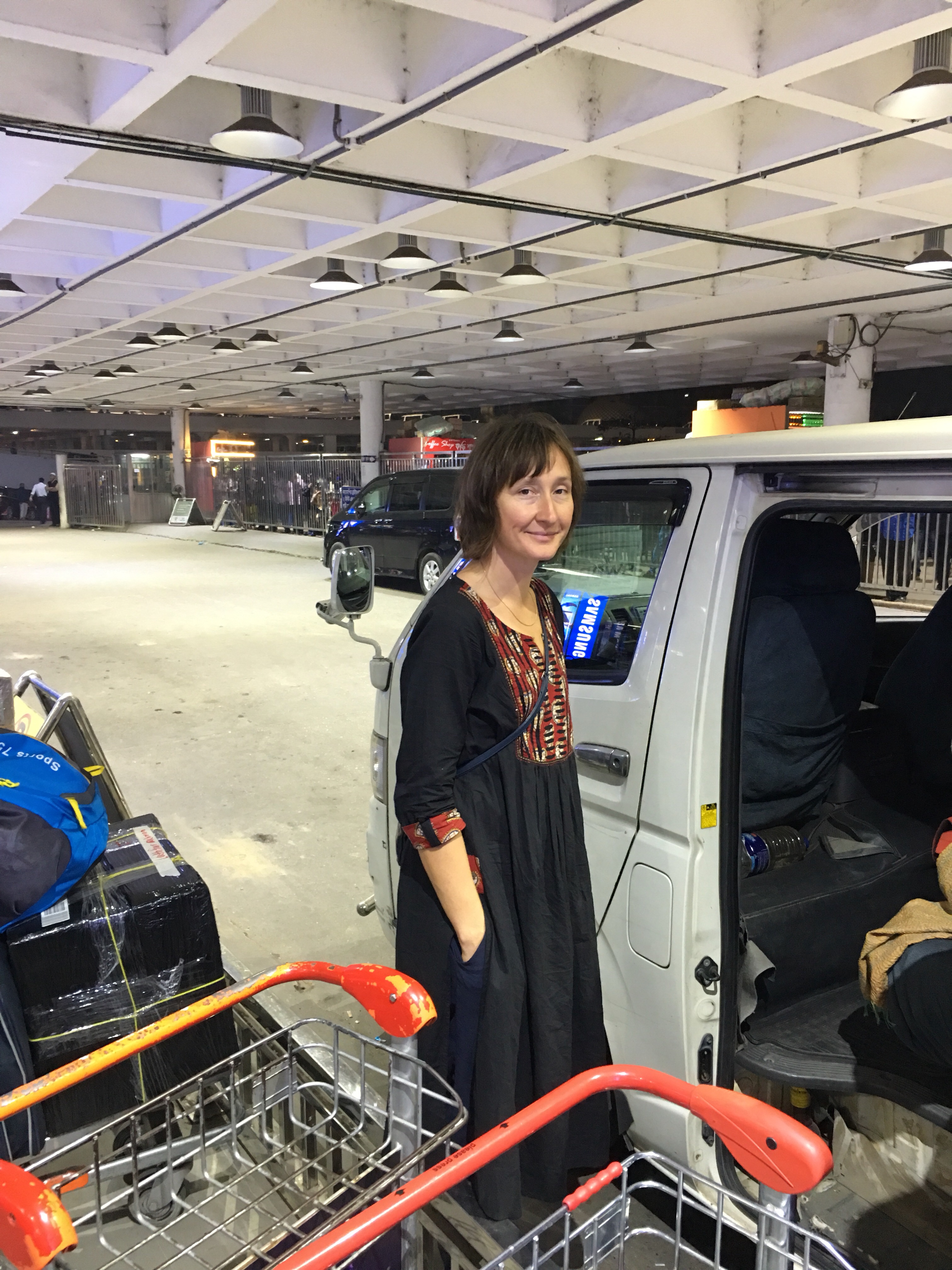 Freude Knut zu sehen, im Stau vom Flughafen und ein toller Empfang mit Lichterketten über der Einfahrt im Diplomatenviertel und einem tollen Essen, bereitet von der netten Mitbewohnerin Sabrina, die als Fotografin mit Frauen in Textilfabriken arbeitet. Fühlt sich an wie daheim in der Fremde. Danke!