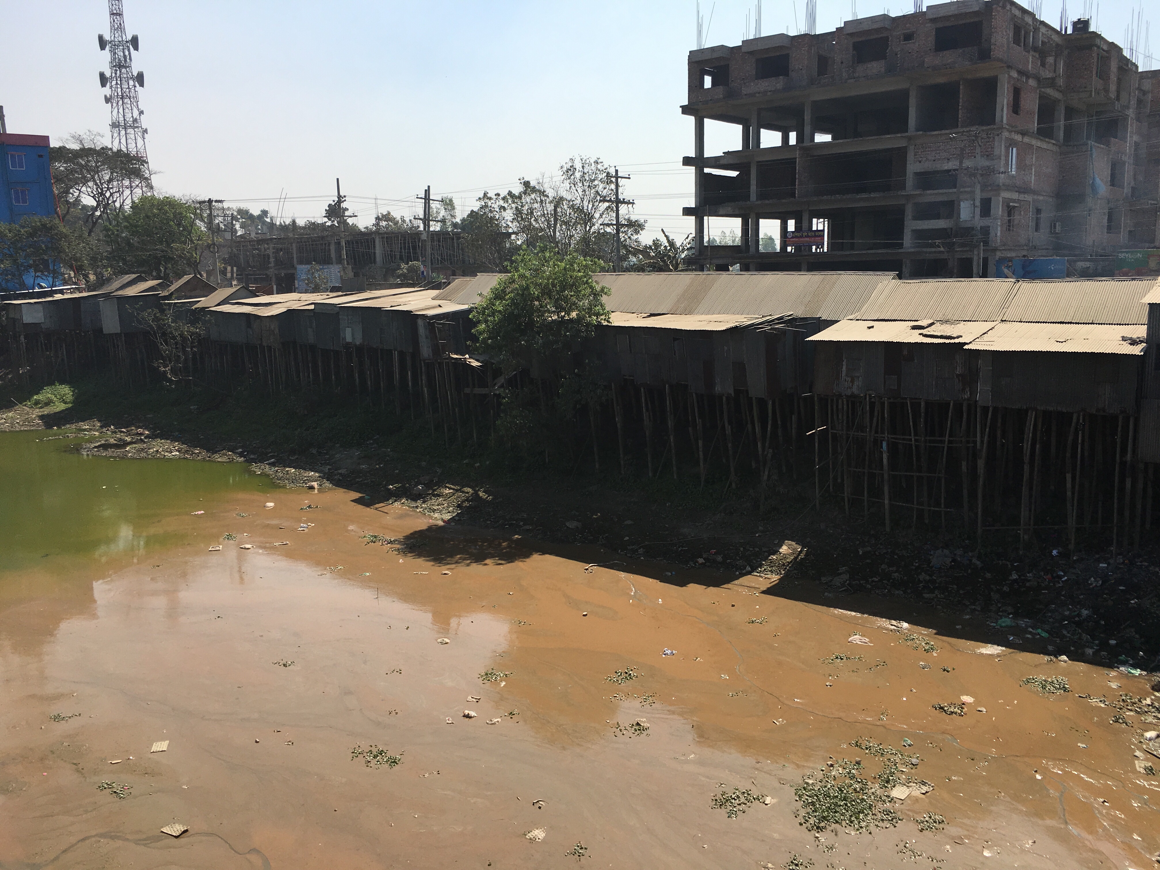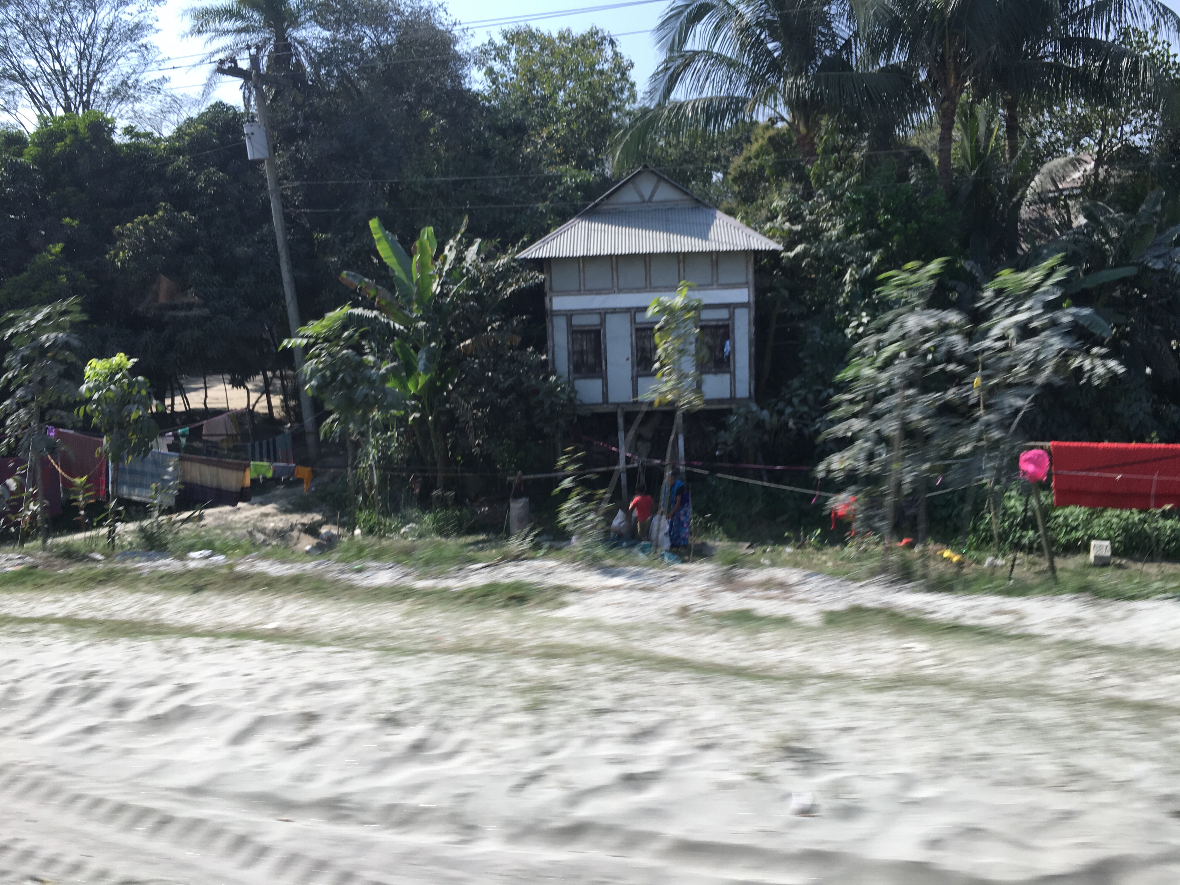 Und von Dhaka dorthin die Autobahn, meist auch auf Stelzen. Überall wird gebaut. Wir sehen: dieses Land ist ein Sumpf- und Wasserland. Und es ist im Umbruch. Die Häuser stehen auf Stelzen, Land wird durch Aufspülung mit Flusssand befestigt. Steine gibt es keine, es werden aber Ziegel gebrannt, auch Straßen daraus gebaut.