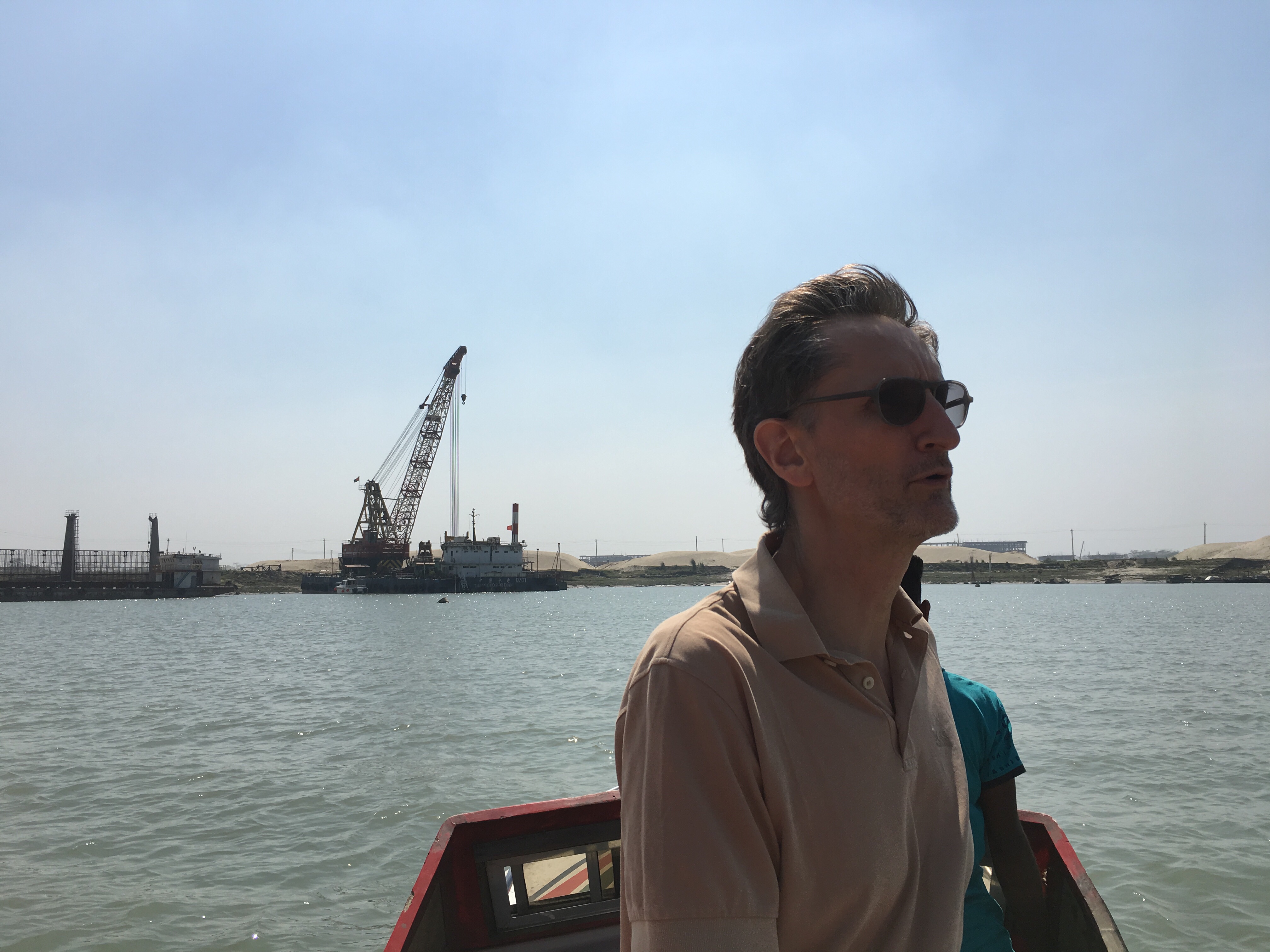 Durch Zusammenfluss von Ganges und Bramaputhra transportiert er im Durchschnitt 30.000 Kubikmeter pro Sekunde. Für mich zum Vergleich: die Weser hat vor der Mündung 300 Kubikmeter pro Sekunde. Das ist hier also die hundertfache Wassermenge.