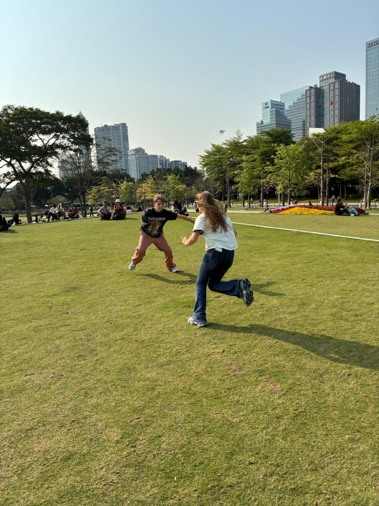 We say goodbye in bright sunshine, enjoy the great park in the Skyscraper area and let the children run around before the 11-hour non-stop flight to Auckland on the North Island of New Zealand tonight, from spring to fall.