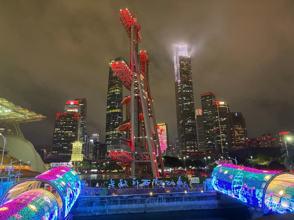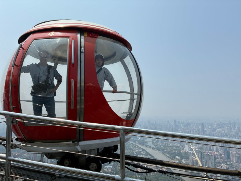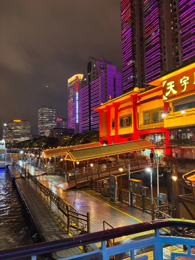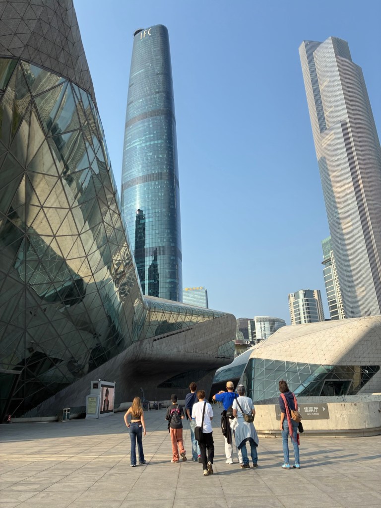 We are in a commercial metropolis, the former Canton has an impressive skyline, with 550 to 600 meter high towers that can be admired from the Pearl River, especially at night. And there is a freefall tower at a height of 480 meters – you only fall 30 meters, but they are quite something. We can’t miss out on that.