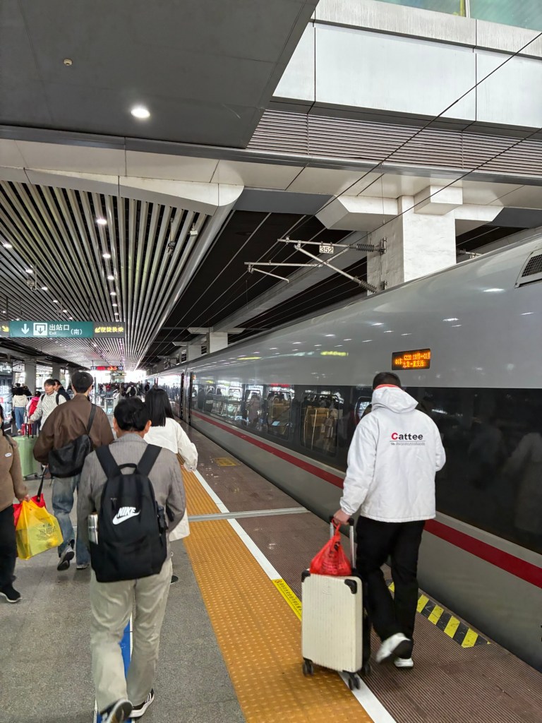 The new train station in Guangzhou has 28 tracks for high-speed trains. It is larger than many airports. Not so easy for tourists, there is no ATM and no bureau de change, you can only pay with Alipay or WeChat, and I can’t get the app to load – the firewall won’t let me log in. But luckily there is an information stand and it can help us – after half an hour we have the 8 three-day passes for 6 euros each in our hands.