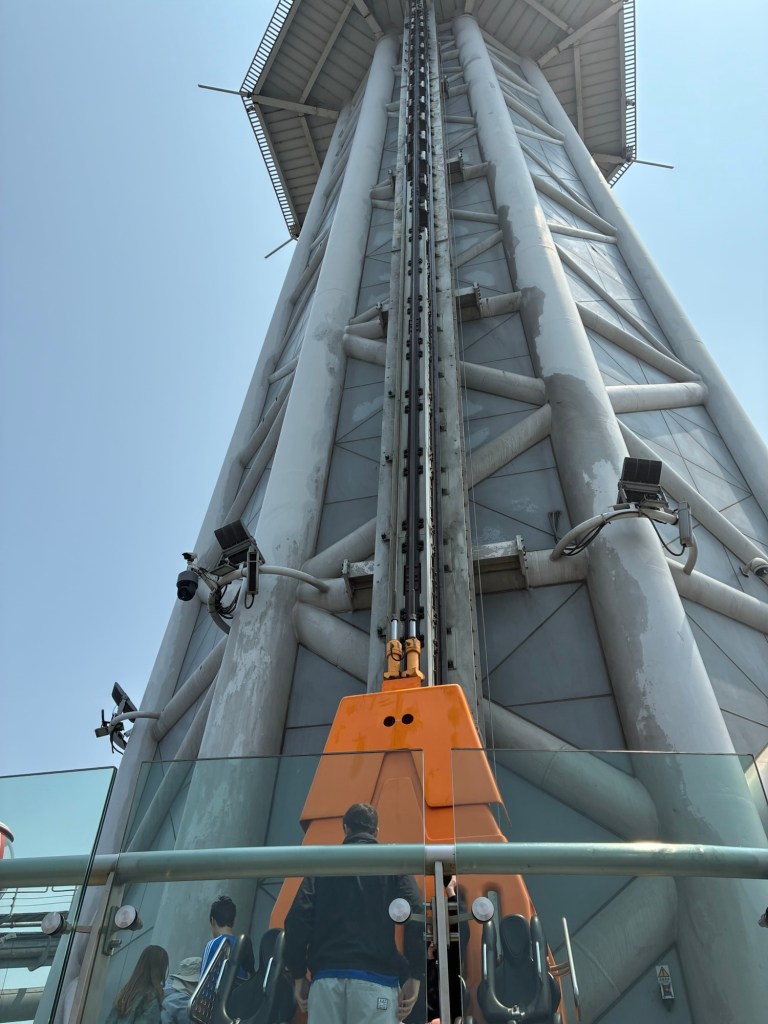 Wir sind in einer Handelsmetropole, das ehemalige Kanton hat eine eindrucksvolle Skyline, mit 550 bis 600 Meter hohen Türmen die man besonders Nachts vom Perlfluss bewundern kann. Und es gibt einen Freefall Tower auf 480 Meter Höhe-man fällt zwar nur 30 Meter, aber die haben es im sich. Das können wir uns nicht entgehen lassen.