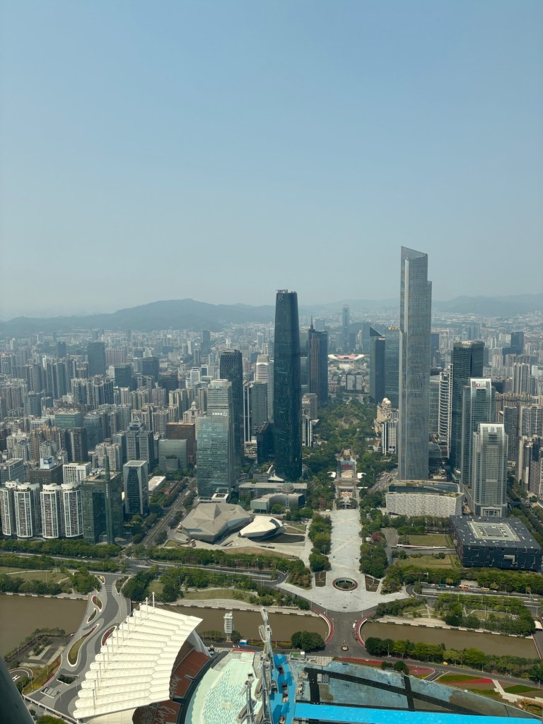 Wir sind in der „Greater Bay Area“, der größten Metropolregion der Welt – je nach Quelle zwischen 65 und 86 Millionen Menschen wohnen hier auf der Fläche von Thüringen. Eine Millionenstadt grenzt an die nächste an- Shenzen, Guangzhou, Foshan …jede mit 10 bis 20 Millionen.