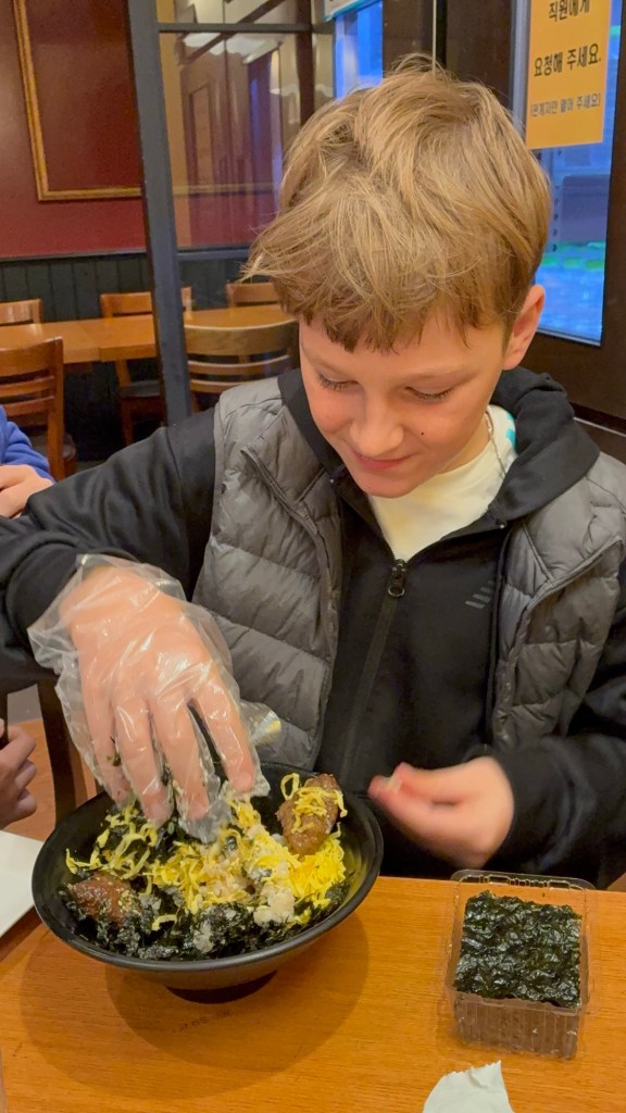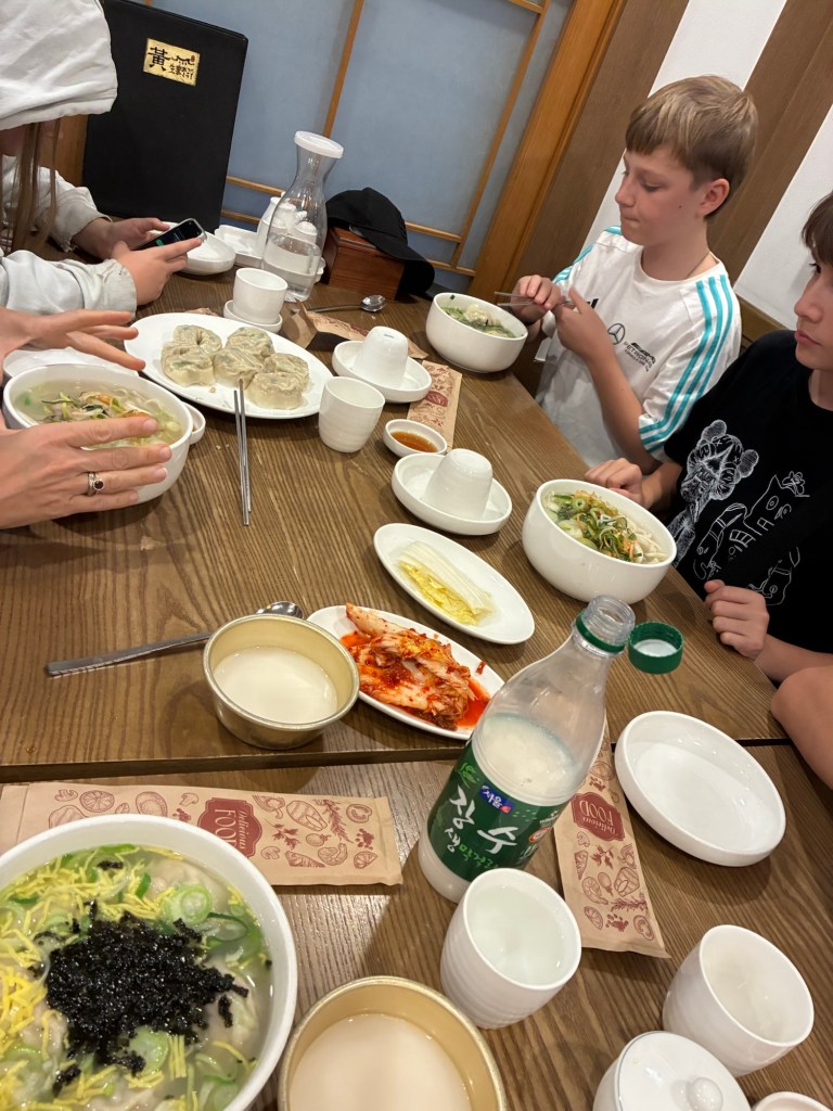 Zum Abschluss nach Palastmuseum und dem modernen Museum of Contemporary Art waren wir noch mal traditionell koreanisch Dumplings essen. Tara fand, Korea war das bisher beste Land, und mit sechs Tagen hatten wir auch richtig Zeit. In der Innenstadt war es auch das modernste Land bisher.