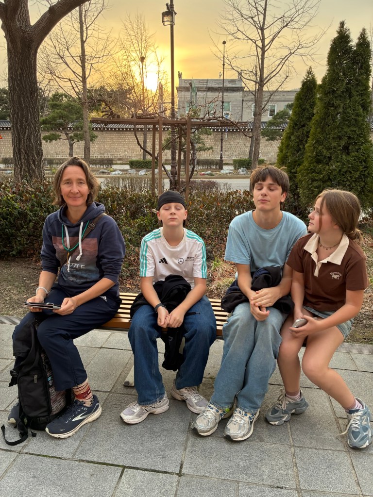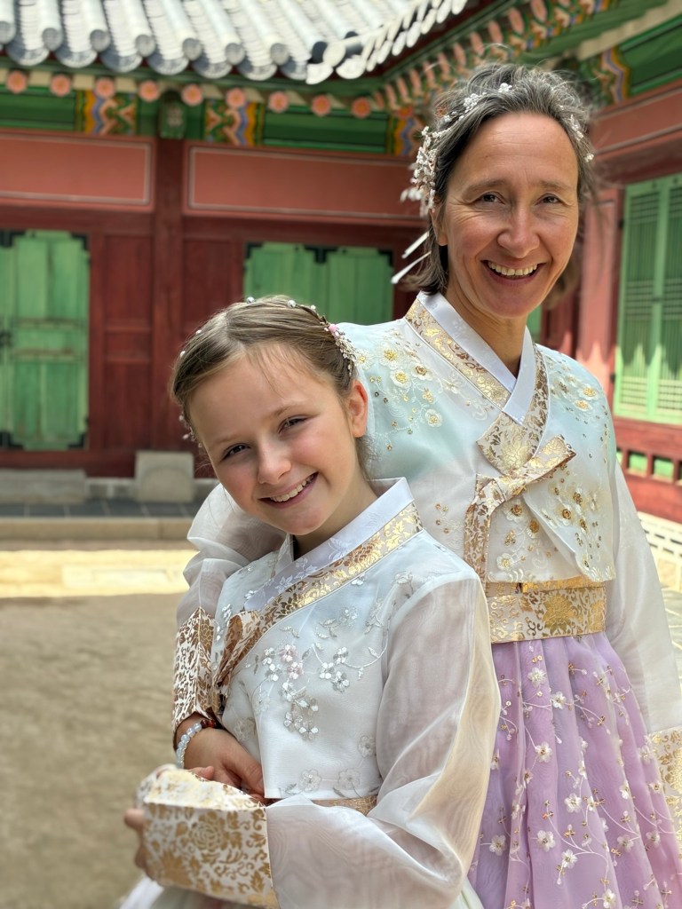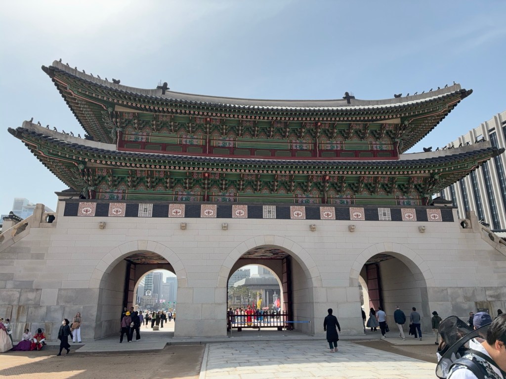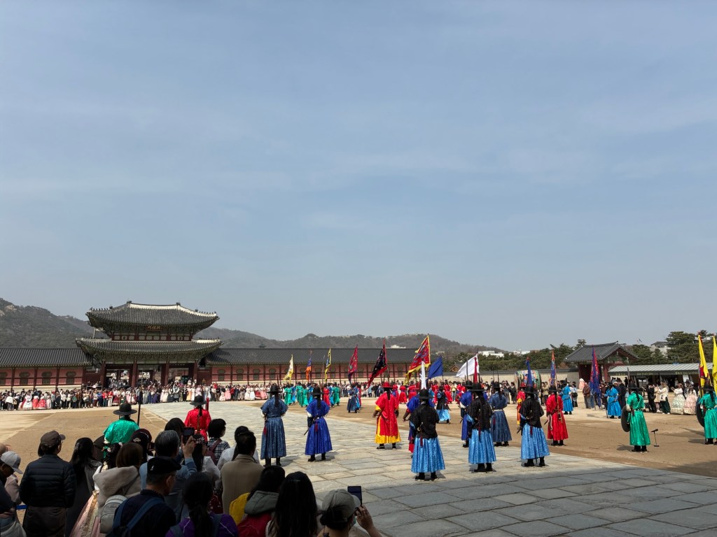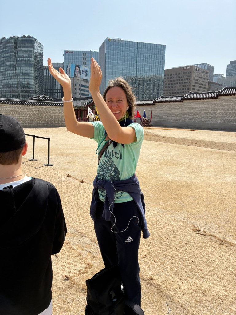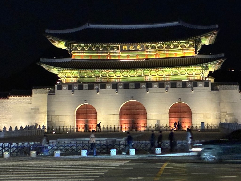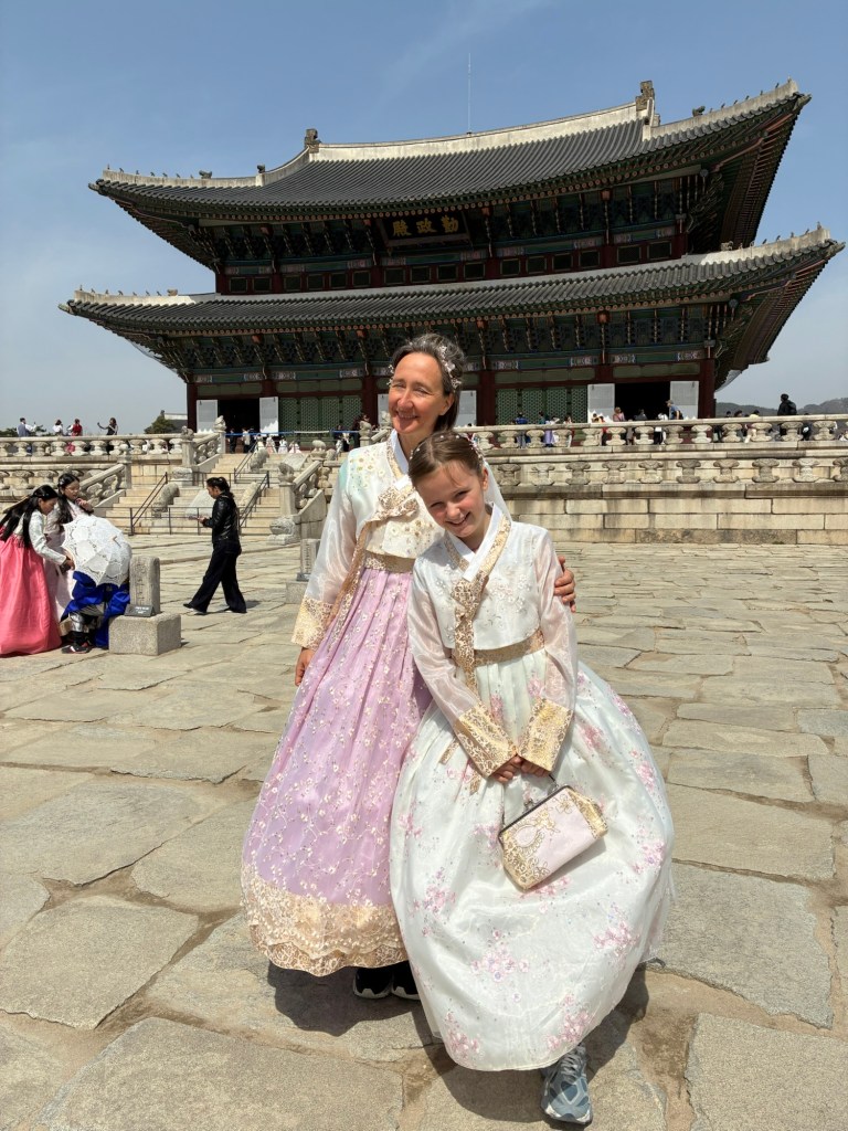 We keep getting alerts about the forest fires in Korea on our cell phones and on my Apple Watch. But we don’t notice anything. But there are demonstrations in the city center, with loud speeches and lots of police, in view of the government crisis. But it is also National Culture Day – all museums and the Royal Palace can be visited free of charge. This leads to a lot of dressing up – everyone wears traditional costumes, including many tourists.