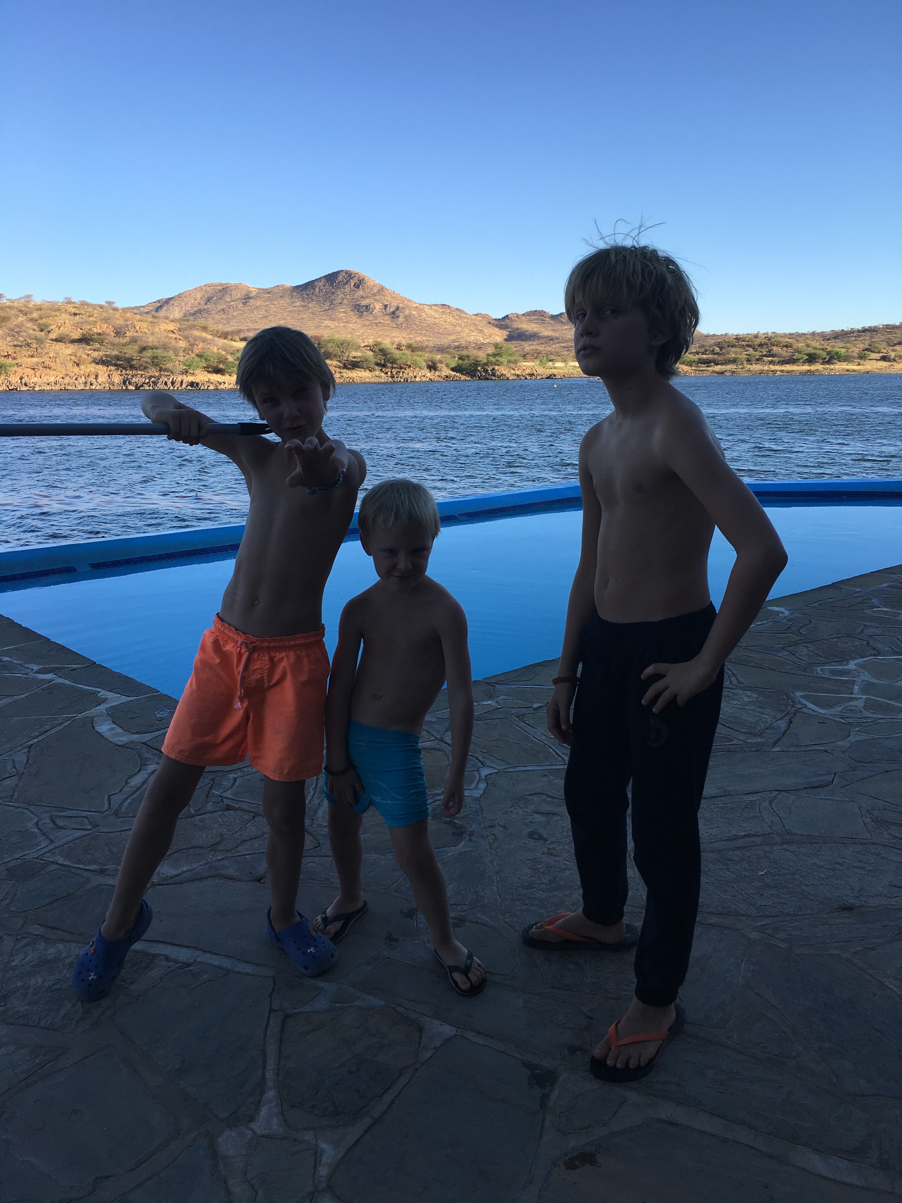 Es geht weiter so. Ich bin wieder dran und weiß, die Ausrichtung und die Gedanken sind entscheidend. Dehnen. Den Moment genießen. Heute beim Ankommen noch mal Schwimmen, Lysander sprang gleich in den Pool hinein, sehr cool, wir alle hinterher gerade vor Sonnenuntergang.