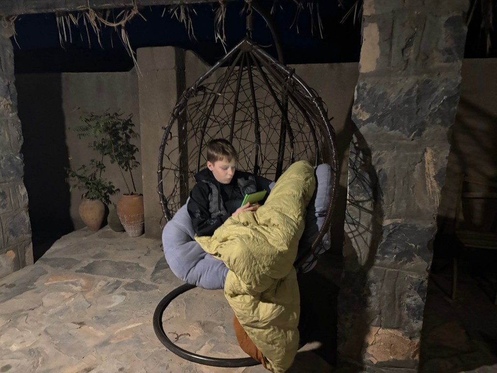 Aber wir sind ja nicht zum Spaß hier. Deshalb begann danach die Weltreiseschule. Morpheus suchte sich das Matheübungsbuch heraus, Tara erstellte sich einen Ländervergleich von Oman, Türkei und Indien und lachte laut auf, als sie bei der Einwohnerzahl von Indien war. Ich holte auch den Rechner heraus. Um 14:00 Uhr waren wir alle wie besprochen aufbruchsbereit zum Strandausflug.
