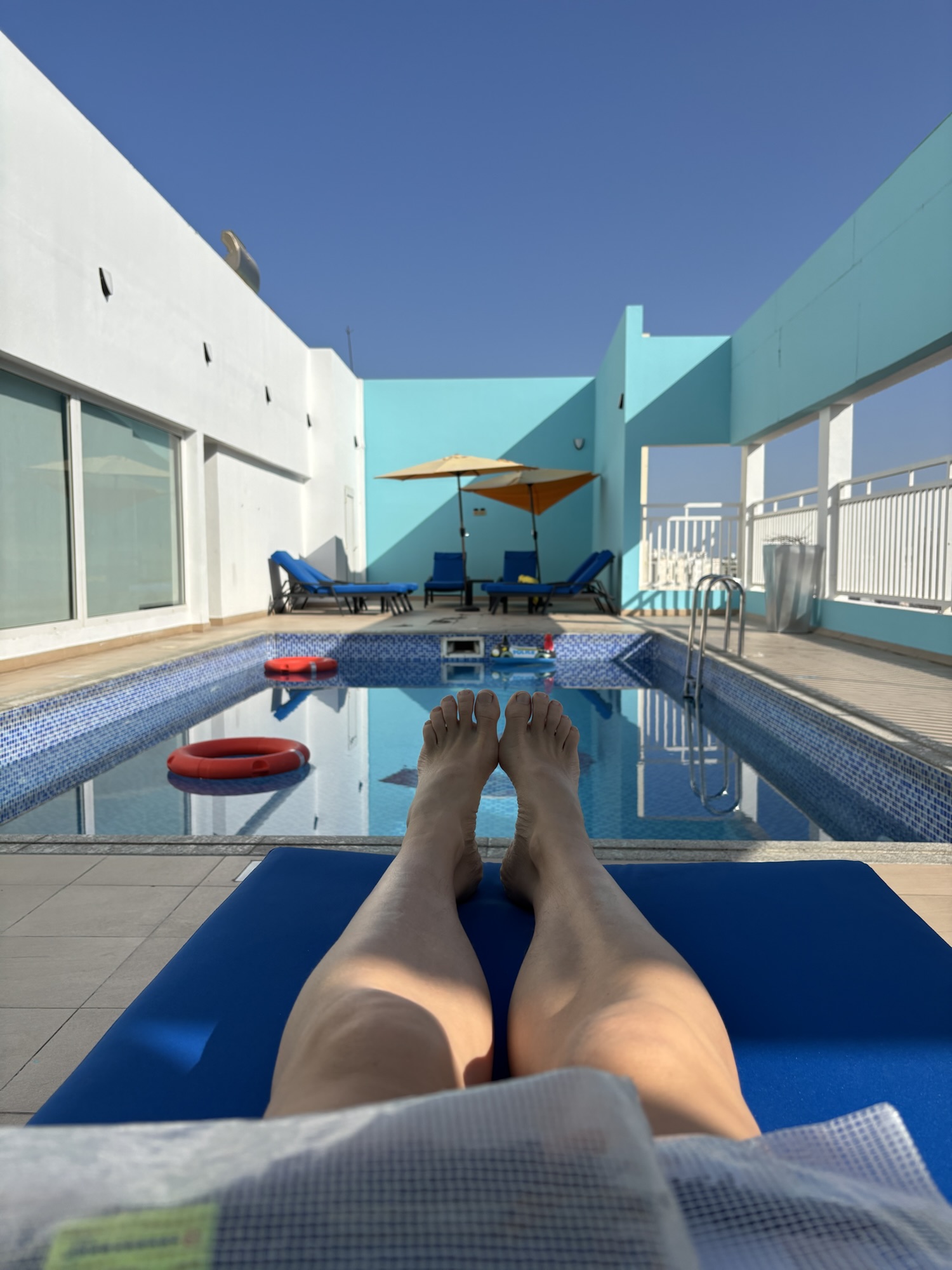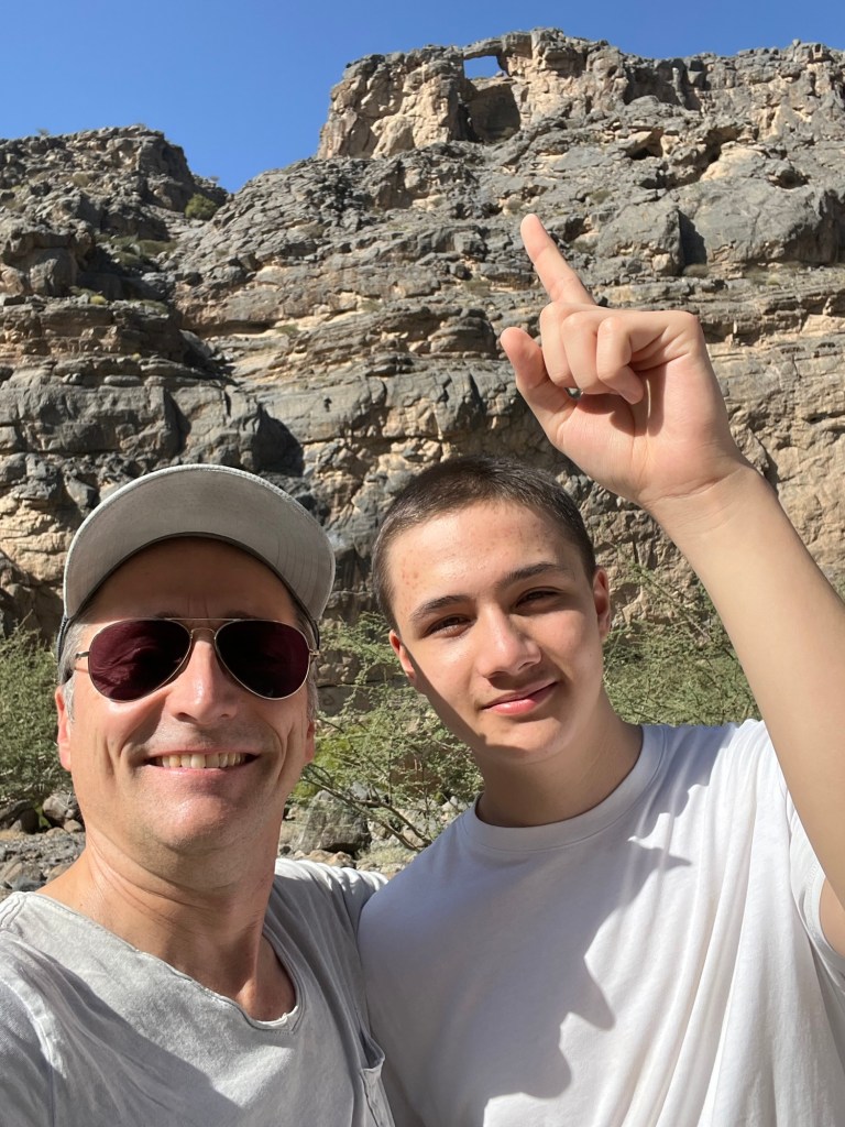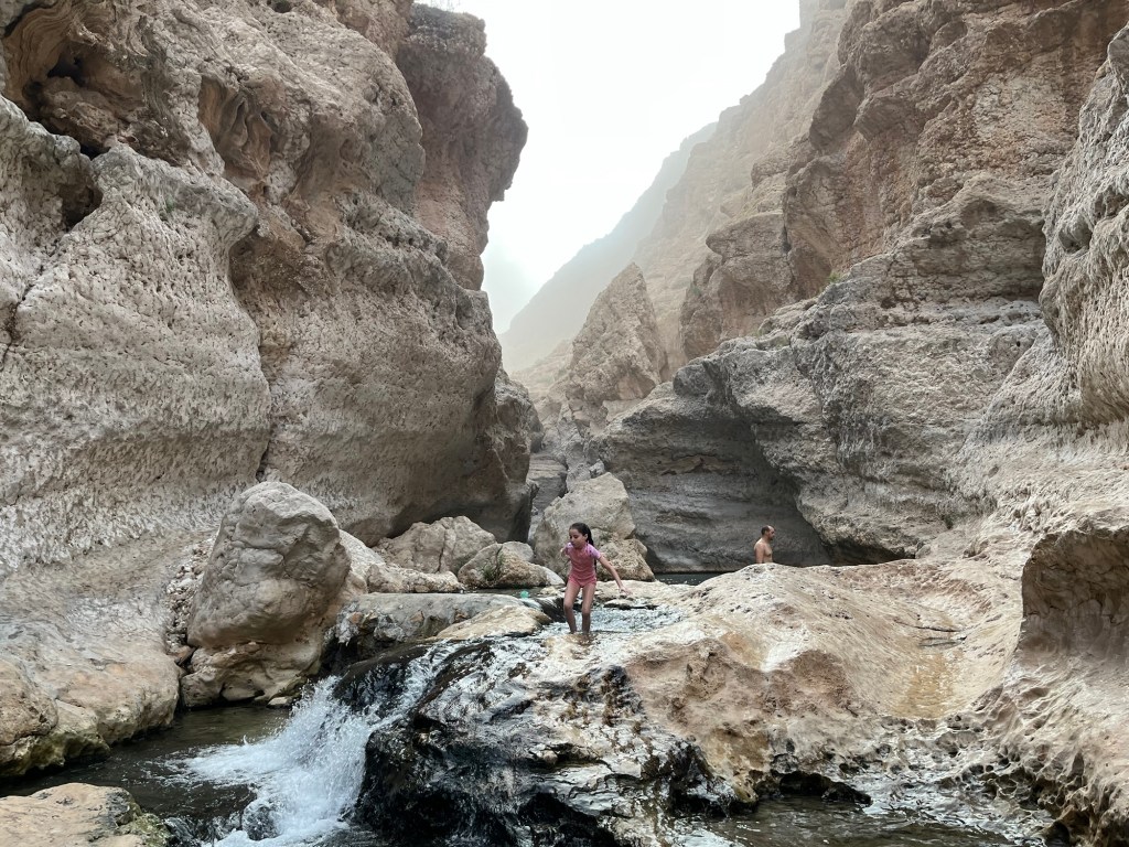 By the time we get back to the car, exhausted but happy, everyone has experienced something. We have a 3-hour drive ahead of us to get back to Muscat in the big city, where a hotel in the lively city center welcomes us – Tara jumps straight into the small pool on the roof.