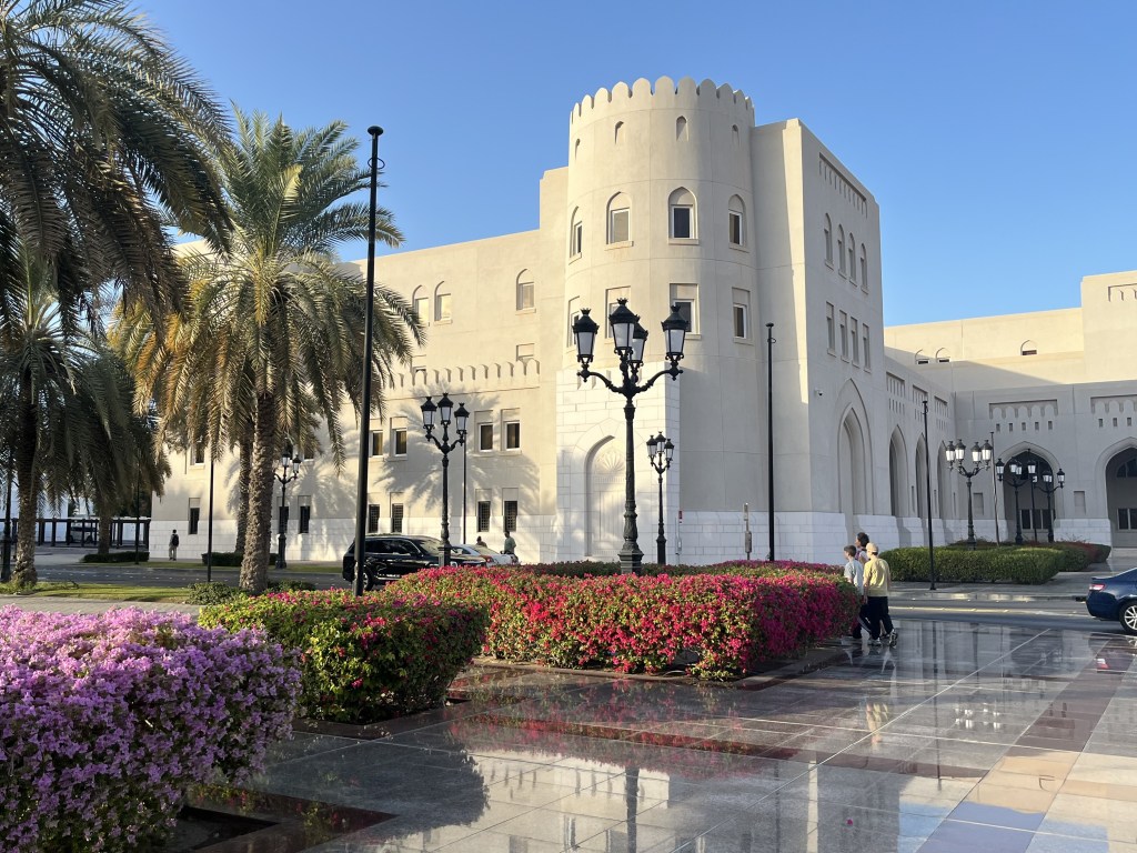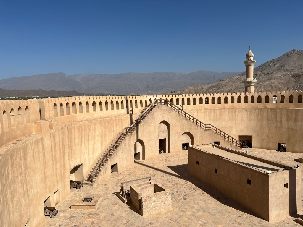You have to get used to the currency. 1 Oman Rial (OMR) is equivalent to 2.45 euros. But that’s also how much breakfast at our hotel cost, and after a short power nap everyone met up there again. Then everyone slept for two hours. Afterwards, the bright light outside was even more impressive.