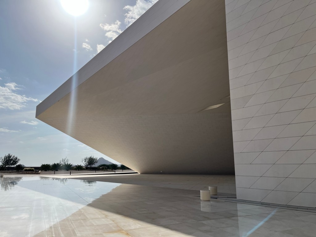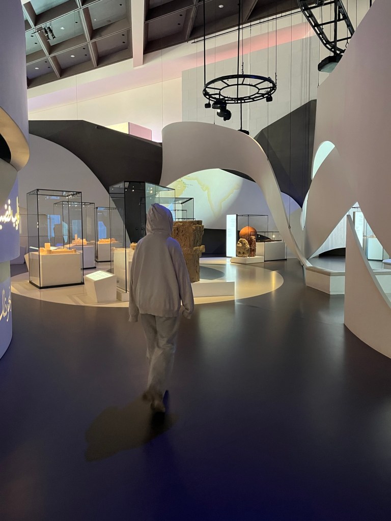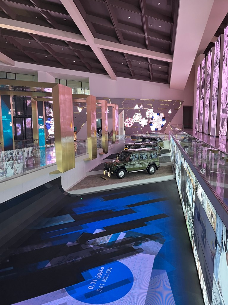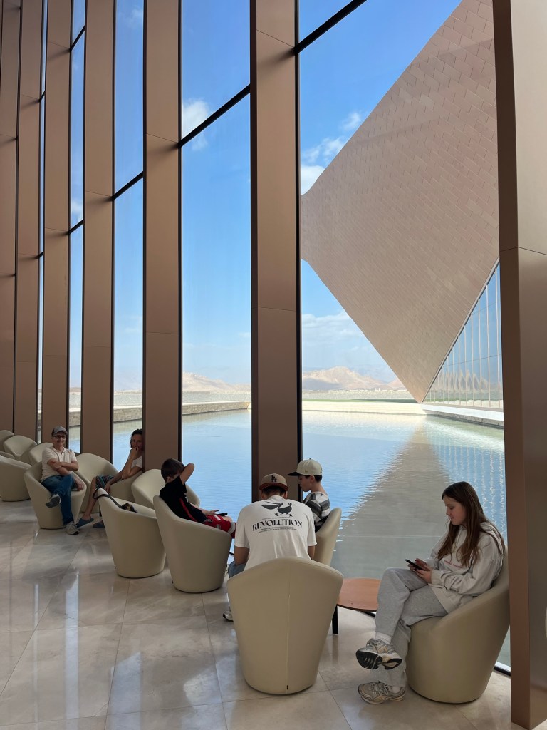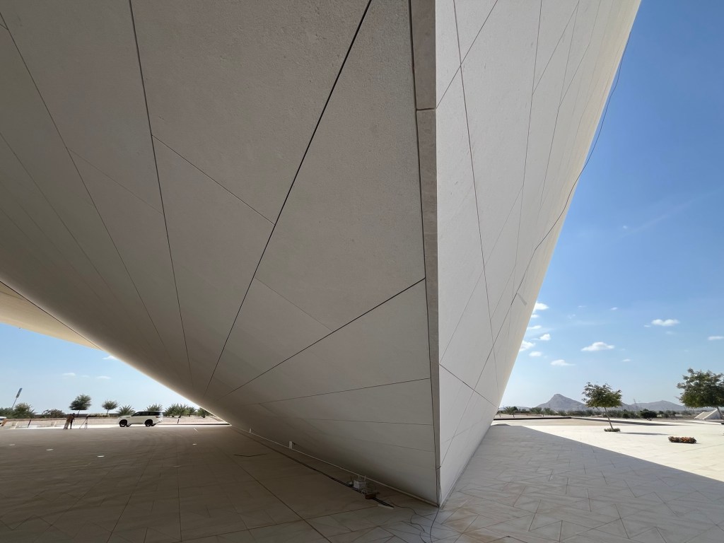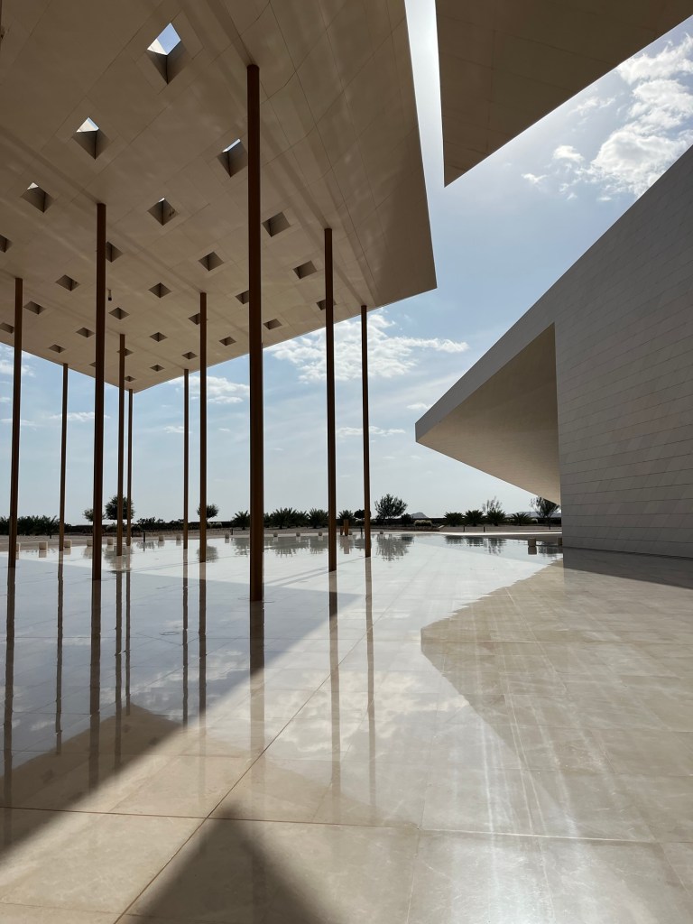Eigentlich wollte ich ja über das Fort vom Nizwa berichten. Eindrucksvoll restauriert, der meist besuchte Ort des Landes. Den Jungs gefiel am meisten die drei Todesfallen am Eingang. „The King of Germany was there, last year“- meinte der Eisverkäufer zu Andreas und zeigte auf das Bild von Steinmeier. Doch irgendwie verblasste das alles angesichts des Museums, das wir danach sahen. Mit 300.000 m2 50% größer als der Louvre. 3 Milliarden Euro wäre eine konservative Schätzung für die Kosten. 2023 eröffnet, haut es einen in allen Dimensionen einfach um. Von außen wie innen, die Technologie, die interaktiven Objekte. Es sieht wie aus einer science Fiction Szene auf einem fremden Planeten aus.