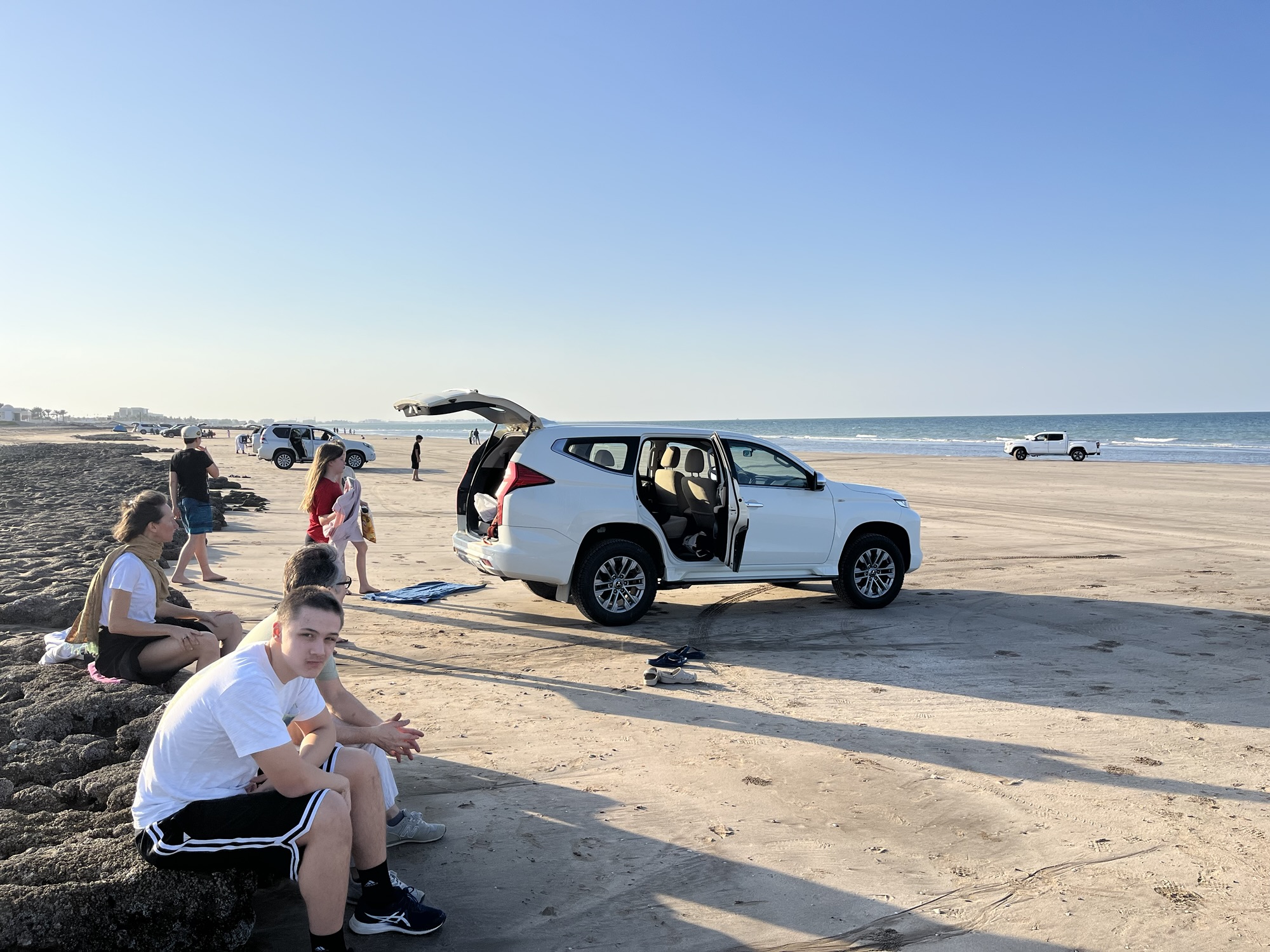 In Oman, you go to the beach by car, we realised that straight away. Nevertheless, we parked dutifully in the car park, marvelling at the ultra-modern toilets and the park with fitness area, football pitch and beach volleyball, all freely accessible and almost deserted.