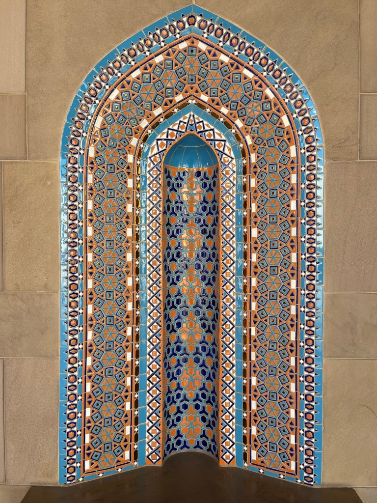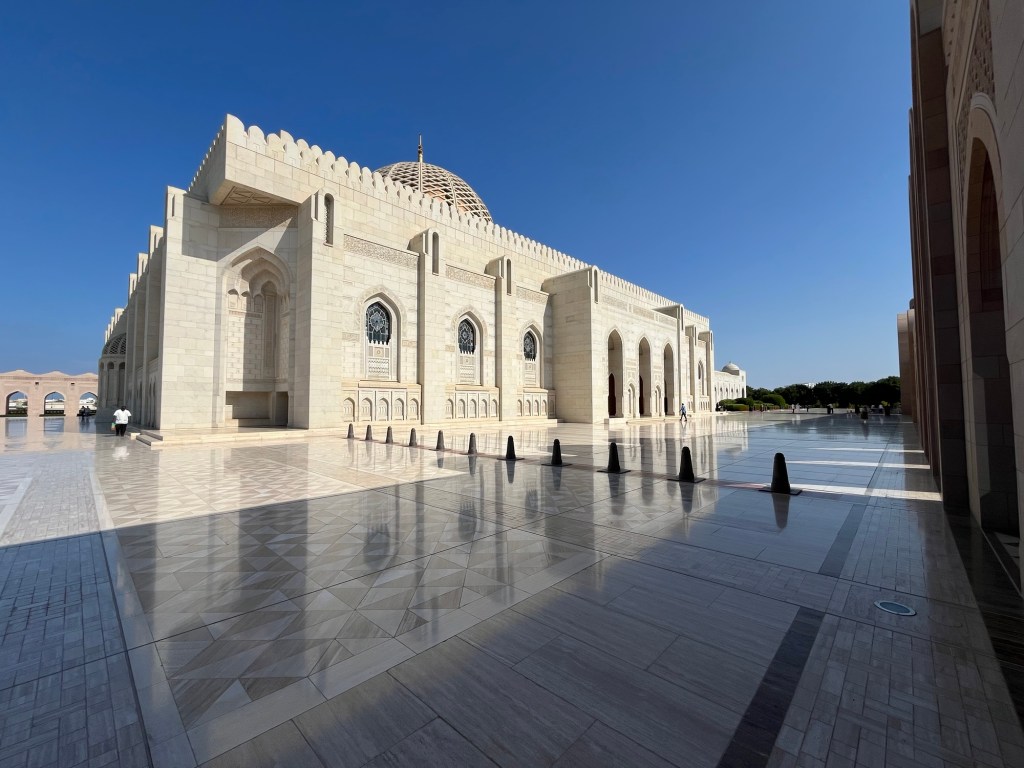 Tag 11 – Wir versprachen den Kindern: erst die Moschee, danach die Mall of Oman. Schließlich nähern sich unsere Tage im Oman dem Ende, morgen ist unser letzter Tag. Und eine Moschee müssen wir uns ja schließlich anschauen. Die große Sultan-Qabus Moschee ist eine der größten der Welt, der Swarovski Kronleuchter wiegt 8 t und die Stimmung ist relativ entspannt.. ganz so ernst wie in den Nachbarländern nimmt man es hier mit der Religion wohl nicht, auch Hindu-Tempel und christliche Kirchen sind im Land erlaubt. Mit seinen 300.000 t aus Indien, importierten Sandstein, dem weitläufigen Park mit englischem Rasen und seiner makellosen Sauberkeit passt diese Anlage zum Land. Ich habe die Schönheit der Anlage sehr genossen.