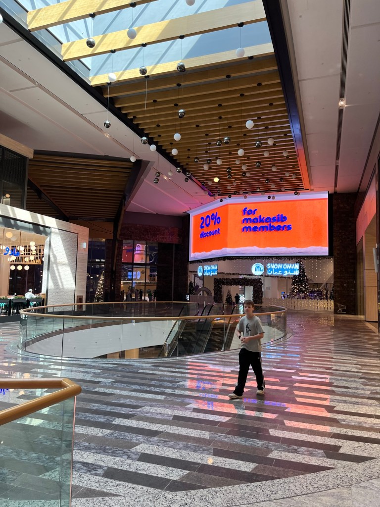 Day 11 – We promised the children: first the mosque, then the Mall of Oman. After all, our days in Oman are coming to an end, tomorrow is our last day. And we have to visit a mosque after all. The Great Sultan Qaboos Mosque is one of the largest in the world, the Swarovski chandelier weighs 8 tons and the atmosphere is relatively relaxed… people here probably don’t take religion quite as seriously as in neighbouring countries, Hindu temples and Christian churches are also permitted in the country. With its 300,000 tons of sandstone imported from India, the extensive park with English lawns and its immaculate cleanliness, this complex suits the country. I really enjoyed the beauty of the complex.