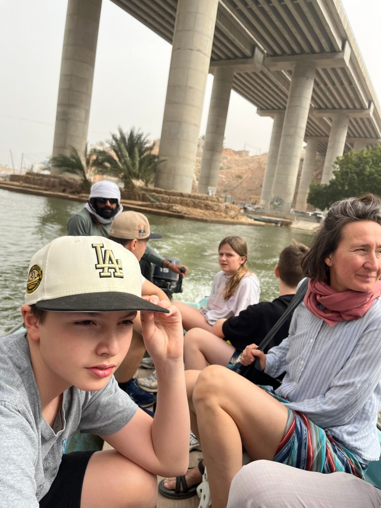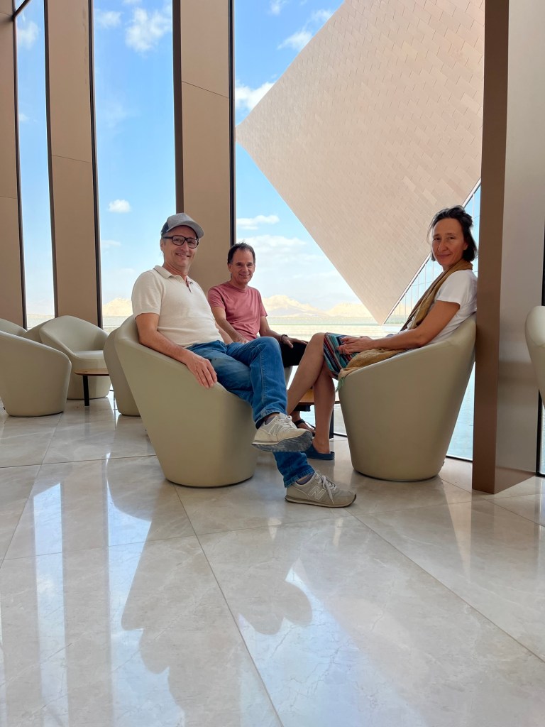 I actually wanted to report on the fort in Nizwa. Impressively restored, the most visited place in the country. The boys liked the three deaths at the entrance the most. „The King of Germany was there last year“ – said the ice cream seller to Andreas, pointing to the picture of Steinmeier. But somehow it all paled in the face of the museum we saw afterwards. At 300,000 m2, it is 50% larger than the Louvre. 3 billion euros would be an honorably conservative estimate for the cost. Opened in 2023, it simply blows you away in all dimensions. From the outside as well as the inside, the technology, the interactive objects. It looks like something out of a science fiction scene on an alien planet.