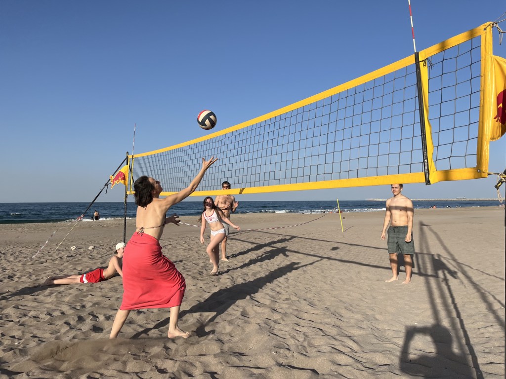 Then the sports programme: beach volleyball and training on the equipment. We had great fun. Inyan started to try out the birthday present of Rubik’s cubes.