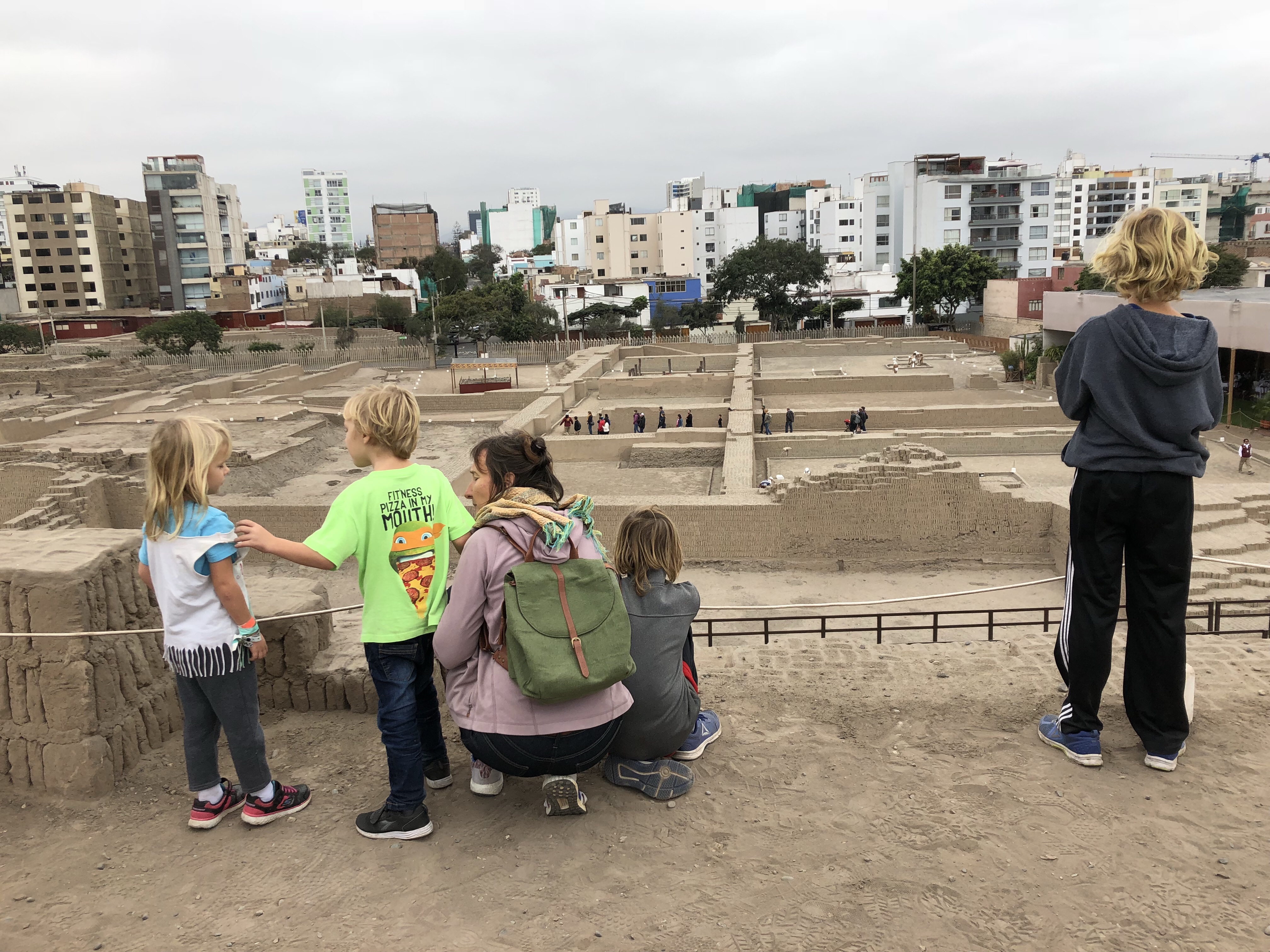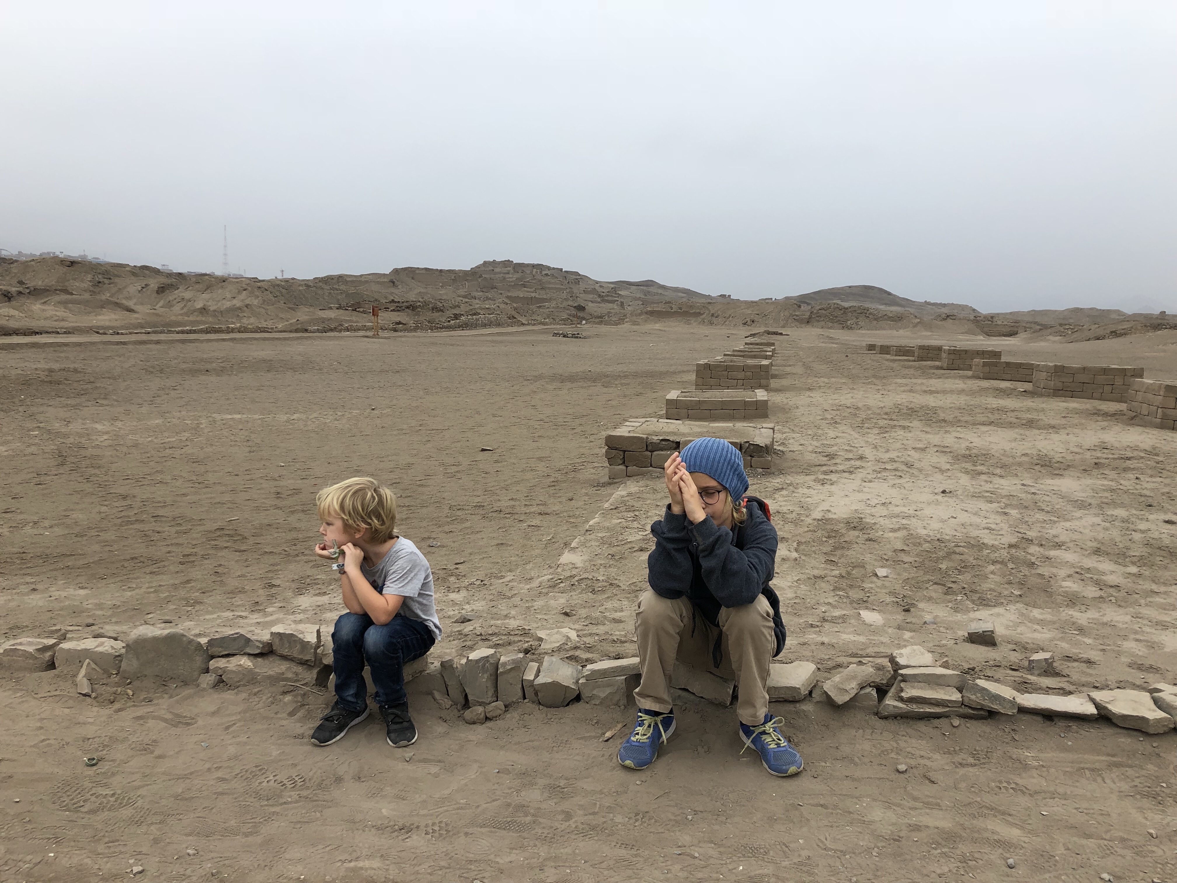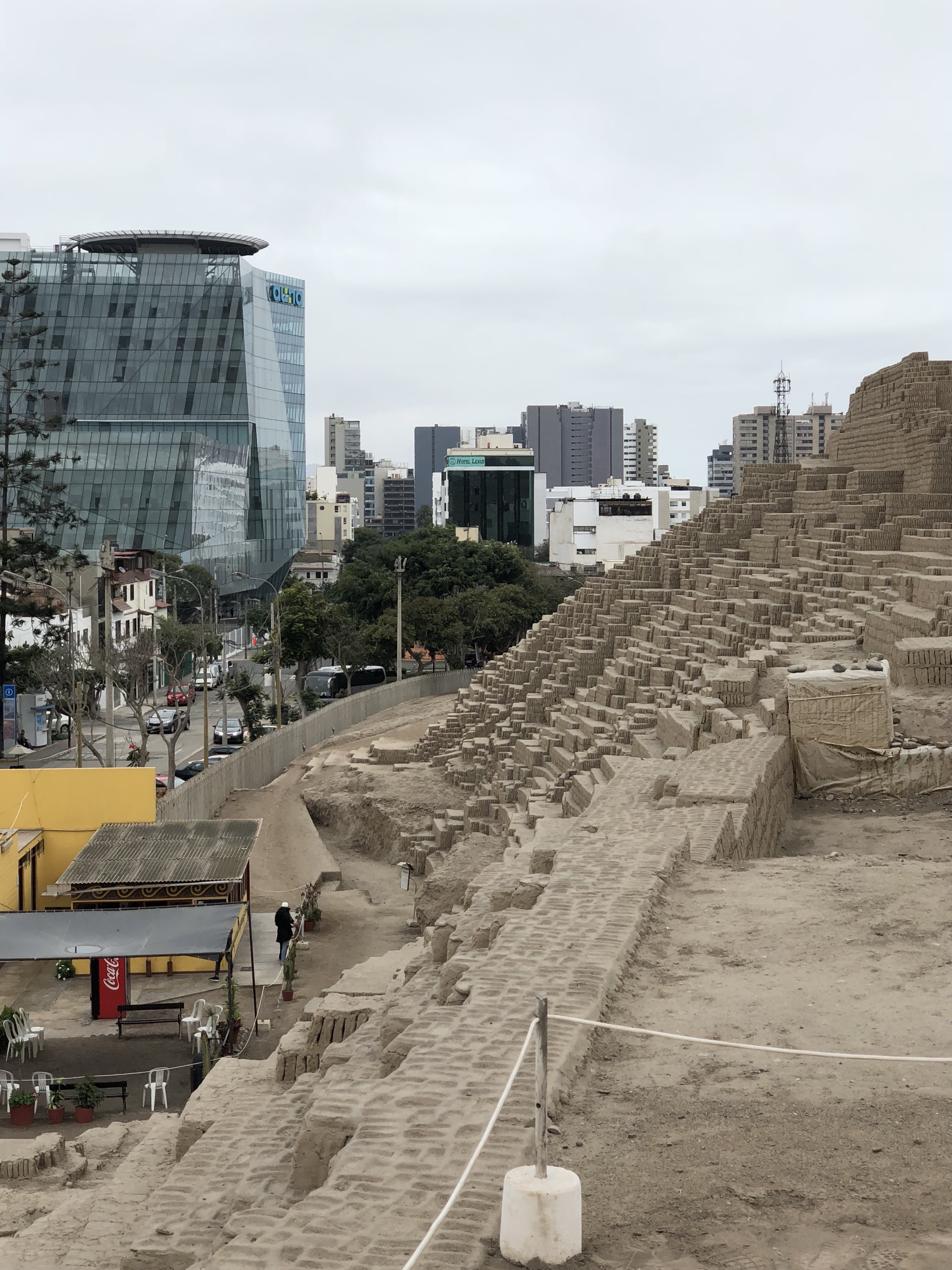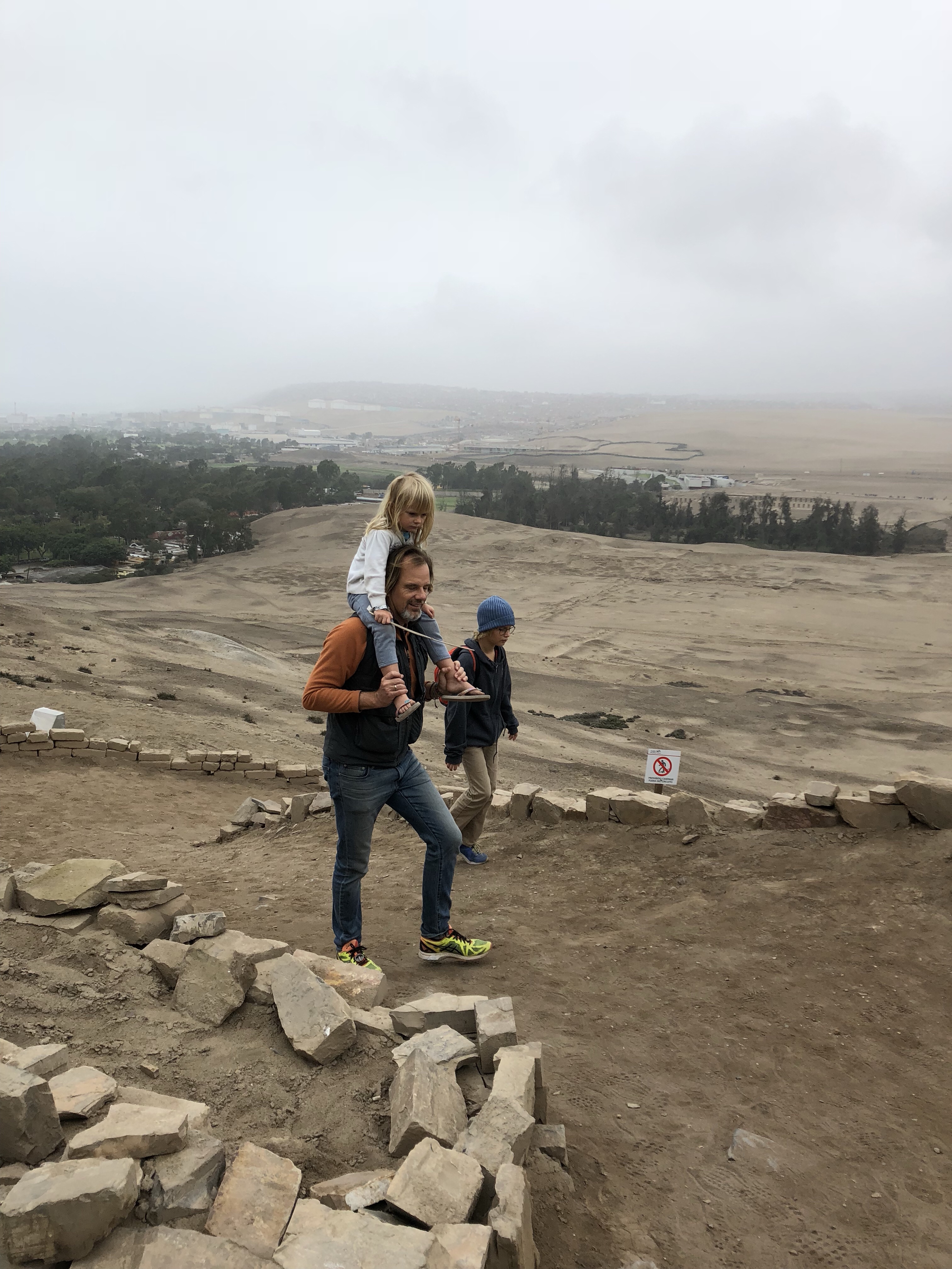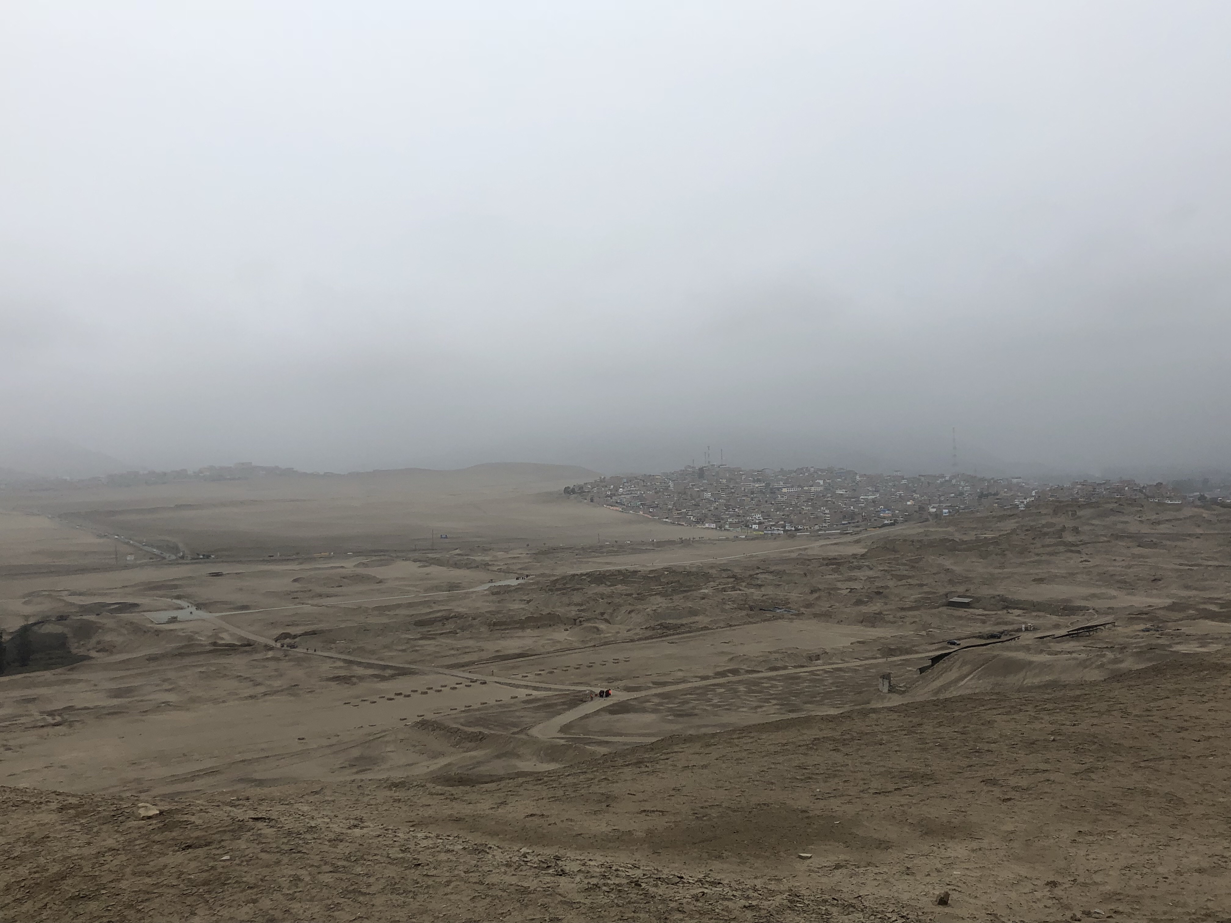 45 Kilometer sind wir schon morgens früh gefahren, fast zwei Stunden durch Lima Richtung Norden heraus, bis zum ersten Mal die Häuser an der Straße weichen und die Wüste sichtbar wird. Lima ist eine Megastadt mit über 10 Millionen Einwohnern. Es ist eine heftige Stadt, im Winter das ewige Grau und braun, ein überlastetes Straßennetz ohne Schienenverkehr und sehr wenig grün. Aber zugleich – es hat sich viel getan in den letzten 40 Jahren, man sieht praktisch keine Wellblechhütten mehr, es sind alles Häuser aus Ziegel, meist mehrstöckig, die sich bis zum Horizont in alle Richtungen erstrecken. Und in Miraflores ist es richtig modern, mit Glashochhäusern und schicken Restaurants.