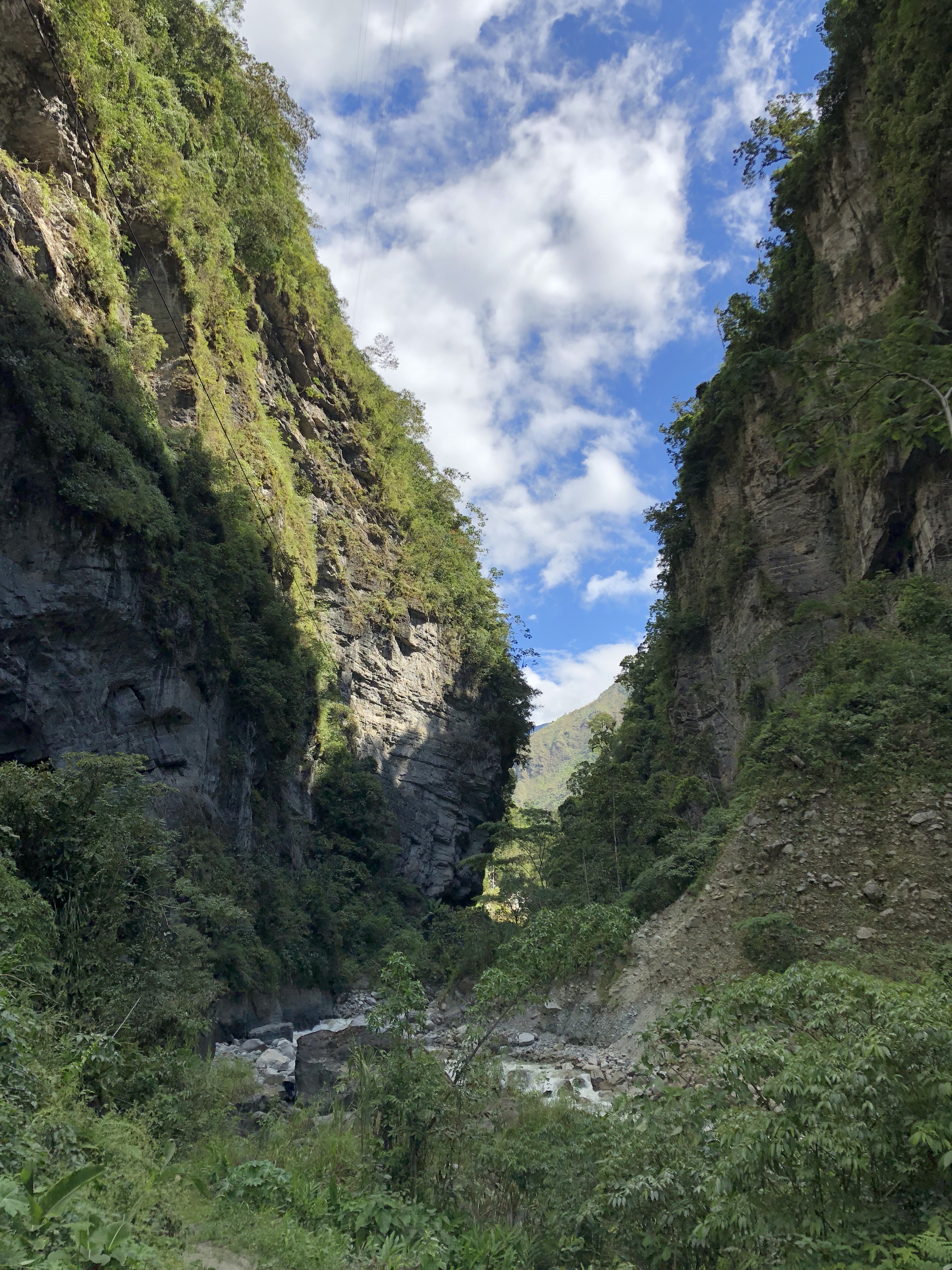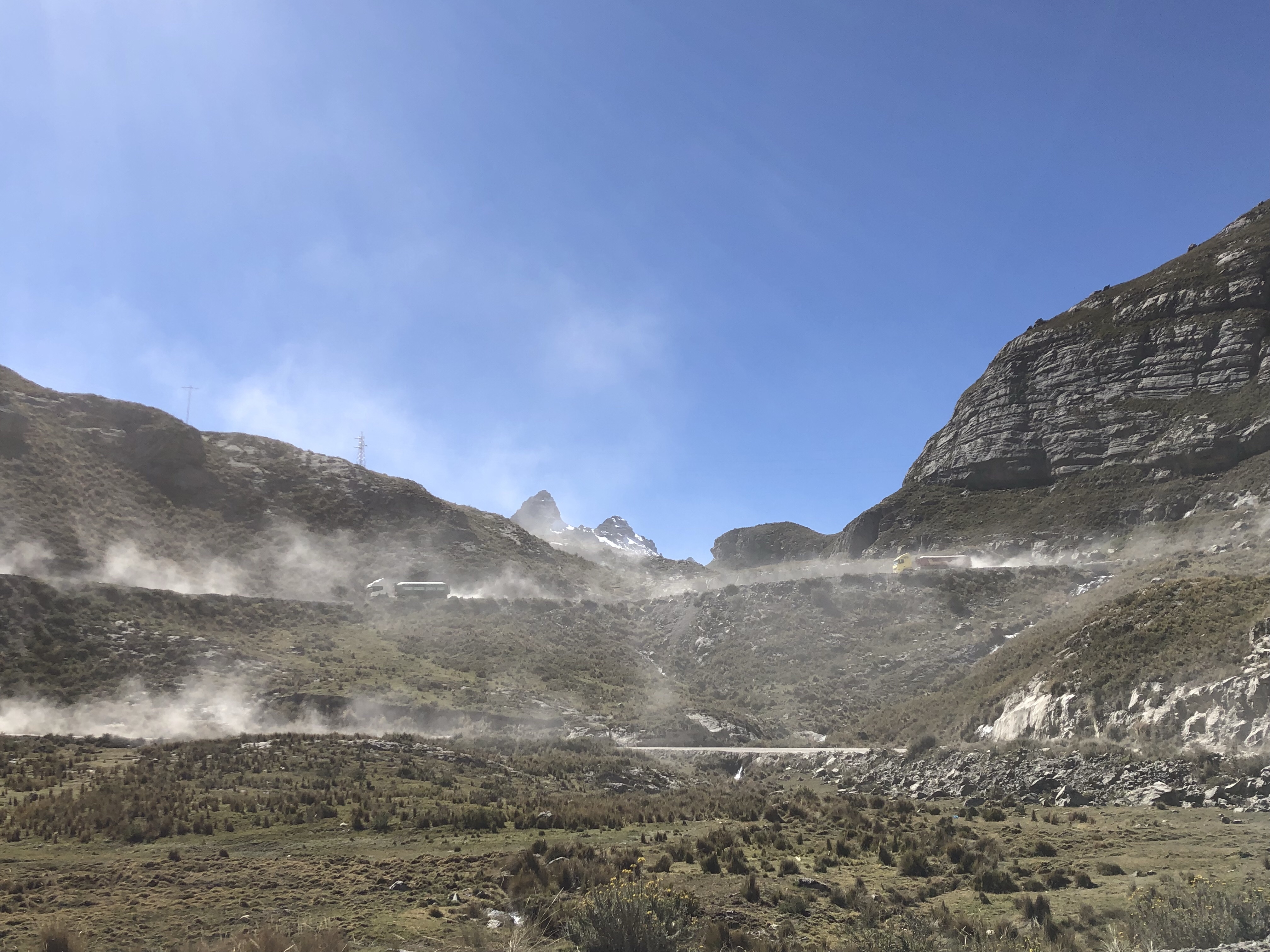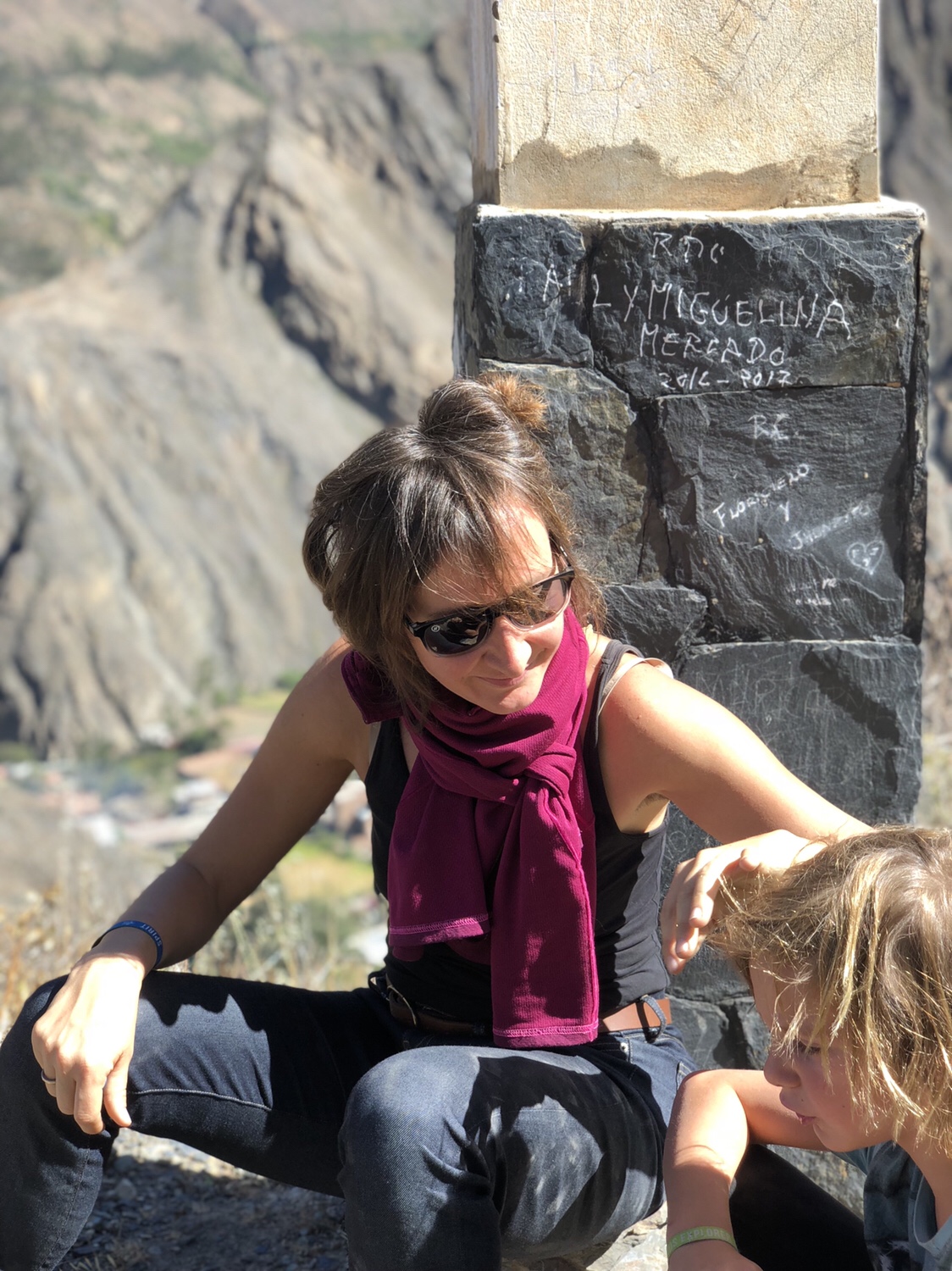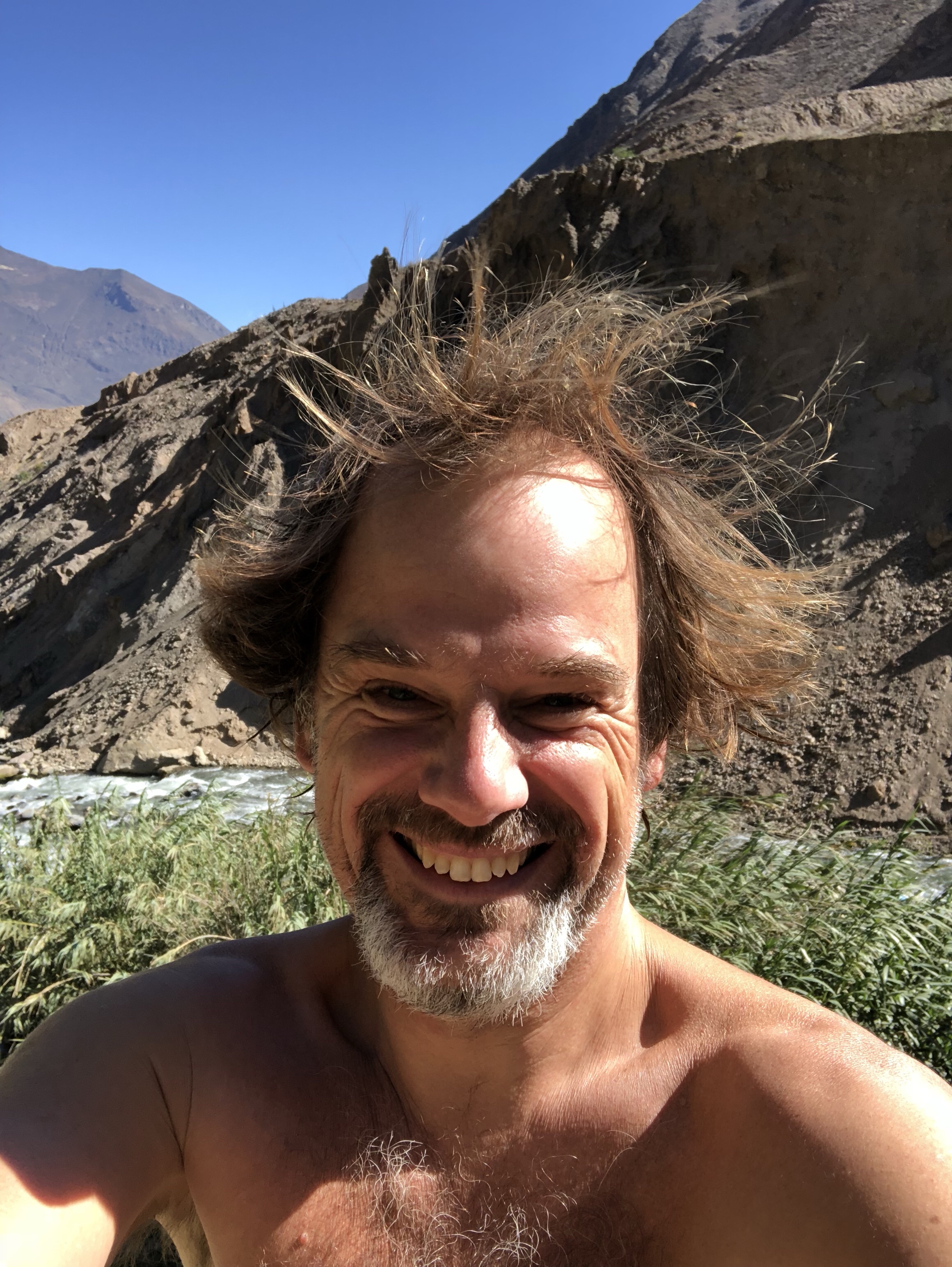 Ich sitze in der Sonne in der Bergluft, man hört den Bach rauschen. Ich bin sehr glücklich, wieder zurück in meinem Peru zu sein. Es ist so herrlich, von der nebligen Wüste nach 120 Kilometer wieder in die Sonne zu kommen. Alle im Auto waren begeistert, als die Sonne herauskam, das Tal begann und in der Mitte der Fluss rauschte, links und rechts von Maisfeldern eingesäumt. Immer karger und felsiger wird die Landschaft. Nadine findet eine super Musik, Christian Löffler, und die Jungs entdecken dass man das Dach vom Auto aufmachen kann und sie stellen sich in den Fahrtwind. Herrlich ist es, wunderbar. Ein tiefes Glücksgefühl durchströmt mich, mit meiner Liebsten und meinen Kindern durch Peru zu reisen. Mit dem Auto, es ist ein toller Wagen, ein SUV mit Vierradantrieb. Man kann damit wunderbar die Geröllabschnitte fahren, wo die Straße von den letzten Erdrutschen nur einspurig ist.