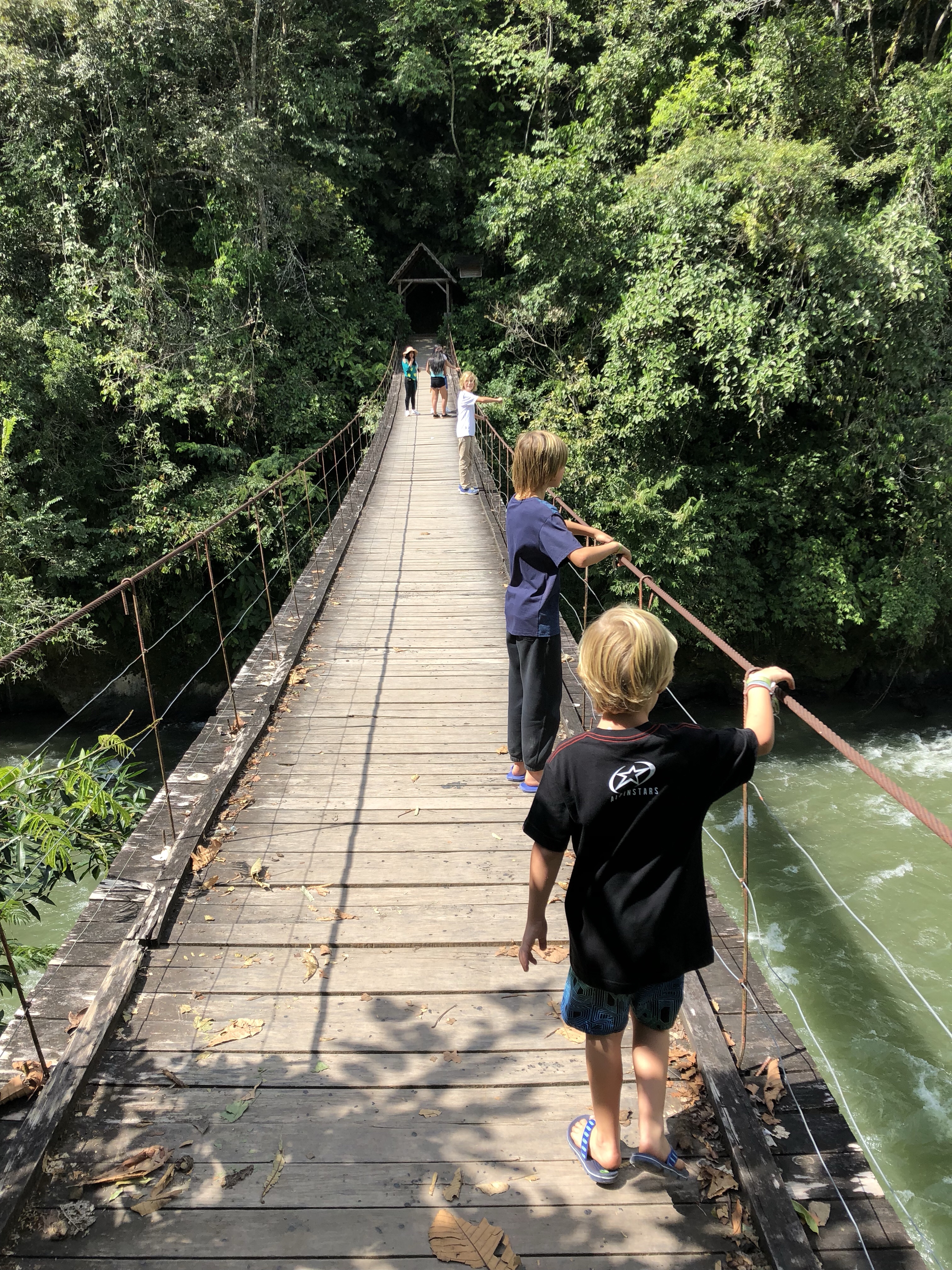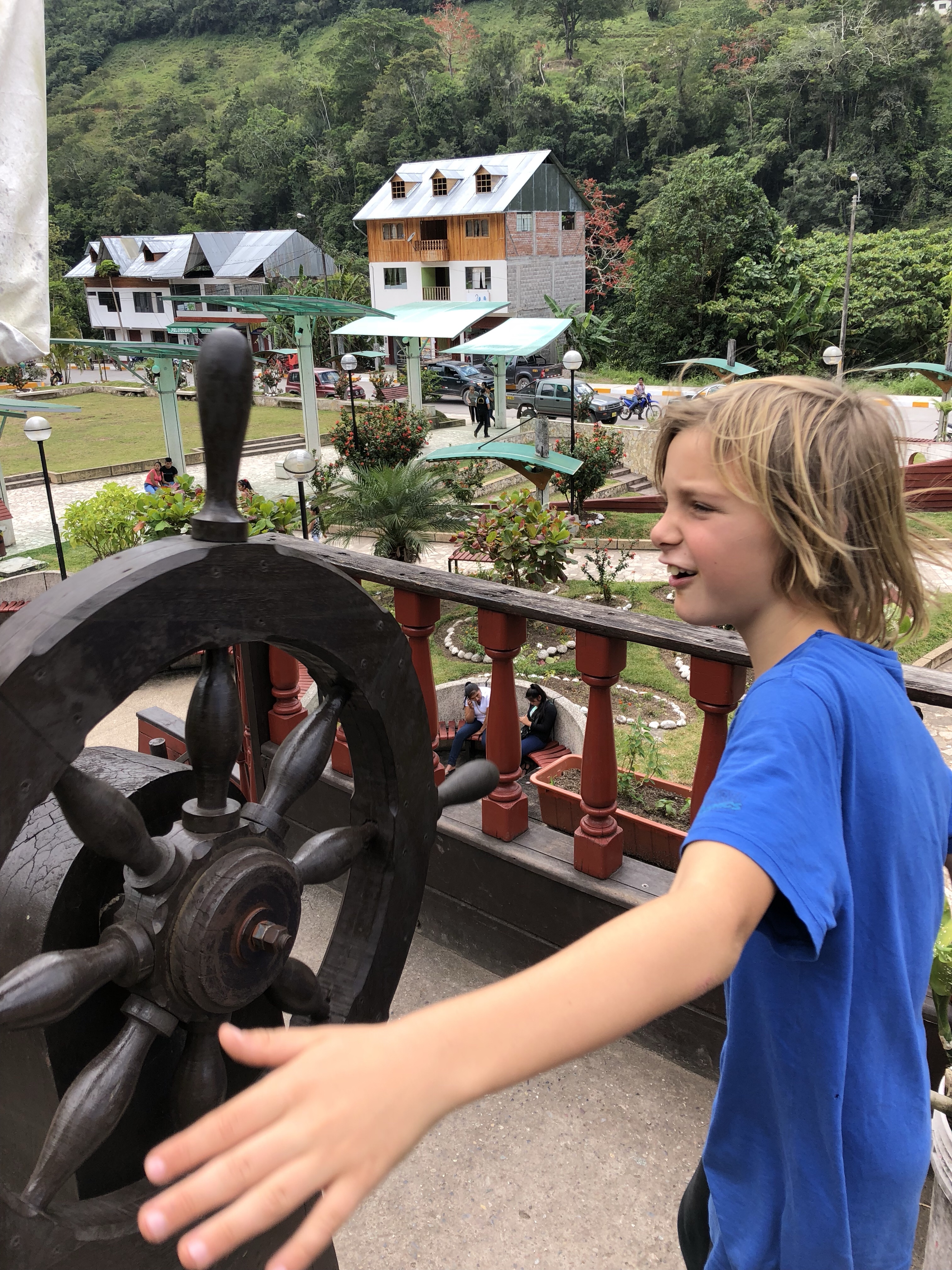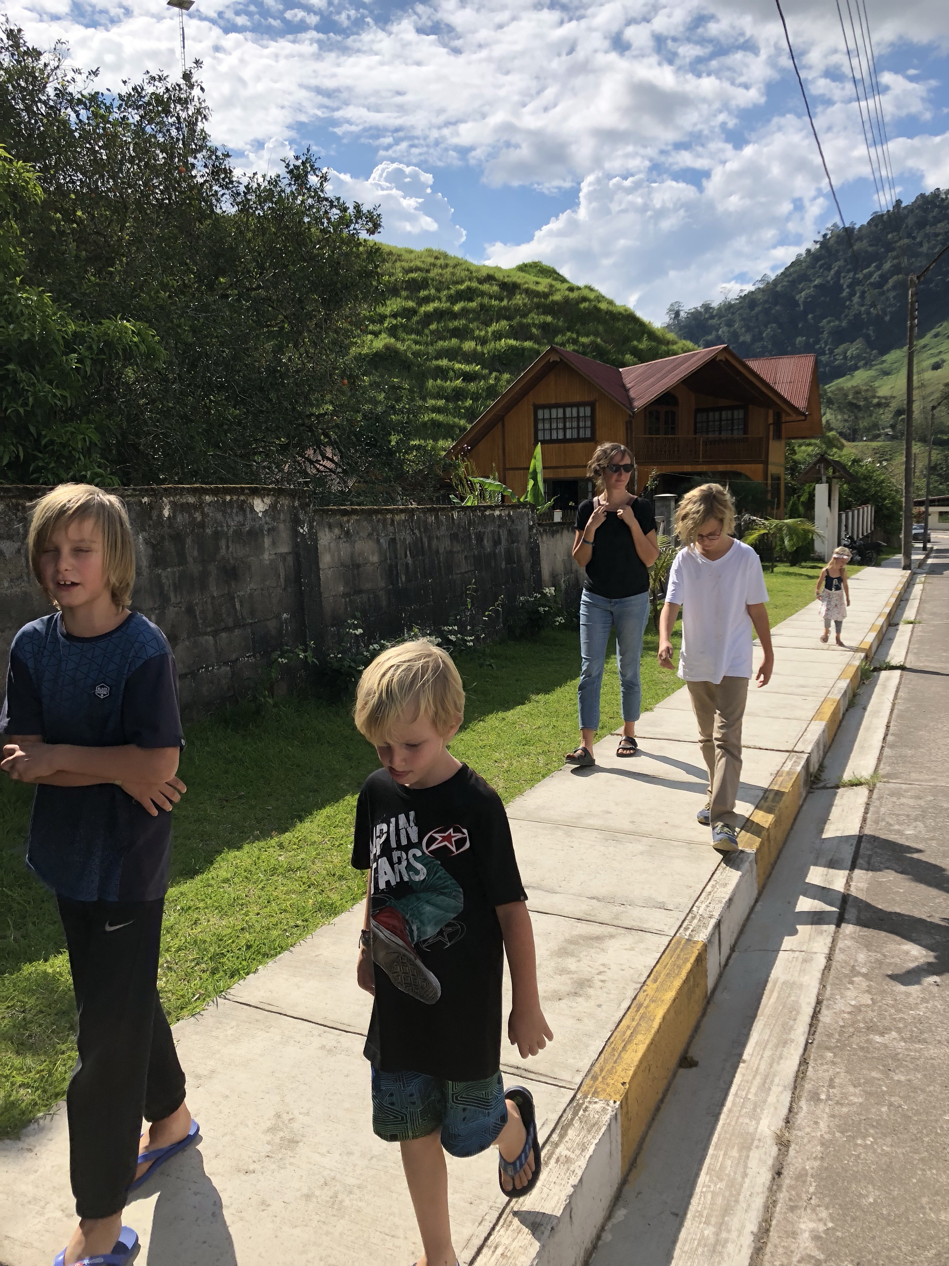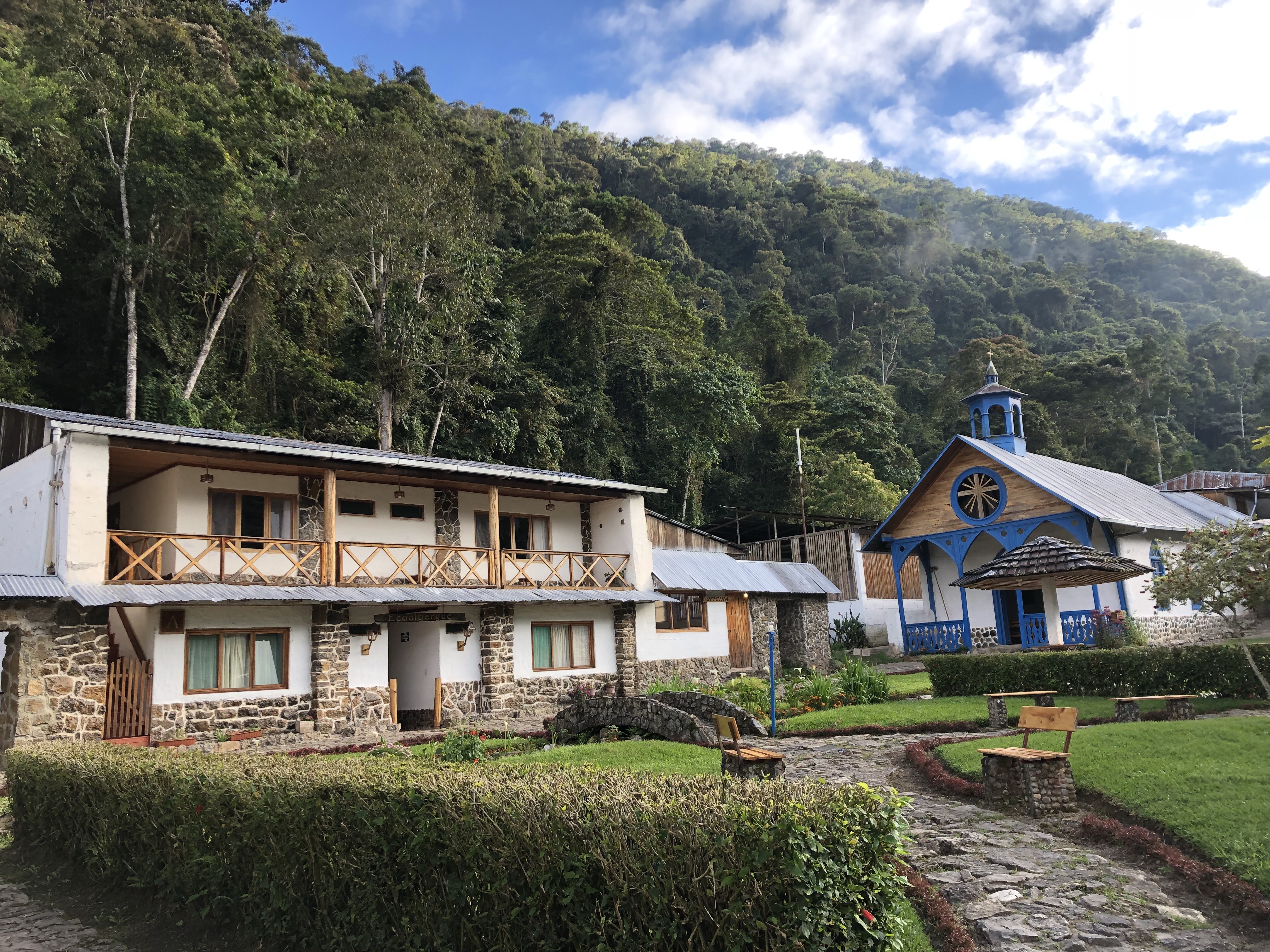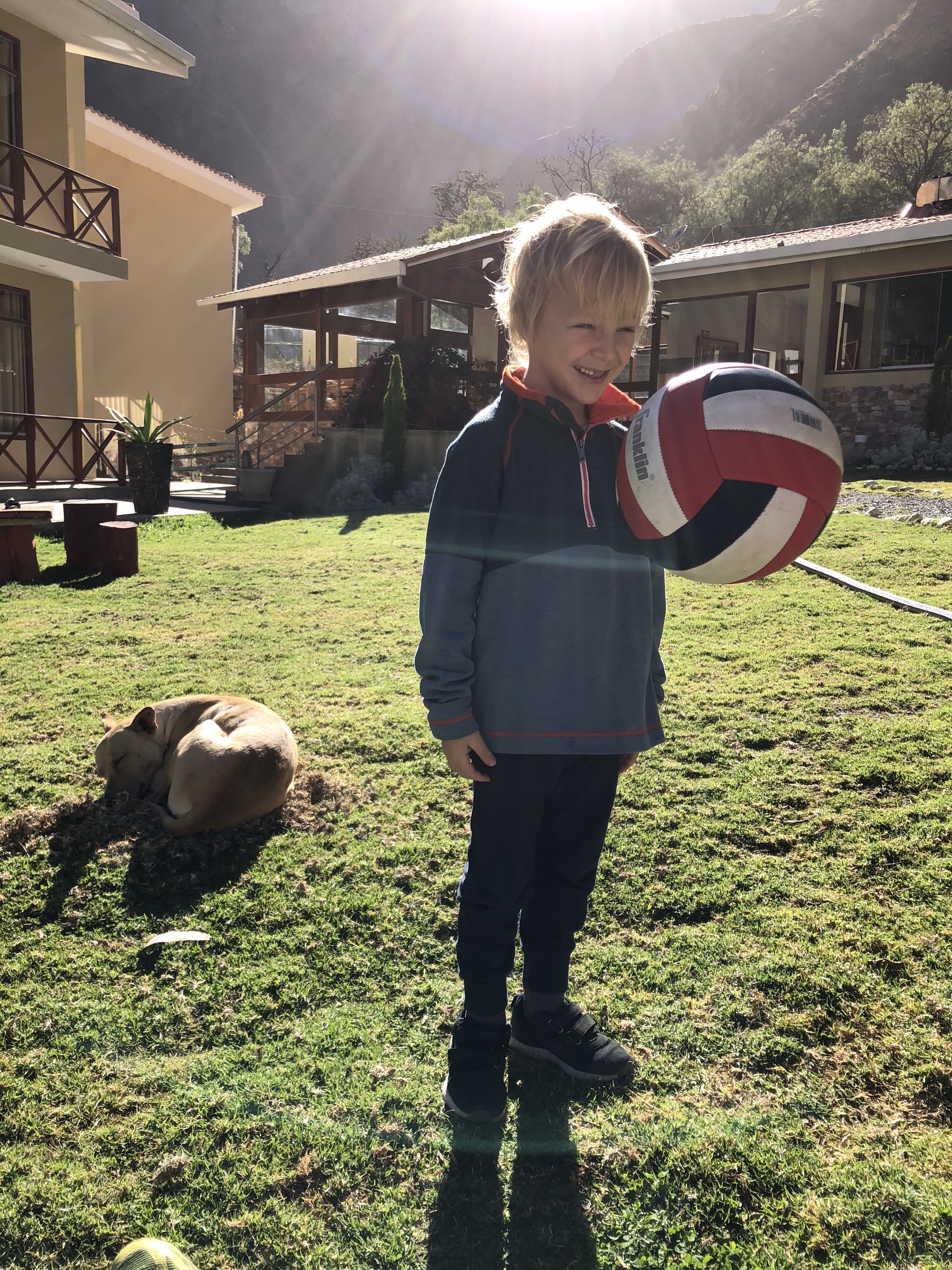 Und jetzt sind wir in einem grünen Idyll gelandet, ein Hotel der Dorf-Kooperative von Ayarpongo. Und die Jungs sind wieder glücklich, es ging immer auf und ab in der Stimmung. War es unten im Tal noch das zweitbeste Land auf der Welt nach Hawaii, sind nachher alle erstaunt und bald erschöpft dass es in der Sonne doch heiß ist. Hieß es doch gestern Abend noch, wir müssten uns auf Eiseskälte einstellen. Aber wenn es Nachts 0 Grad werden kann, heißt das noch lange nicht das es in der Sonne nicht mittags heiß wird. Und hier in Peru steht die Sonne auch im Winter praktisch senkrecht.