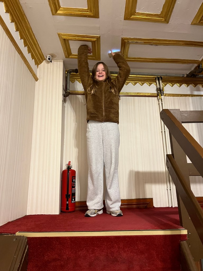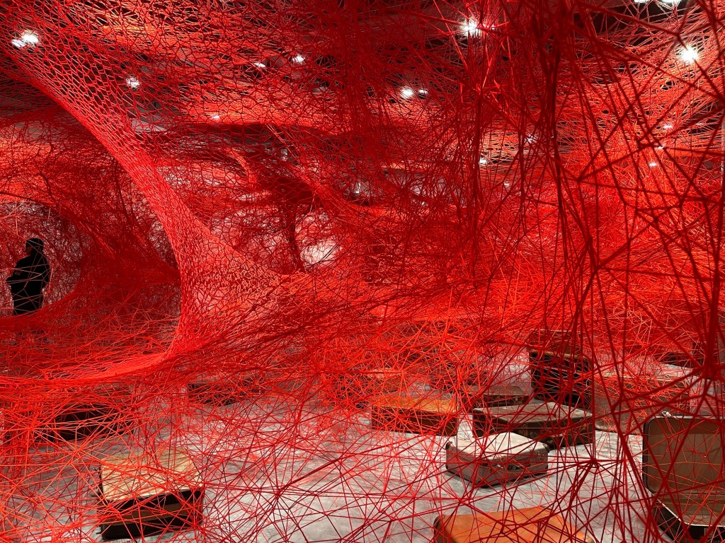 Es ist ein Genuss, einmal in Ruhe gemeinsam moderne Kunst zu genießen, besonders beeindruckt mich eine Installation aus Fäden der japanischen Künstlerin Chiaru Chiota, die in Berlin lebt. Morgens haben wir das erste Mal alle unser Hab und Gut wieder in die Koffer gepackt, die Lichterkette aus dem Schlafzimmer der Kinder wieder aufgerollt und das Gepäck die kleine Wendeltreppe herunter getragen. Dort lassen wir es an der Rezeption stehen.