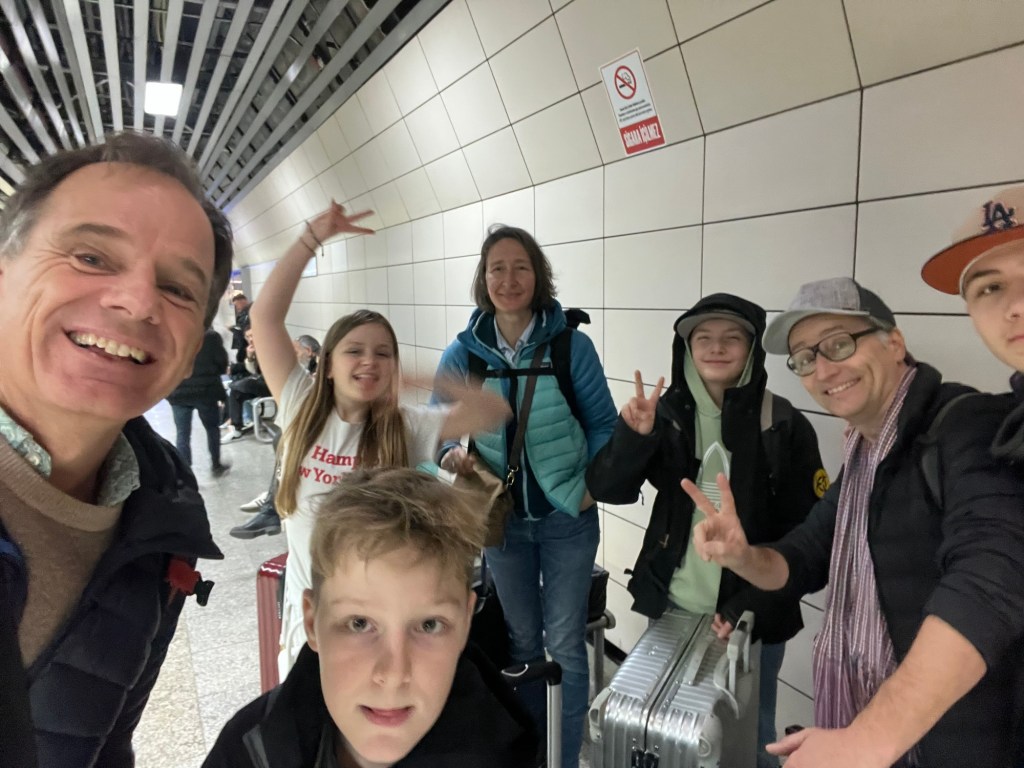 At our meeting point in Gül Ahnepark, we all get together again, collect our luggage and make our way to the airport by metro. It works surprisingly well, you can usually just buy the ticket with your credit card at the turnstile, and we change again and arrive back at Sabina Göttingen Airport after a one-hour journey, as it is practically laid out and full of passengers. We also need 3 hours until departure and are now with a last noodle soup for the kids and speculoos from my mom. An avocado and sesame. Ringle strengthened at boarding for our night flight of just under 5 hours with Pegasus to Muscat – no frills. Oman can come – Istanbul was a great start – it goes on!