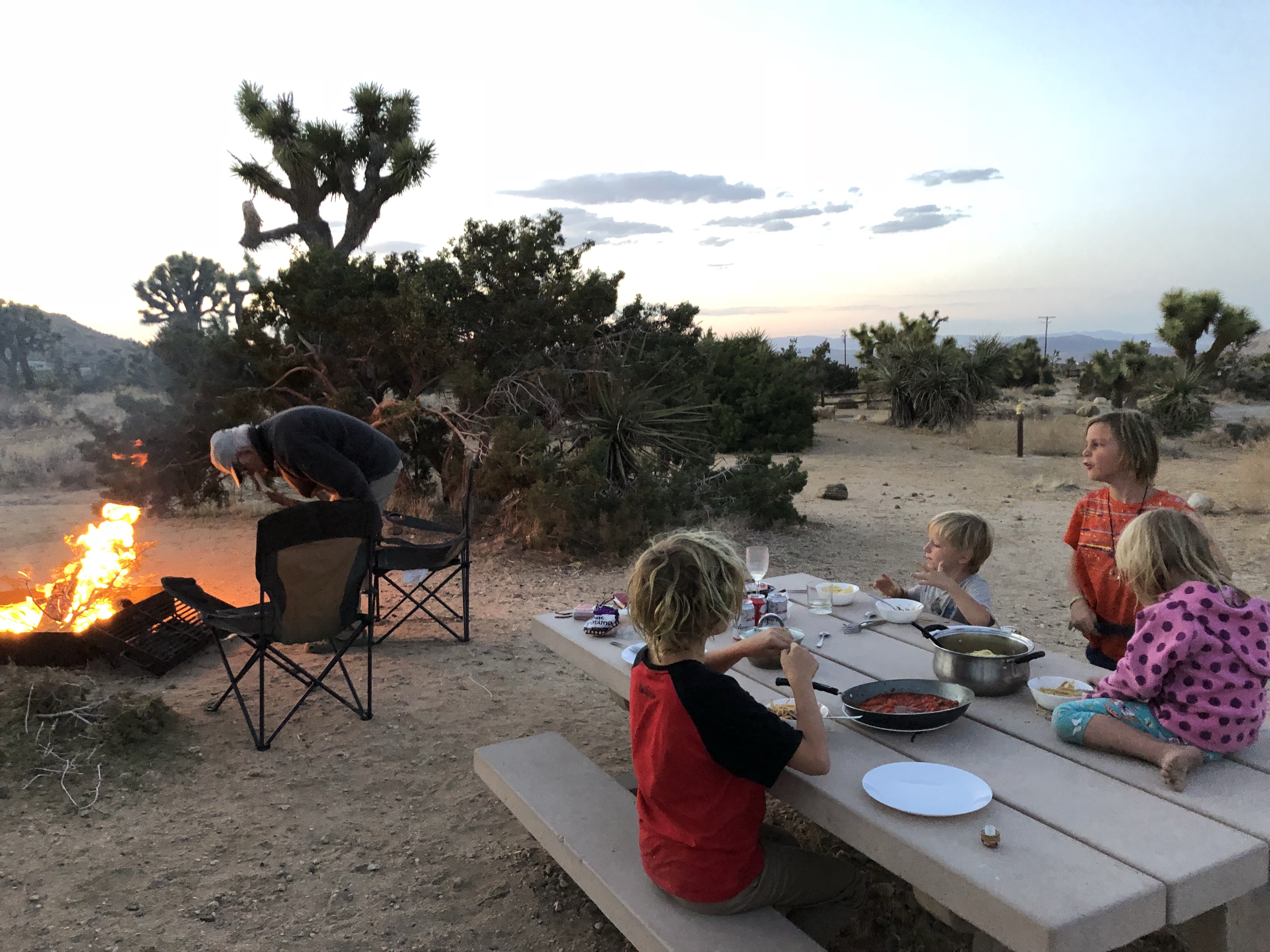 Danach weiter um Joshua Tree Park. Trotz Feiertag ließ uns unser Glück nicht im Stich und wir fanden auch hier den letzten Platz in herrlicher Natur. Jetzt ist es wieder Wüste, die Kinder sind an Namibia erinnert und es ist heiß. Wir saßen noch lange abends am Lagefeuer.