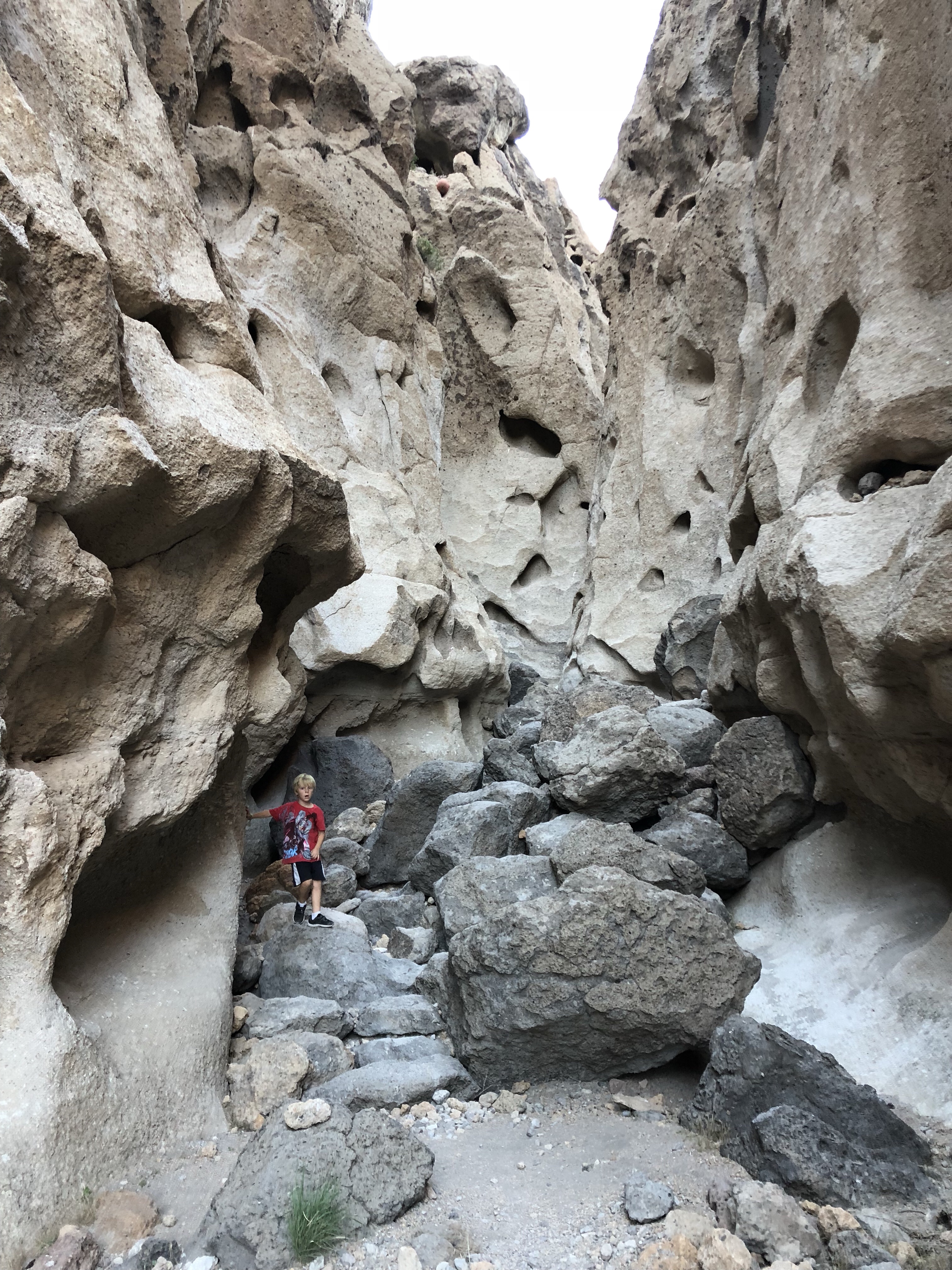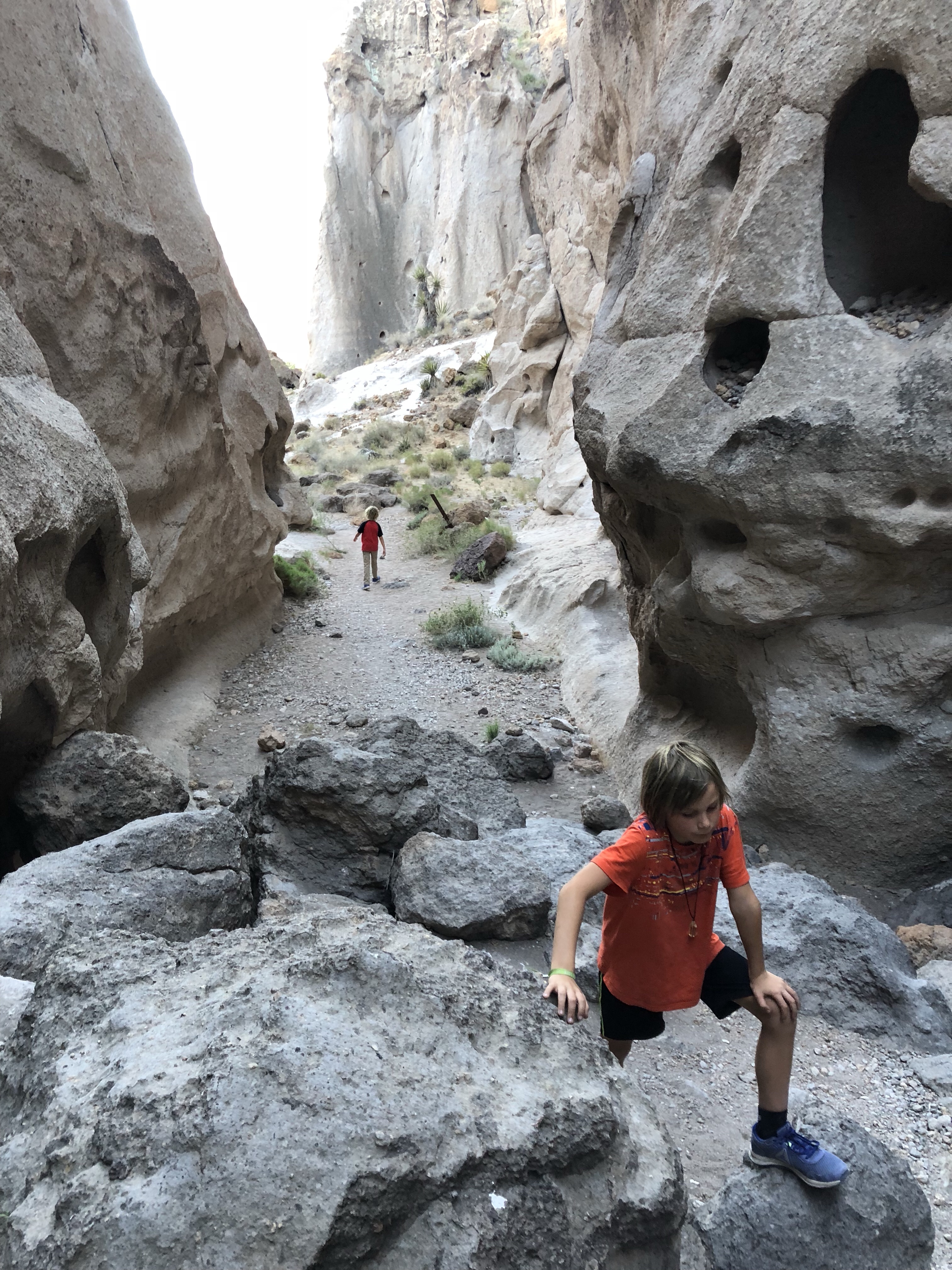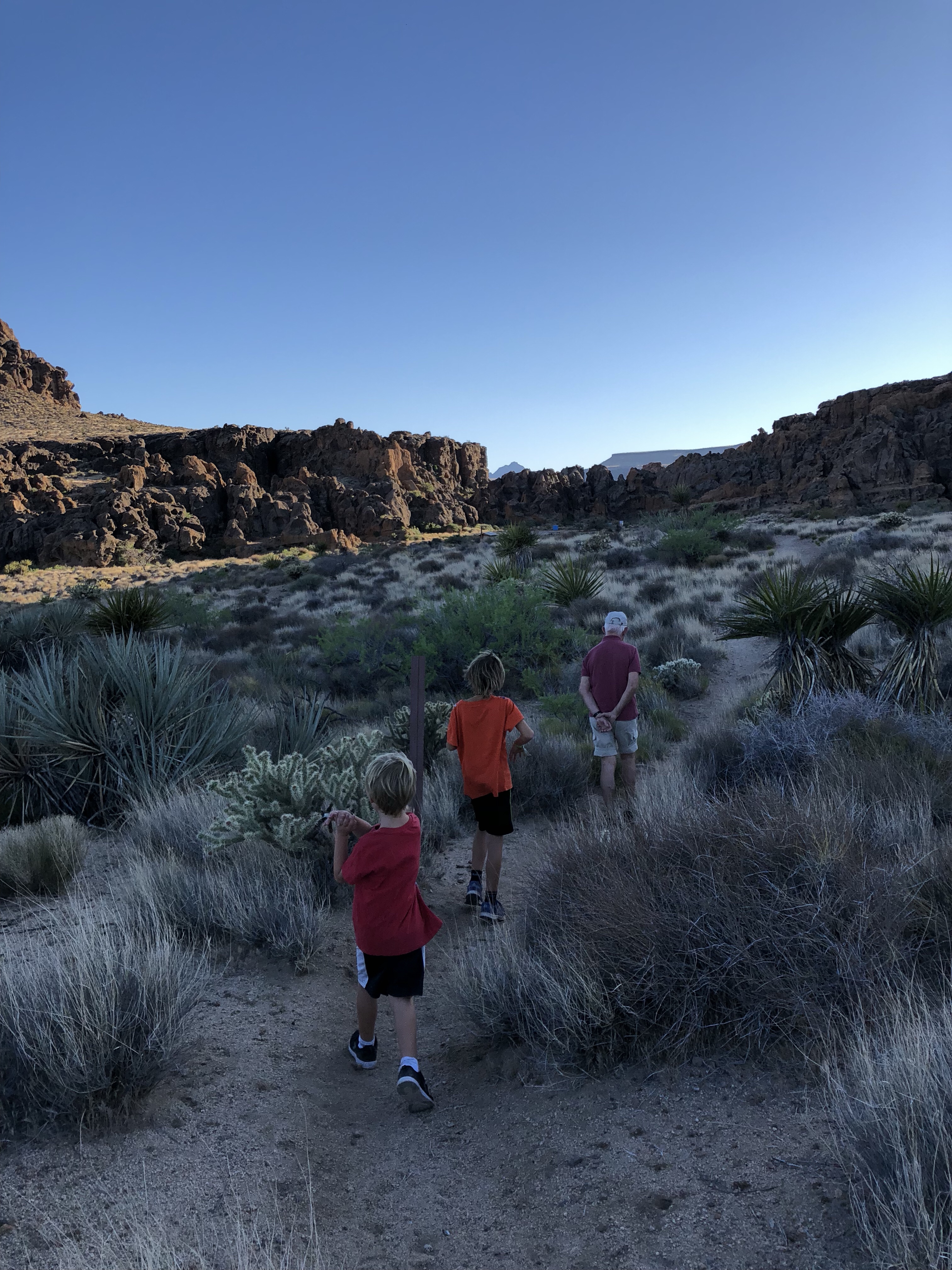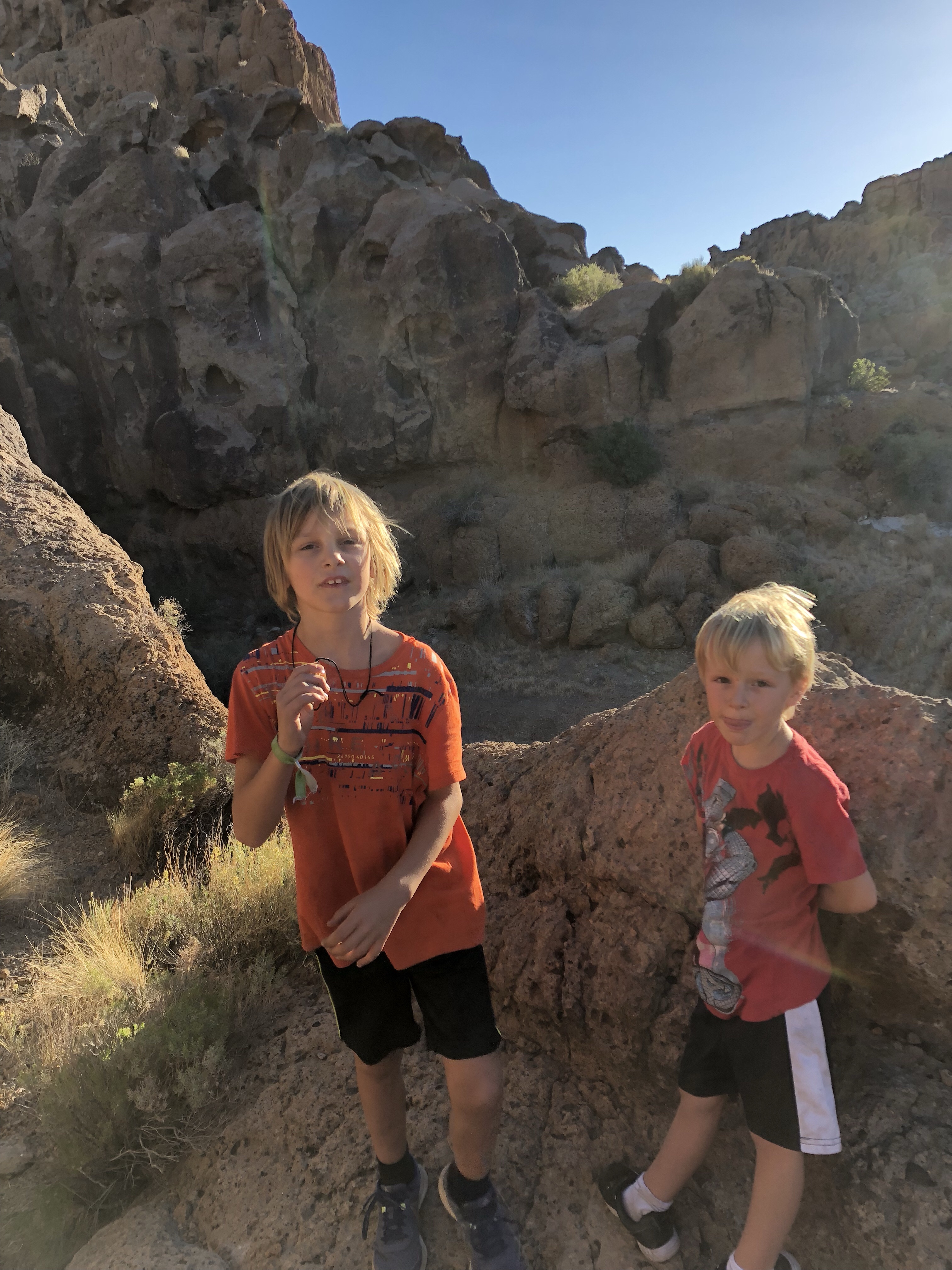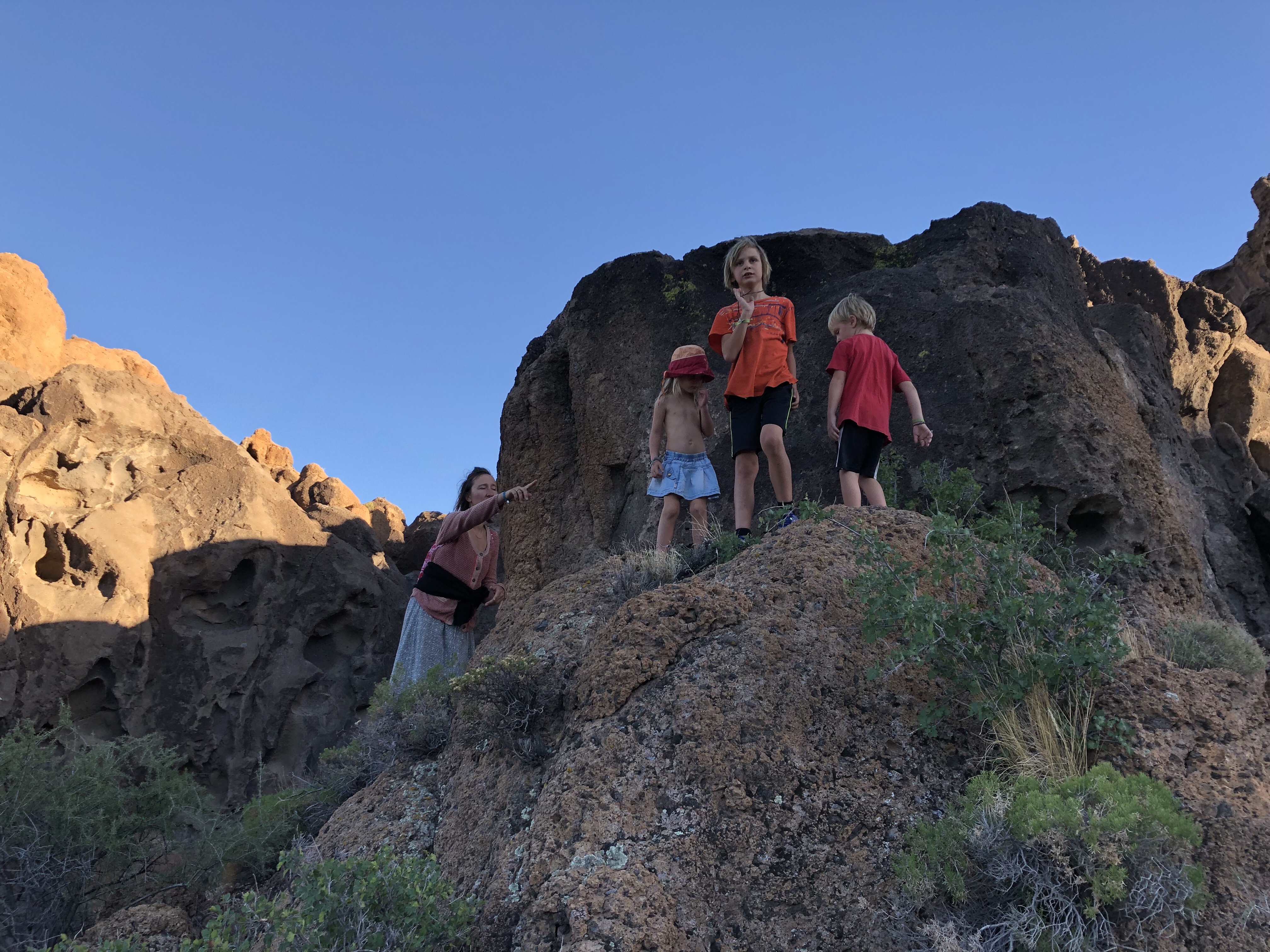 Mit meinen Jungs mache ich zur Dämmerung eine Wanderung rund um die beiden Anhöhen durch markante Felslandschaften mit großen Löchern. Es gibt Kletterabschnitte mit Ringen. Die Jungs machen es gut. Und ich liebe es nach der Fahrt mich noch zu bewegen.