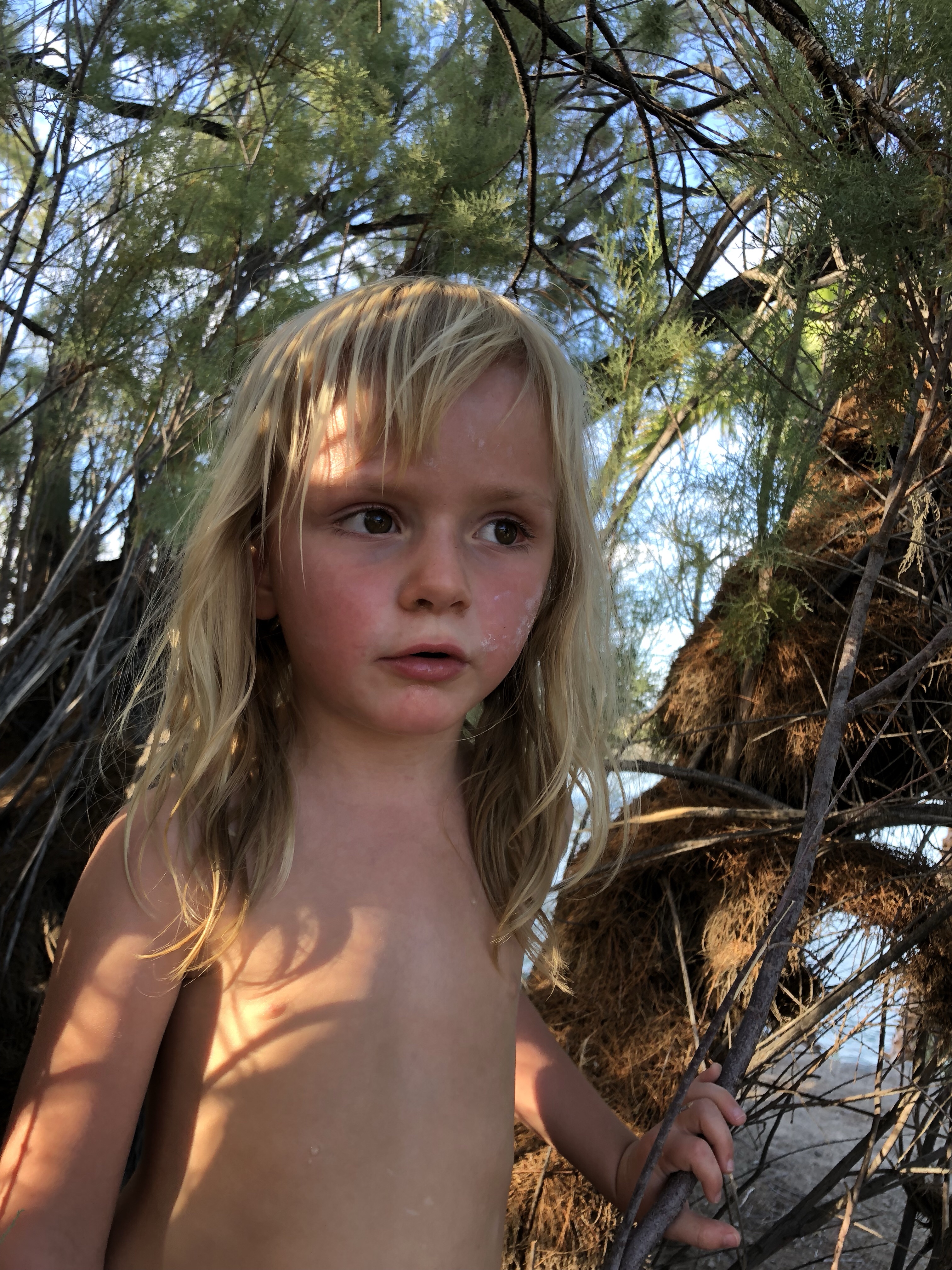 Unsere Kinder, die von der Security eingefangen werden weil sie allein zum Hotelzimmer laufen wollen oder Tara nur mit Badehose baden will.