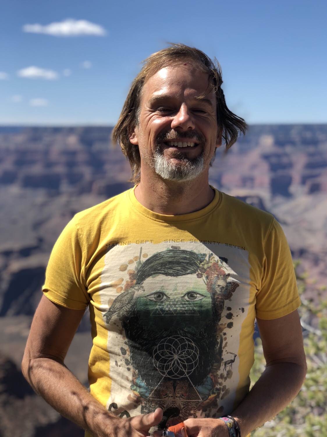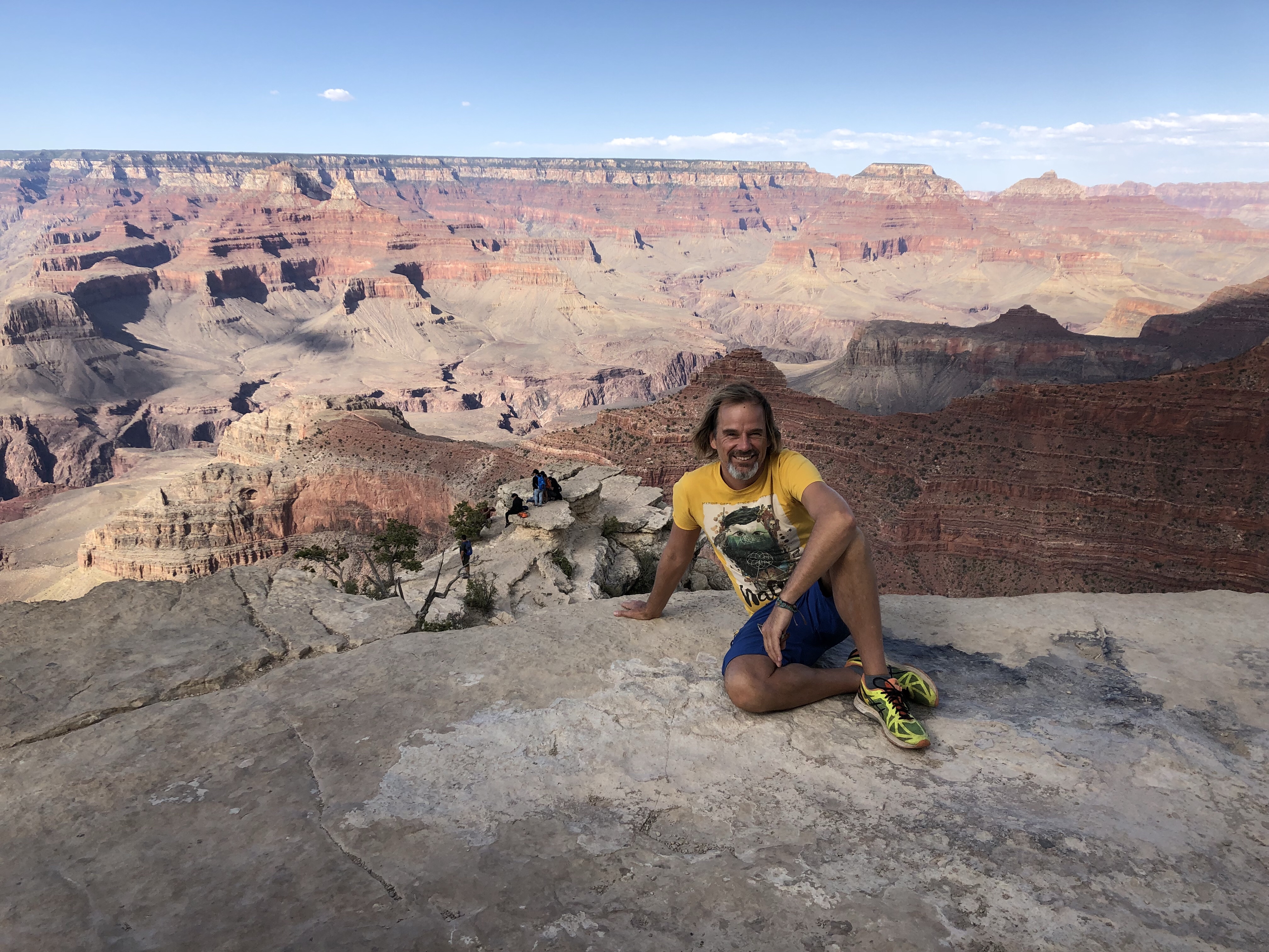 Neben uns steht ein junger Mann mit seinem Mercedes Sprinter, für amerikanische Verhältnisse ein Mini-Wohnmobil. Er erzählt, dass er vorgestern den Grand Canyon in 10 Stunden durchquert hat, vom South Rim zum North Rim, 24 Meilen. Und 1500 Höhenmeter.