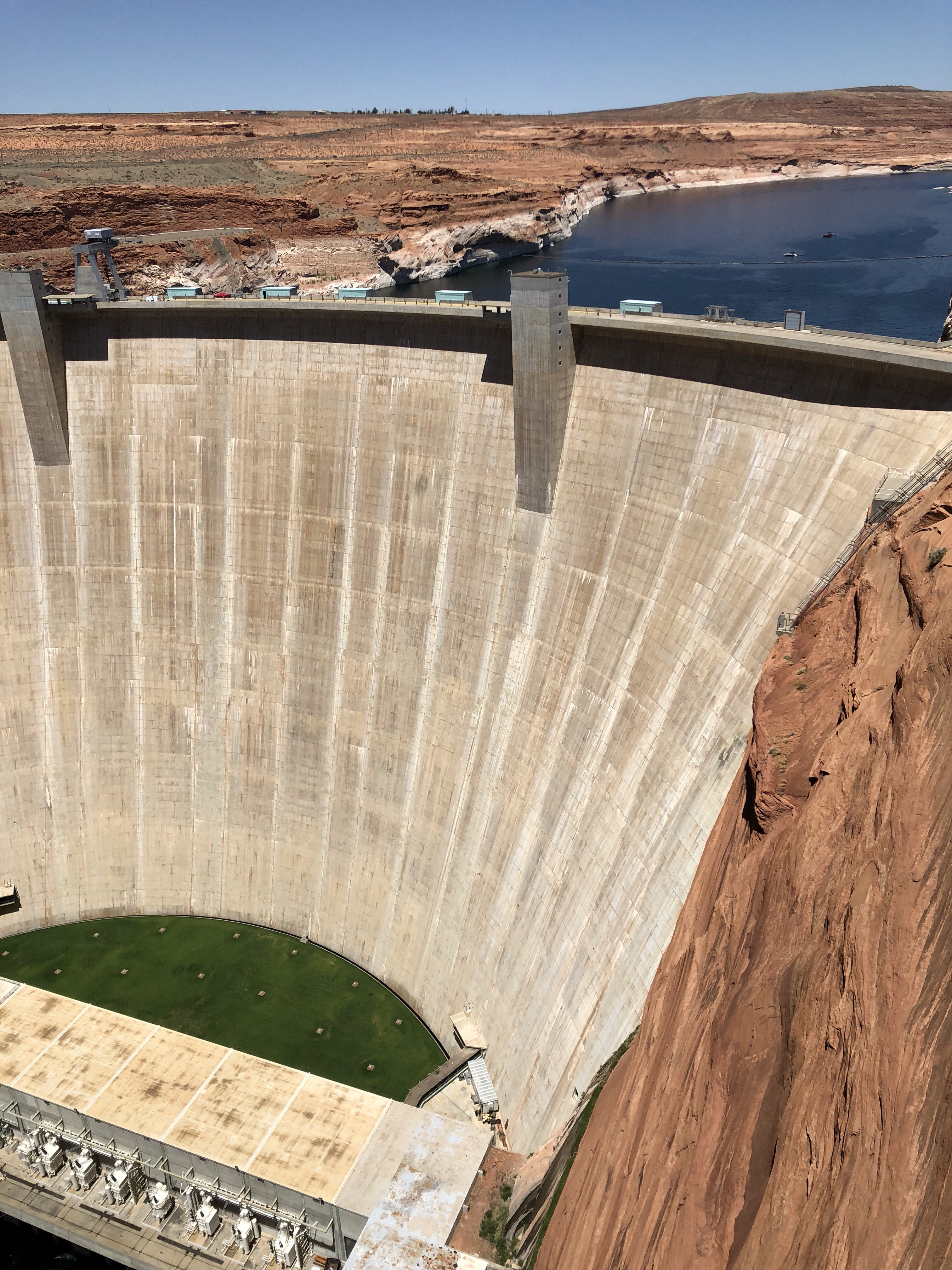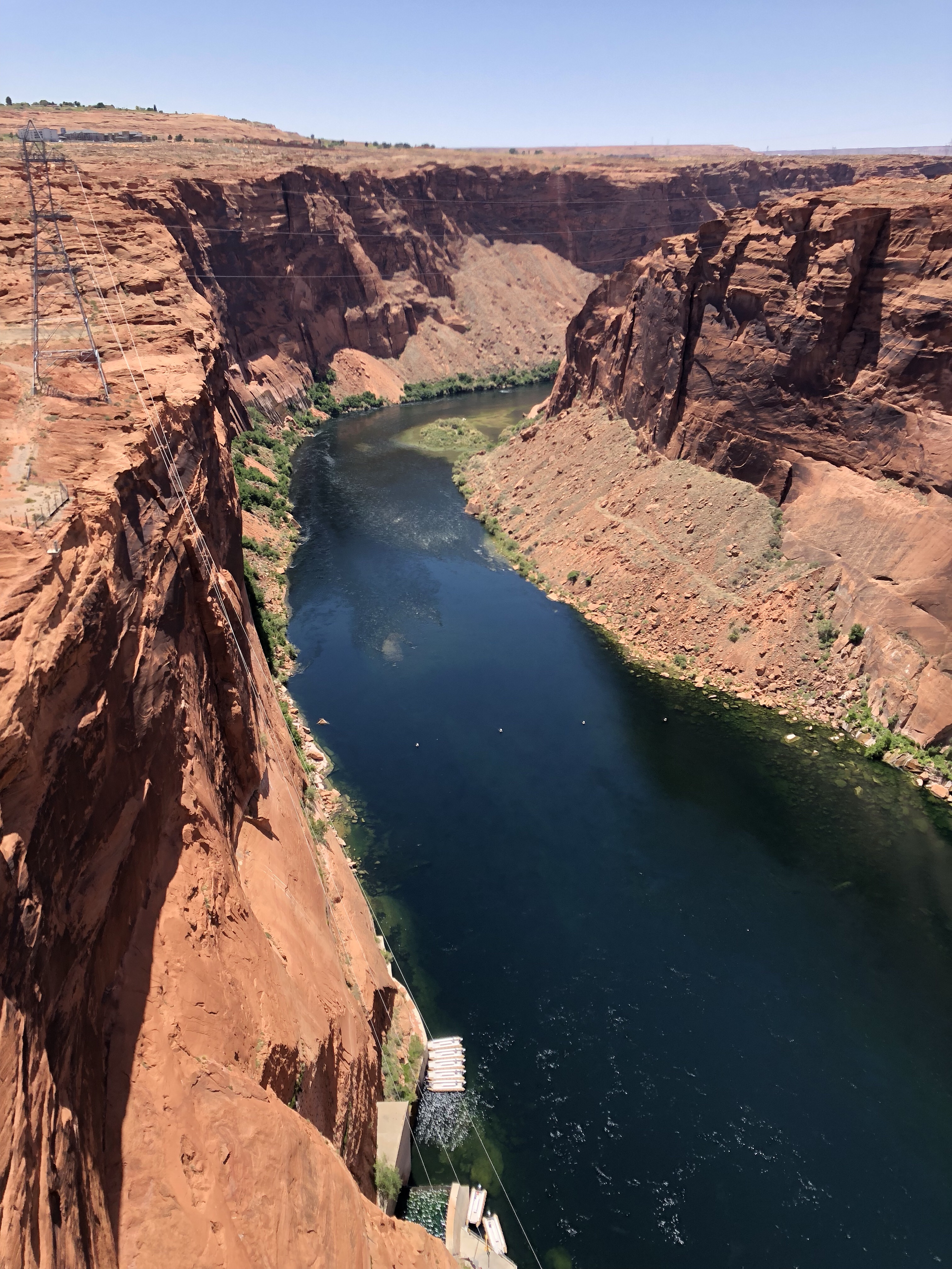 Ein traumhafter Ort am Wasser. Der Colorado ist kühl, super klar und hat eine türkisblaue Farbe. Und es gibt kleine Sandstrände in Buchten. Dazwischen kann man mit dem Wohnwagen direkt ans Wasser vorfahren. Es gibt Strom, Wasser und Abwasser und so kann man die Klimaanlage betreiben, die man auch braucht bei der Temperatur von um die 40 Grad. Aber es fühlt sich nicht so heiß an, da es super trocken ist, man schwitzt überhaupt nicht und es weht ein erfrischender Wind.
