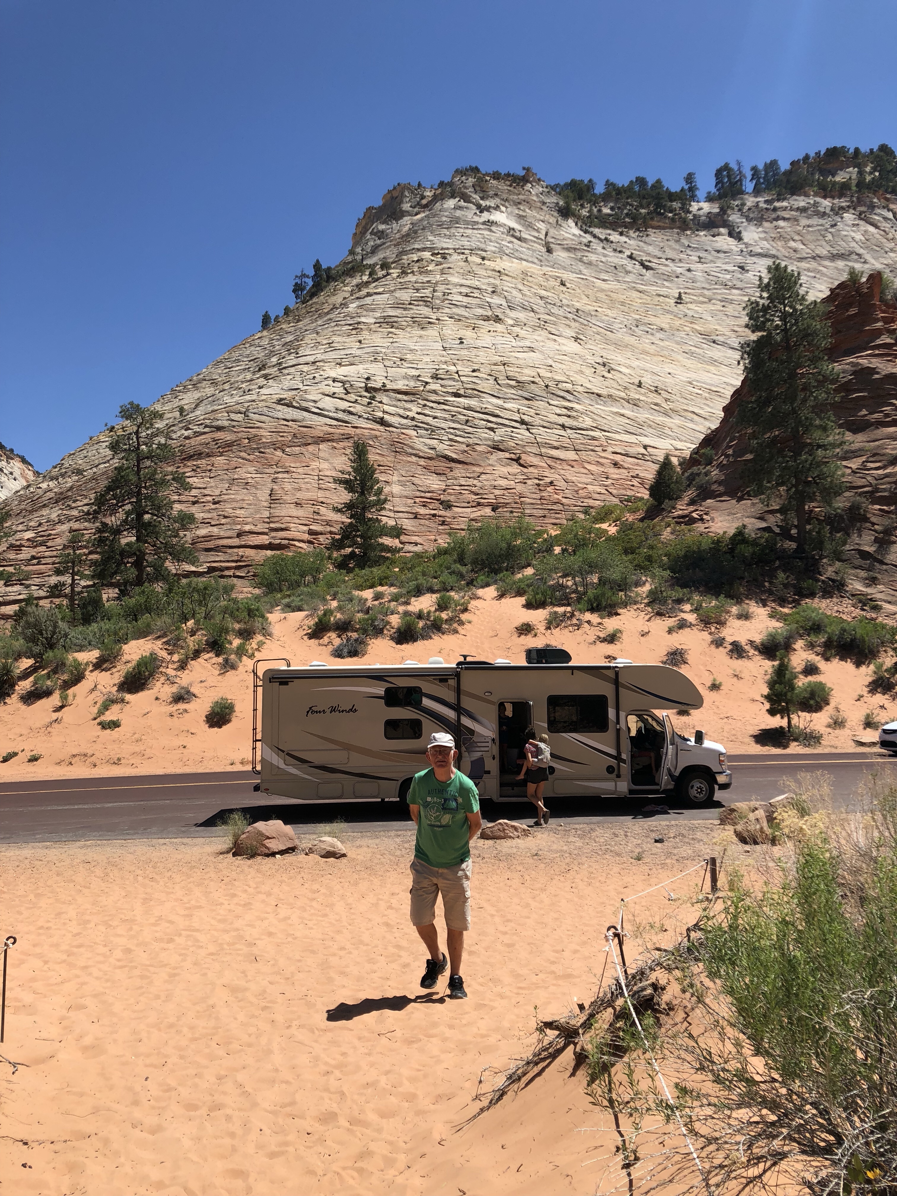 Wir waren eigentlich nur auf der Rückfahrt vom Monument Valley nach Las Vegas und suchten nach einem Platz für die Nacht. Aber das eher zufällig ausgewählte Zion Valley ist wieder ein absolut erstaunlicher Ort, mit Felswänden wie in den Dolomiten an denen man vorbeifahren kann und die man mit Tunnels unterqueren kann, teilweise nur in einspurigem Verkehr im Wechsel – die Wohnmobile sind zu breit für den Tunnel bei Gegenverkehr.