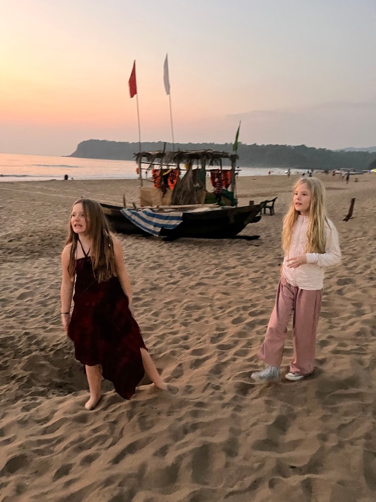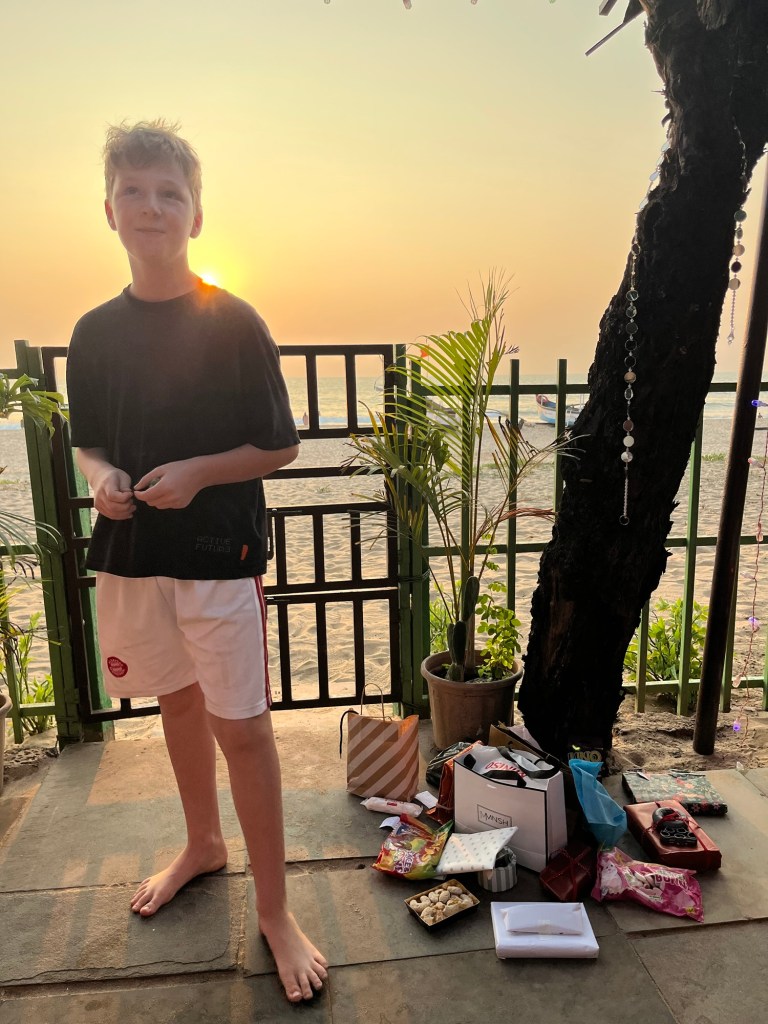 Tag 19 und 20 – Weihnachten 2024 in Agonda war ein schönes Fest, mit Wichteln in der Abendsonne unter einem Mangobäumchen und elf kleinen und großen Reisenden – spontane Gedichtvorträge, fröhliches Beisammensein und natürlich Singen und Weihnachtsplätzchen essen.