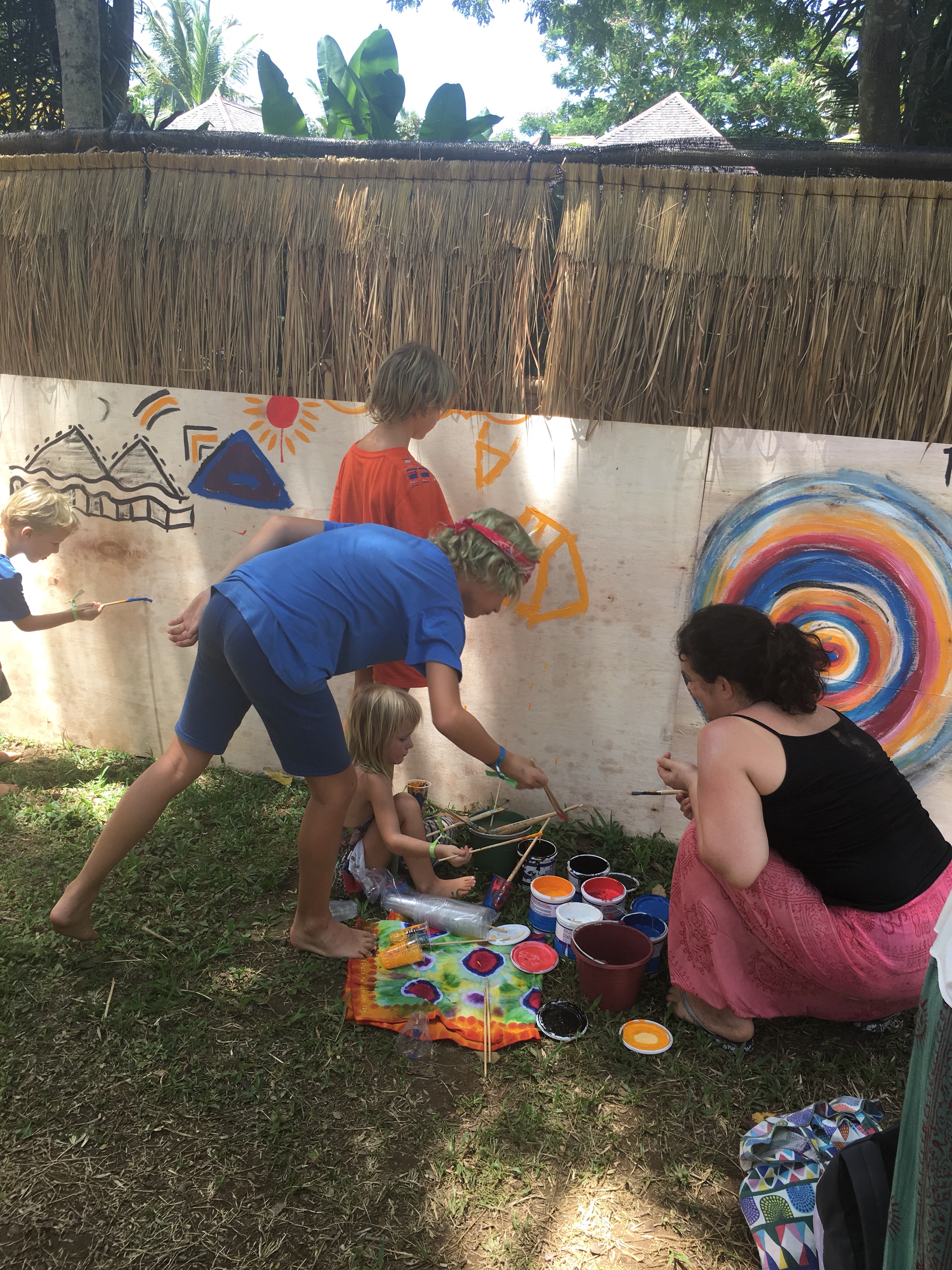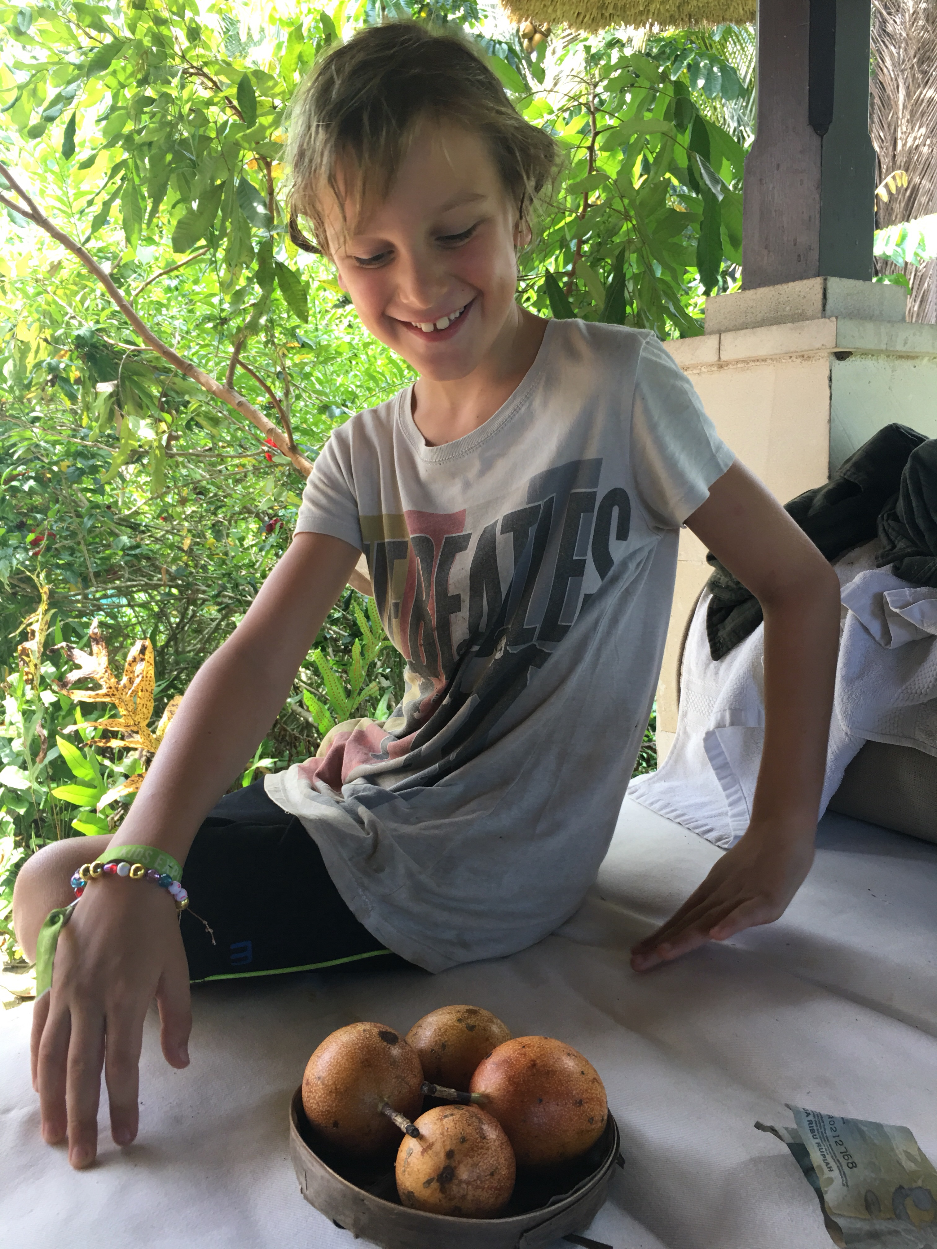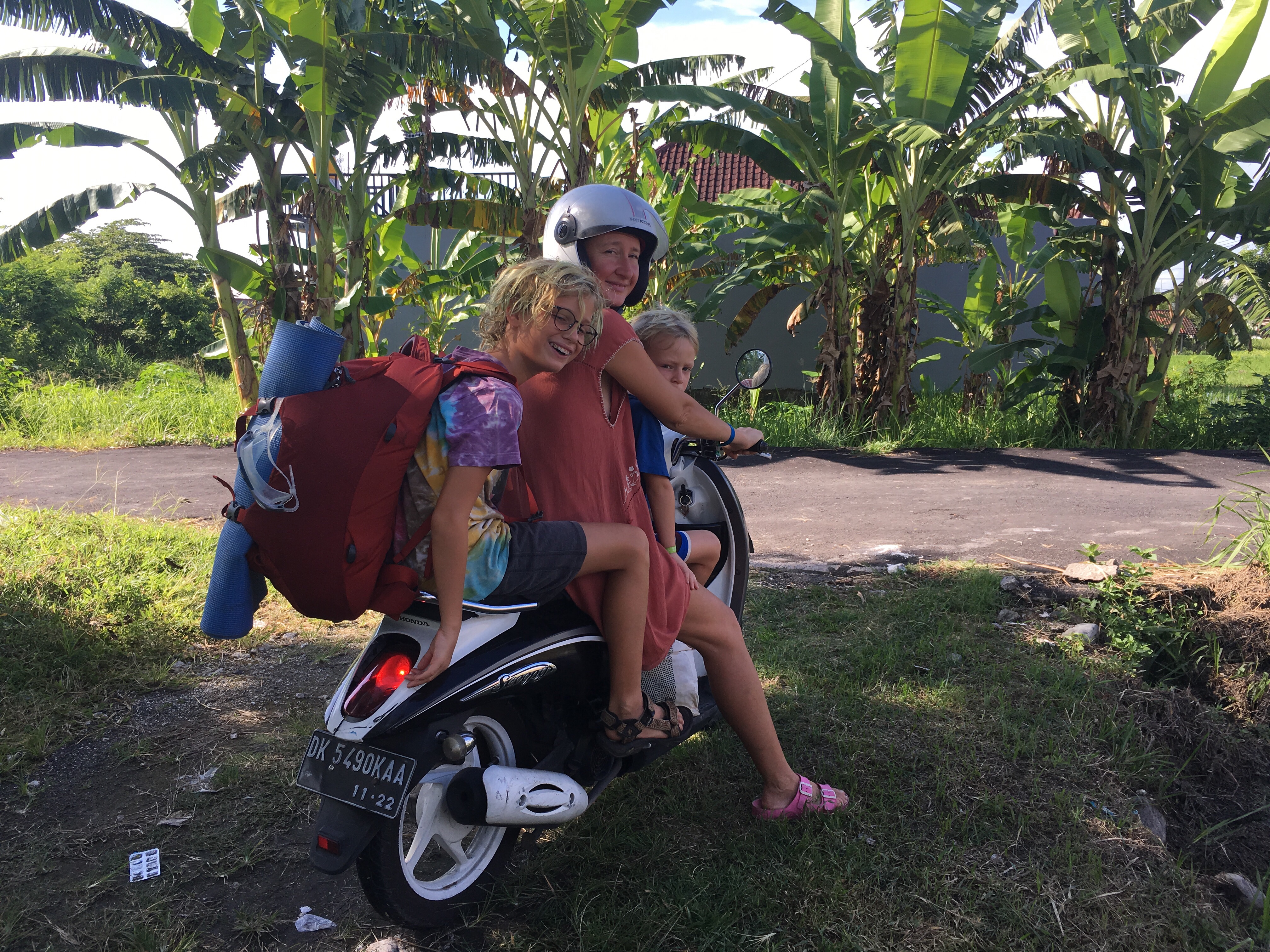 Wir haben schon zwei Roller, zwei Handykarten,waren schon am Strand und haben erste Erkundigungen gemacht. Bali ist wirklich super schön, voller hinduistischer Tempel an jeder Ecke und zur Ankunft war auch gleich ein Feiertag mit Opfergaben überall. Morpheus lernt tauchen, Velis und Lysander üben Zauberwürfel und natürlich gibt es Schule.
