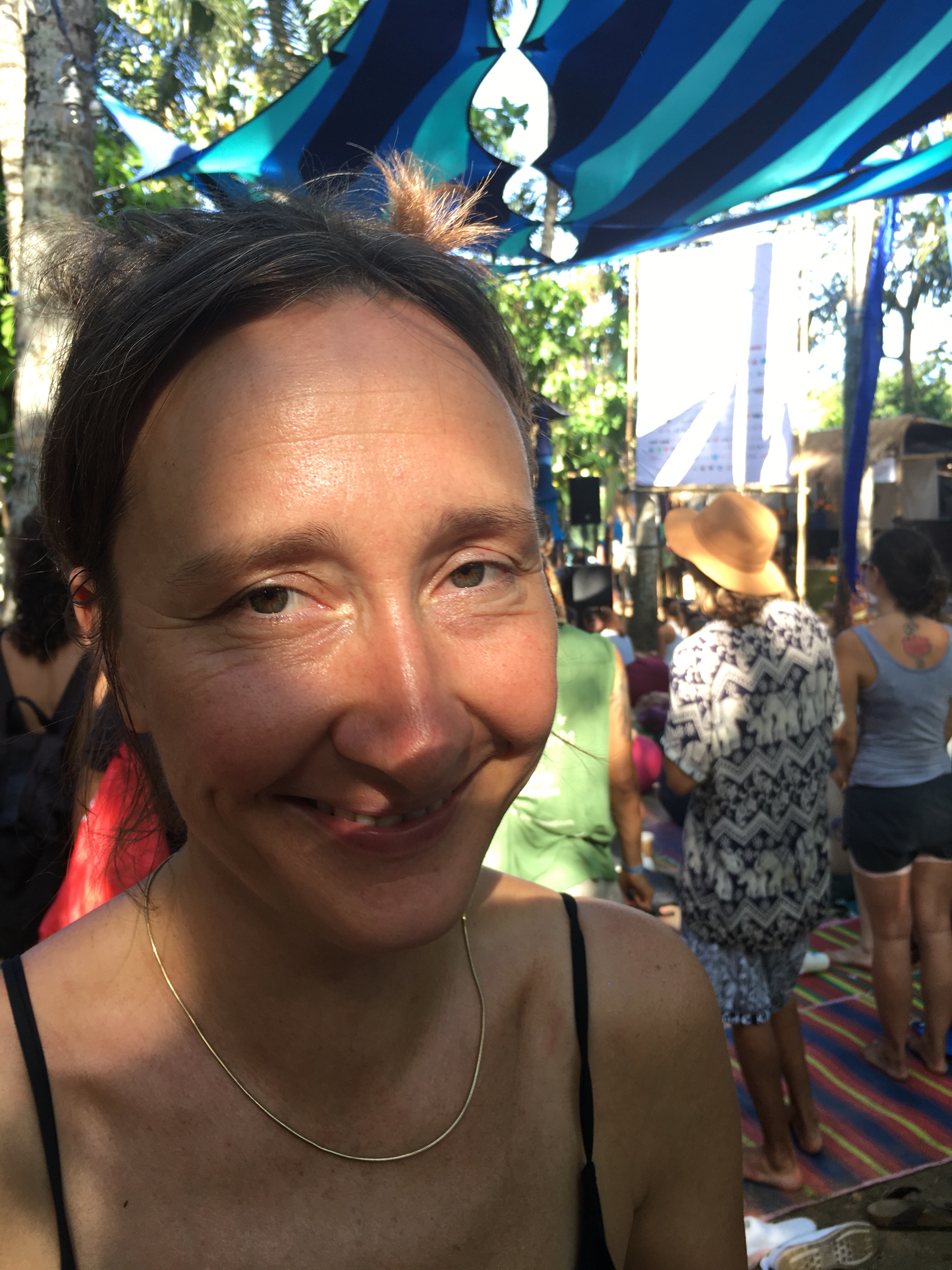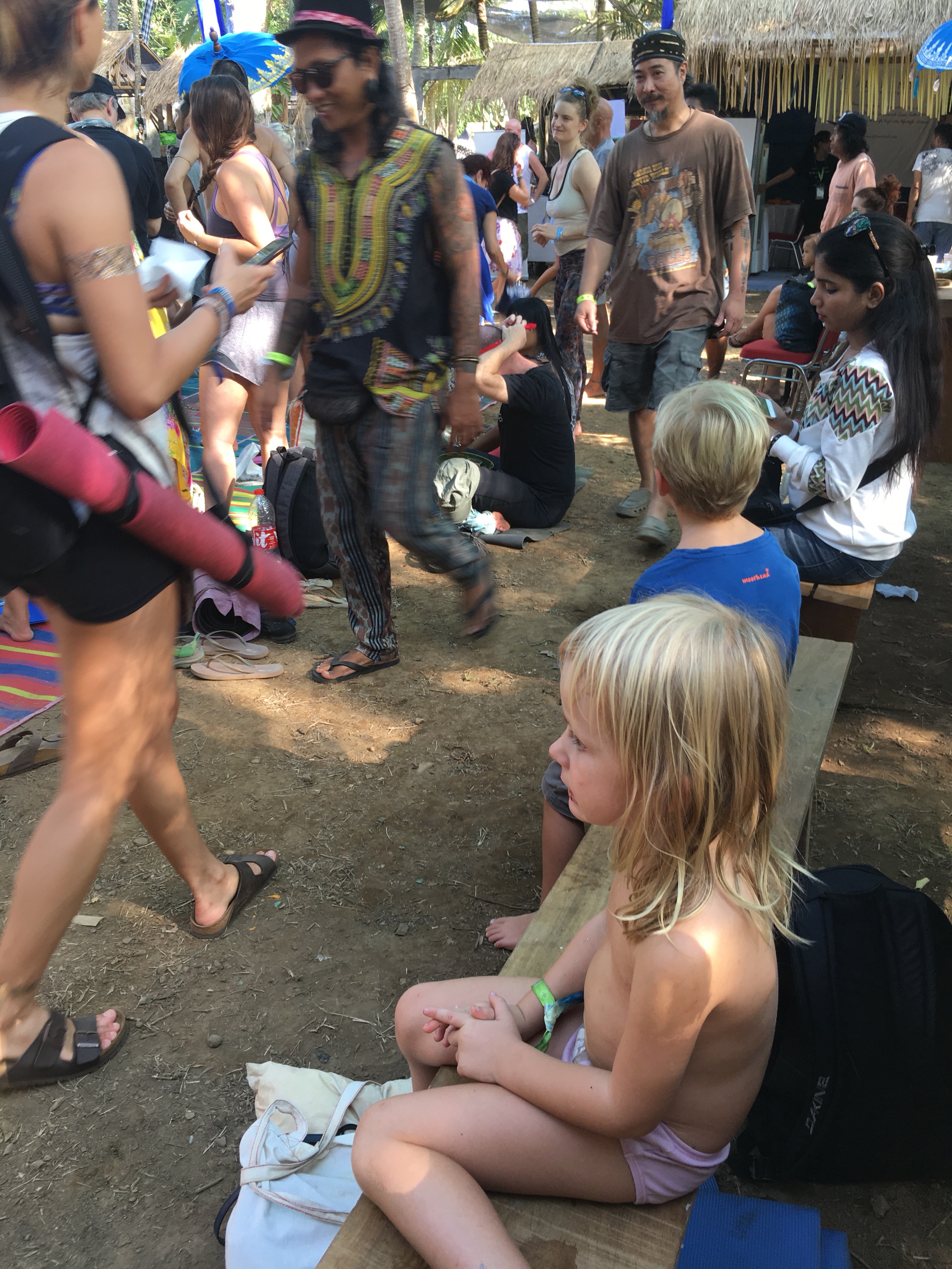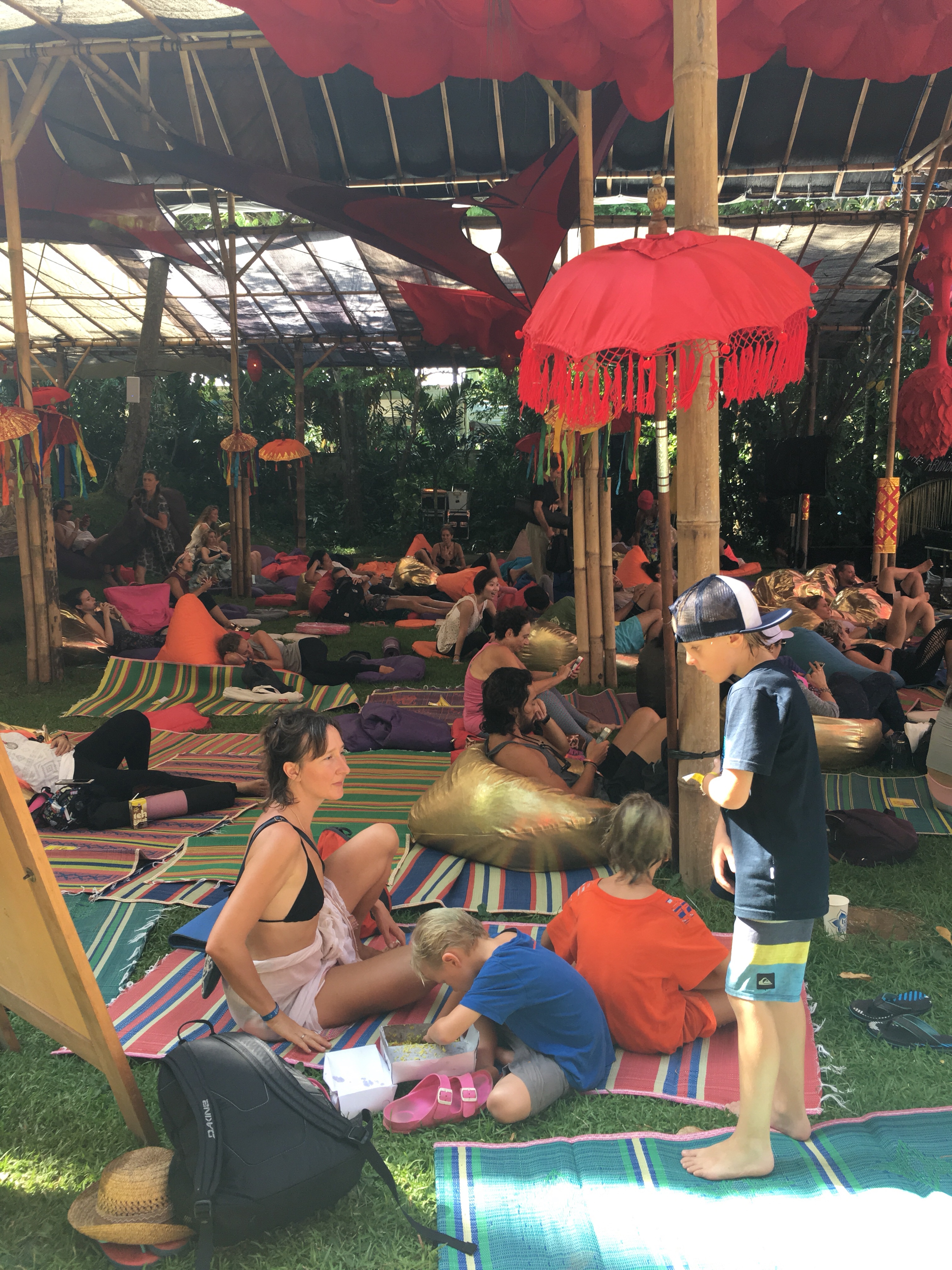 Und dann dank Kinderspace gemeinsam mit Nadine „Feel more Ecstasy through breath of bliss“ mit Christabel Zamor aus den USA mit über 100 Teilnehmern. Statt versprochen 1 Stunden waren wir zwei Stunden weg, es war einfach zu schön um aufzuhören. Tanz, Meditation, Atmung: genau nach meinem Geschmack. Ich spüre jetzt schon dass Nadines Idee hier her zu kommen die ideale Energie und Umgebung für uns alle ist. Und besonders für mich genau der Ort, um übermorgen meinen 50. Geburtstag zu feiern. Ich wusste es ja noch nicht, aber ich liebe solche Festivals. Und Bali macht einfach einen super Eindruck auf uns.