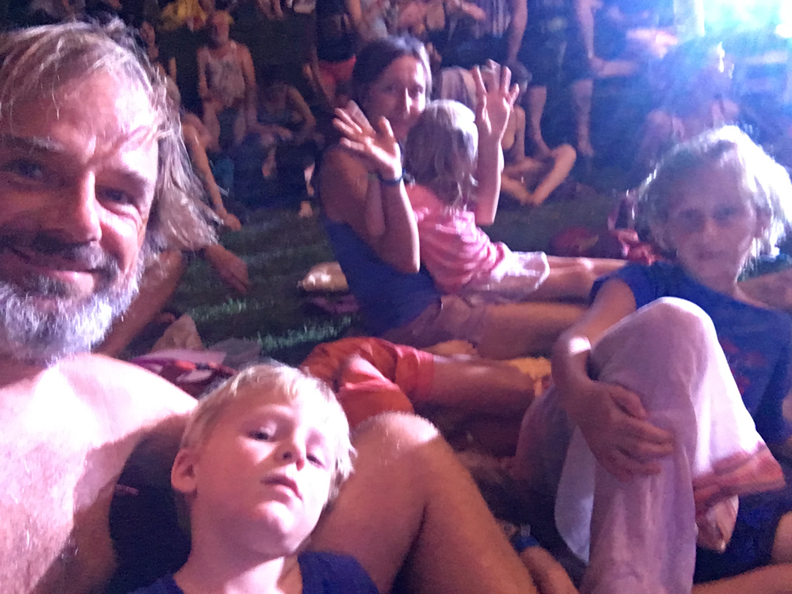 Ich bekomme schon wieder Blasen an den Füßen vom zu viel Barfuß tanzen und abends liegen wir alle zusammen und hören schönen Konzerten zu. Bis es dann auf dem Roller durch die Nacht zurück nach Hause geht. Google Maps sei gedankt! Die Kinder mit einer verbotenen Cola noch mal wieder frisch für die Heimfahrt..